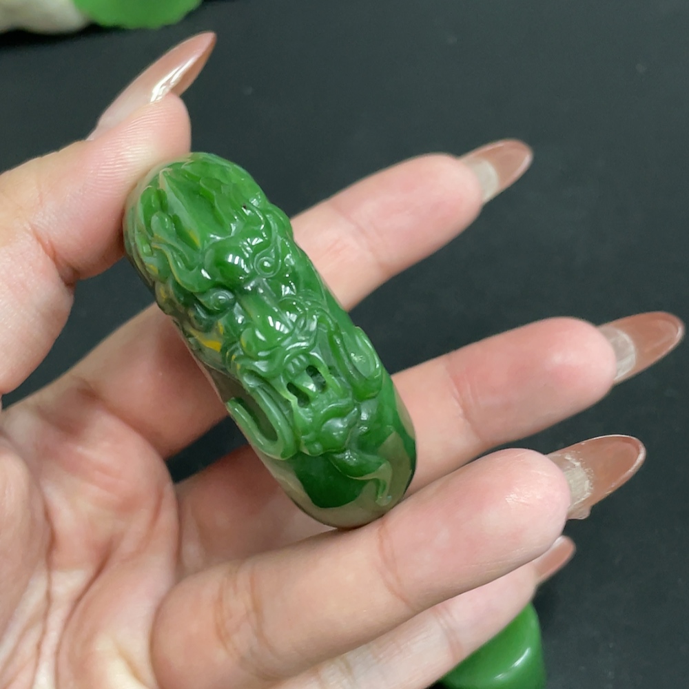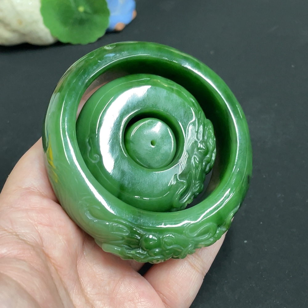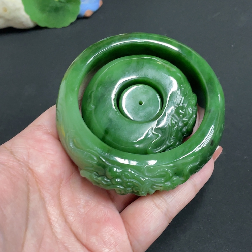 Hetian Jade Auspicious Beast Mother-and-Son Clasp, Round Bangle, Total Weight Approx. 222.1g
