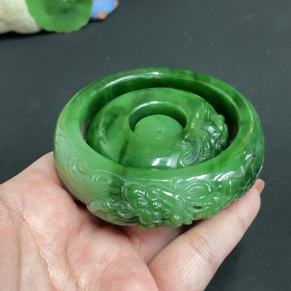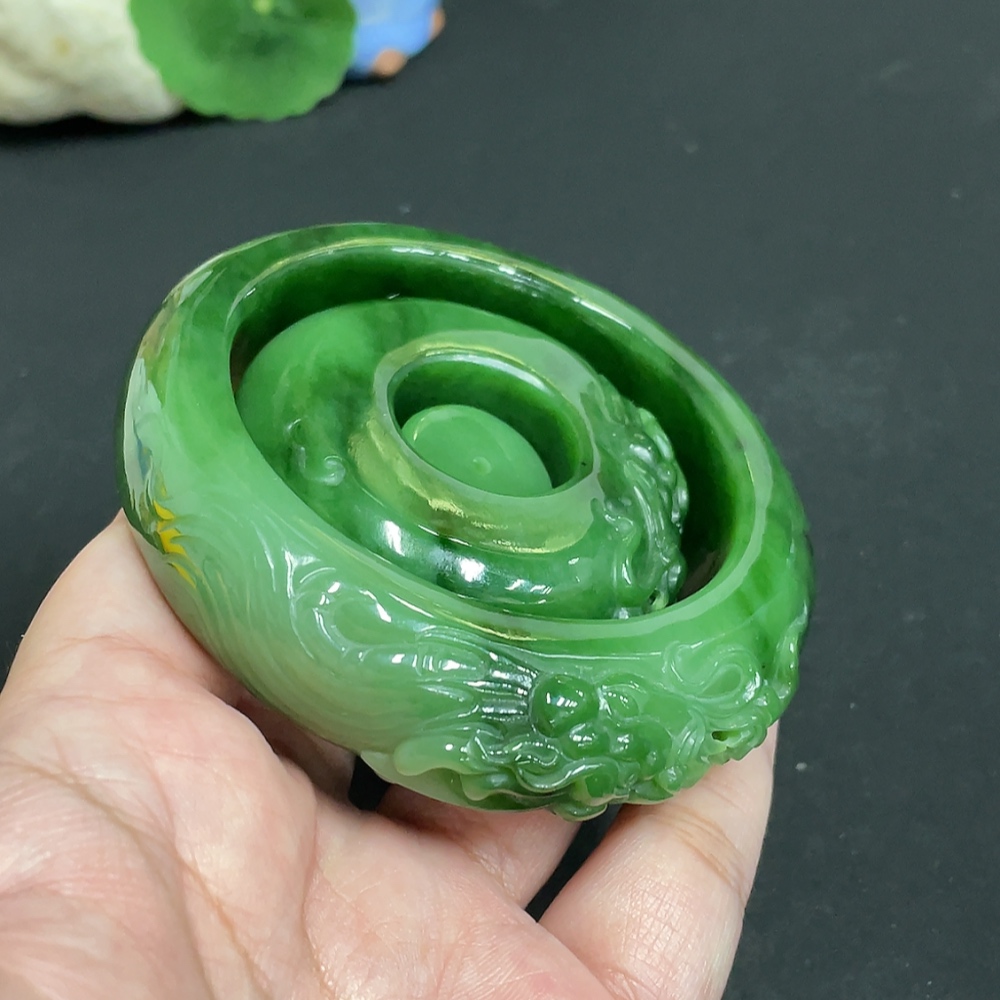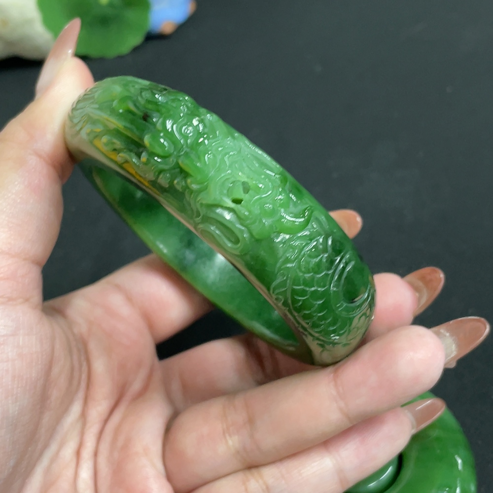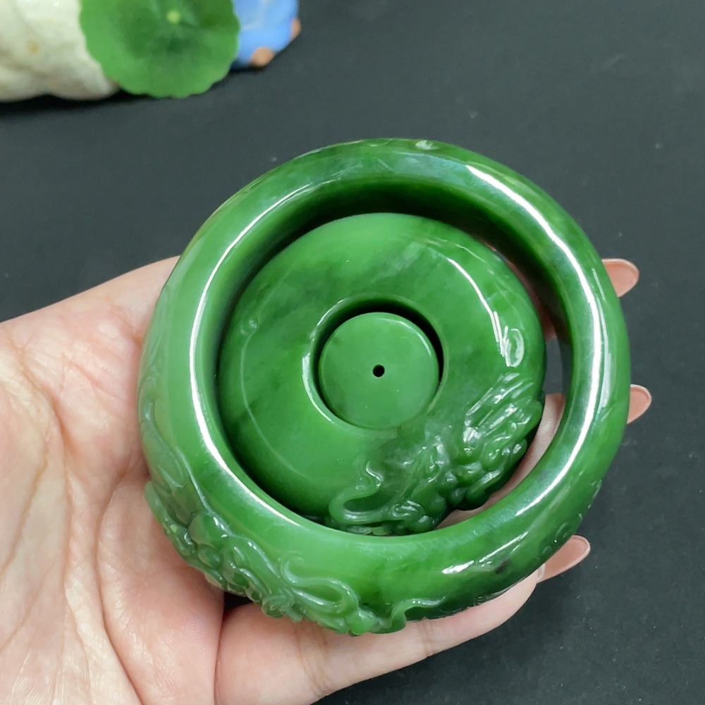 Hetian Jade Auspicious Beast Mother-and-Son Clasp, Round Bangle, Total Weight Approx. 222.1g