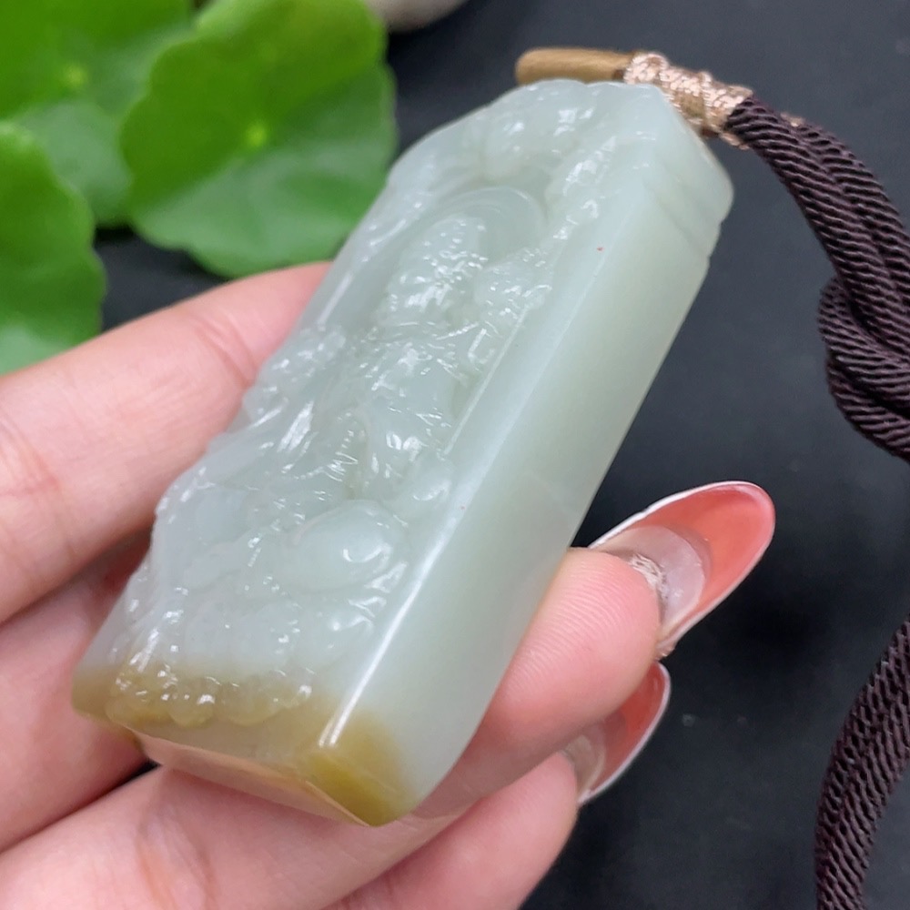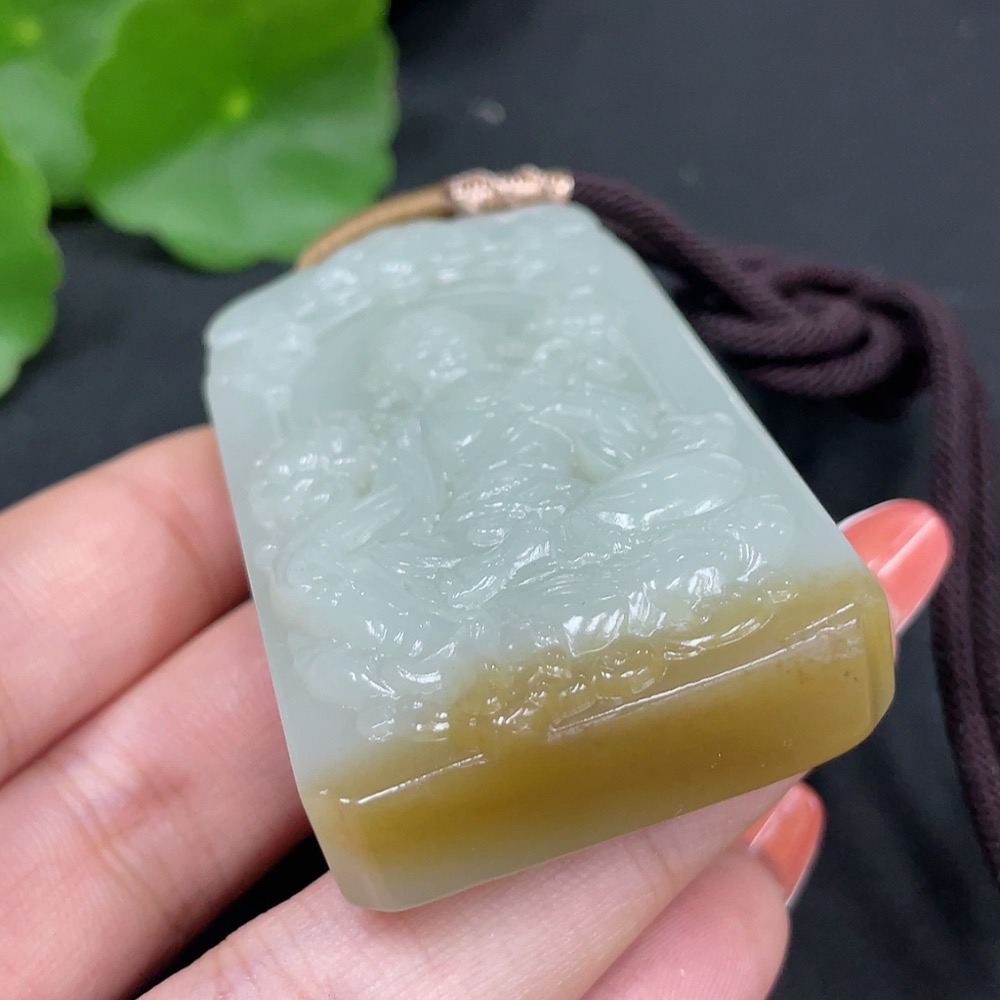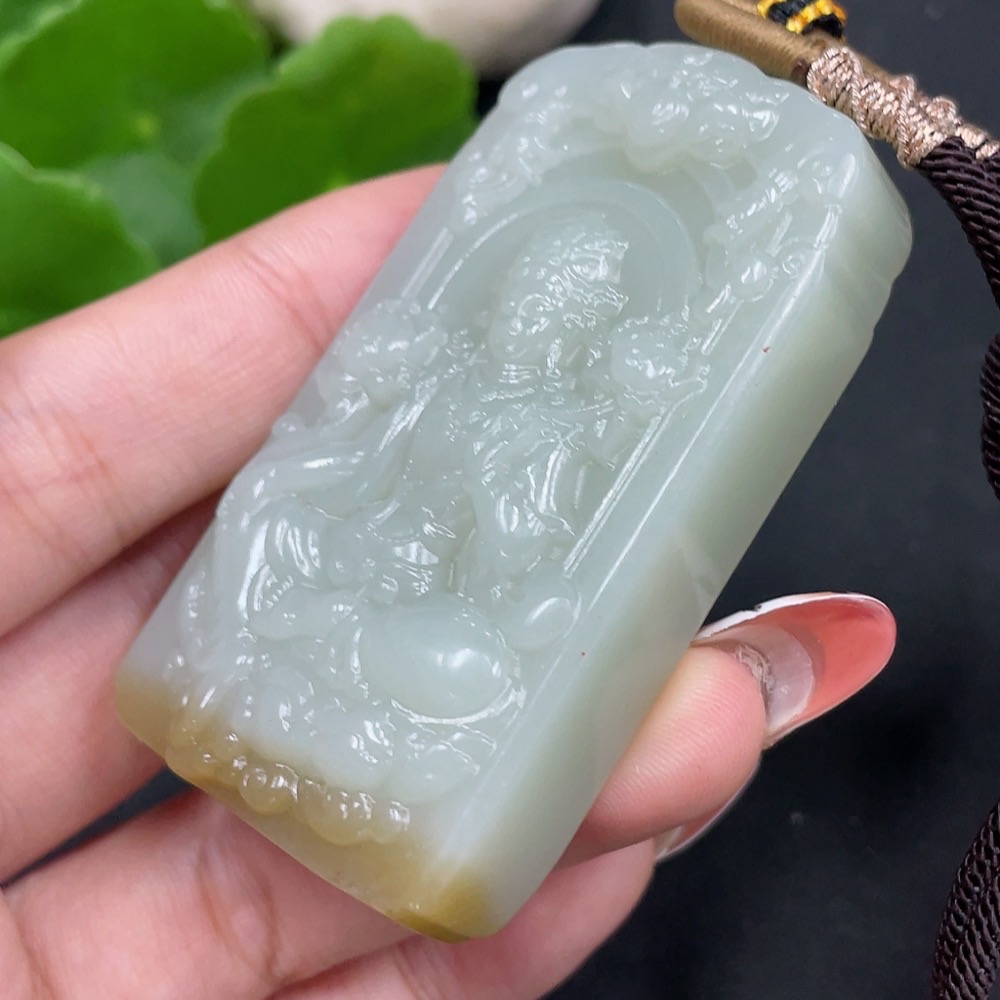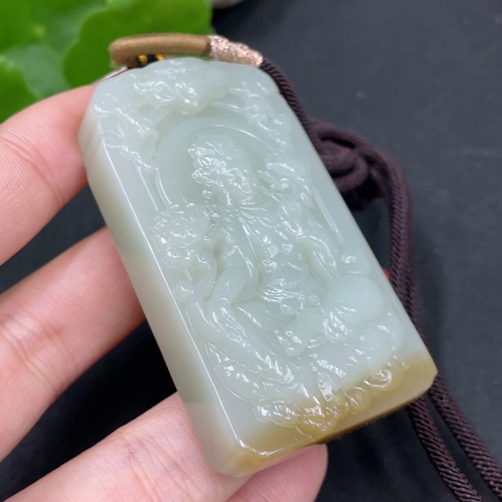 Hetian Jade Pendant, Tara, Total Weight (including rope) 72.9g