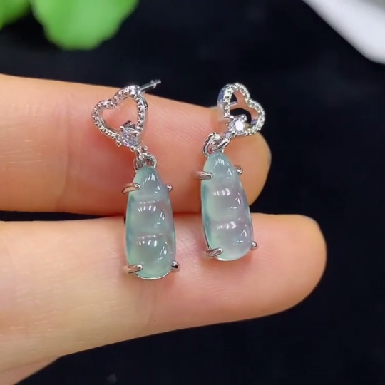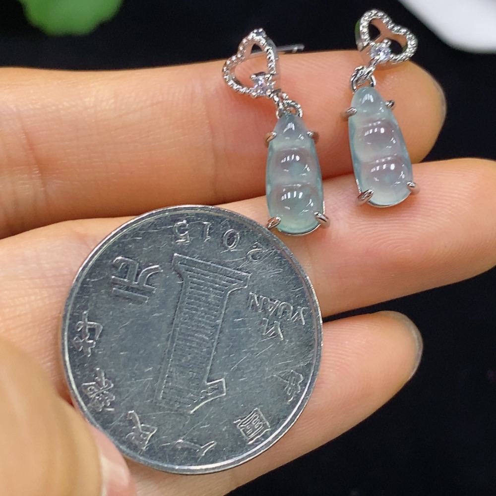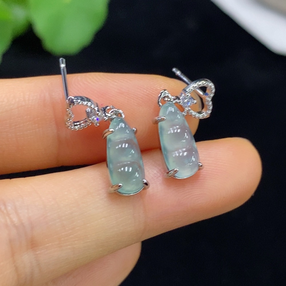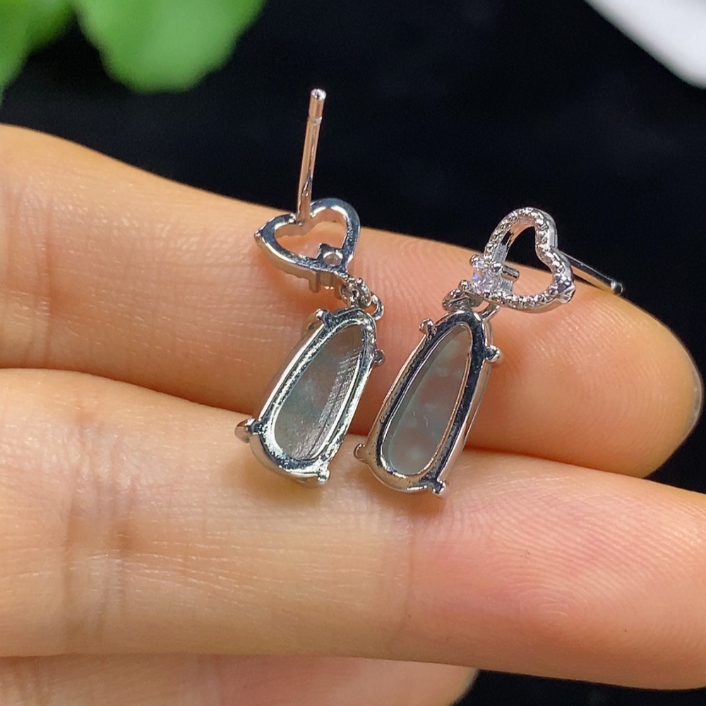 Jadeite Blessed Bean Inlaid Earrings Non-Gold Total Weight About 2g