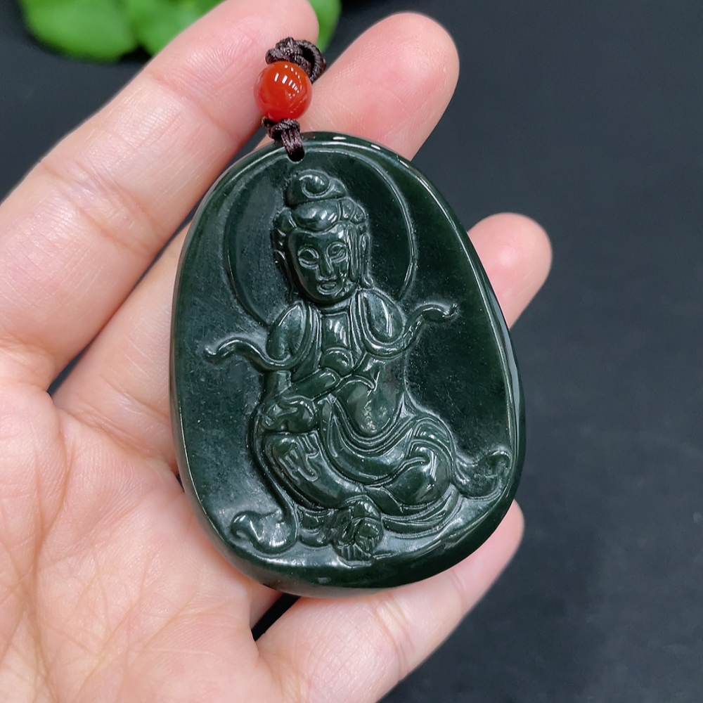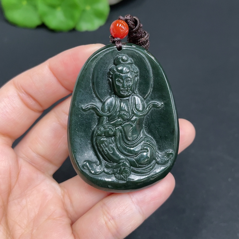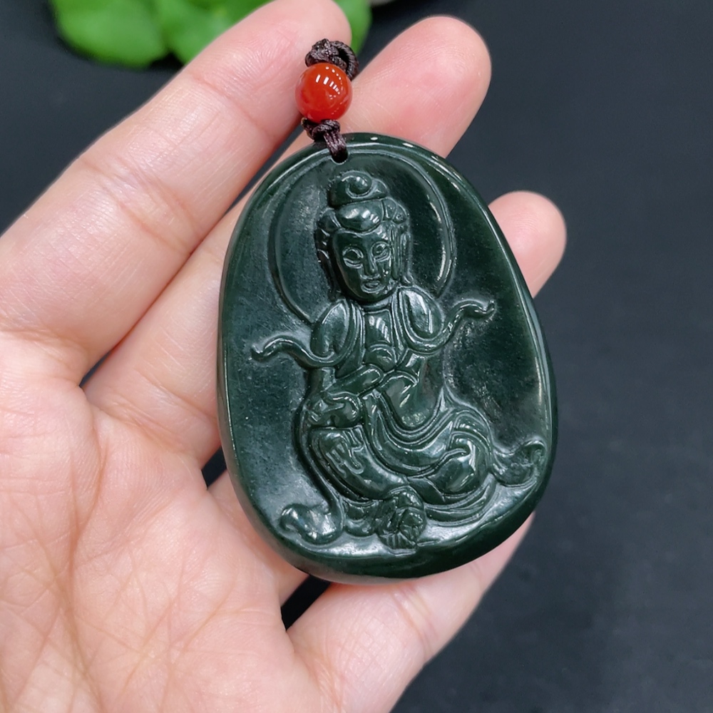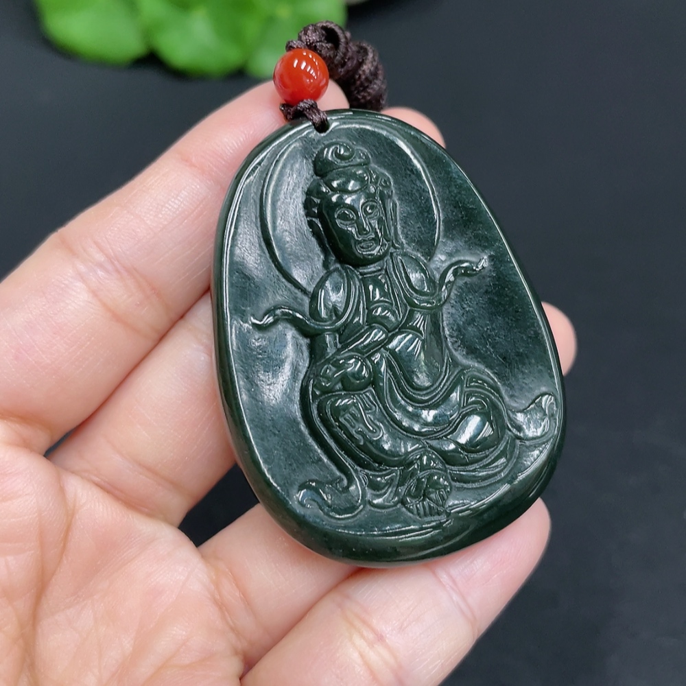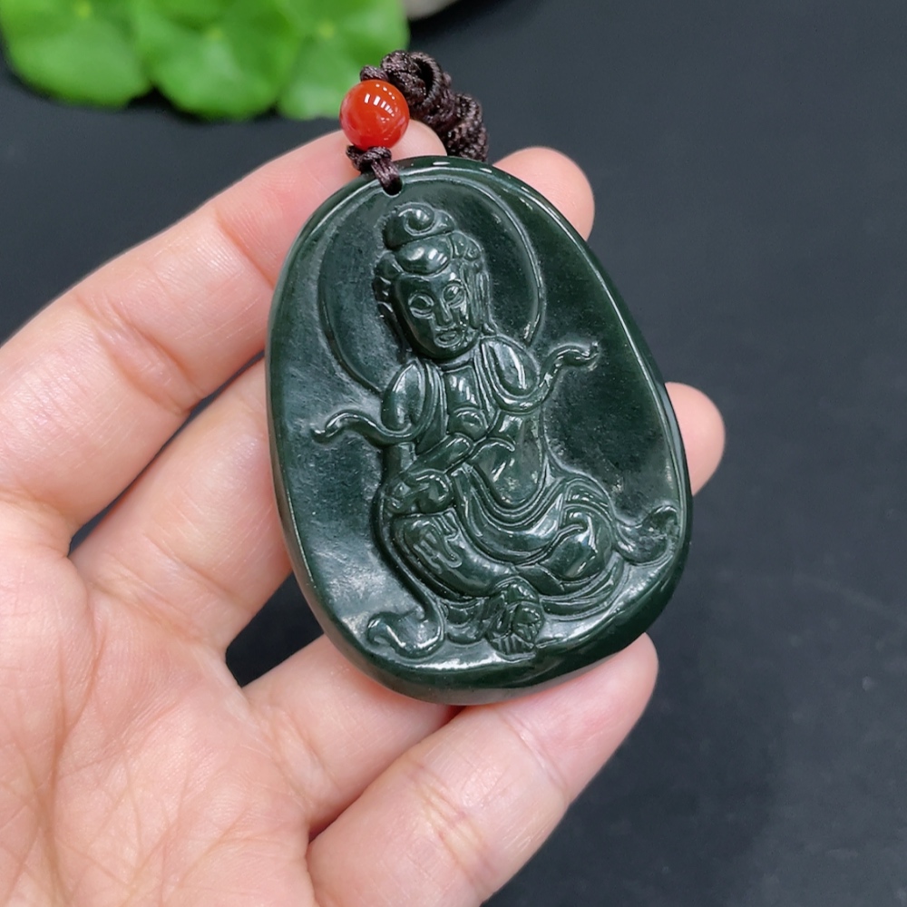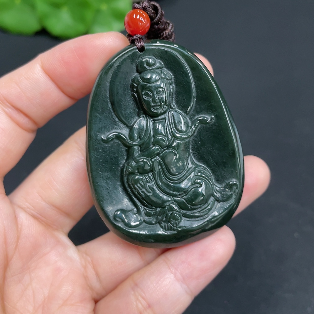 Hetian Jade Pendant Avalokitesvara Gross Weight Approx. (including rope) 32.9g