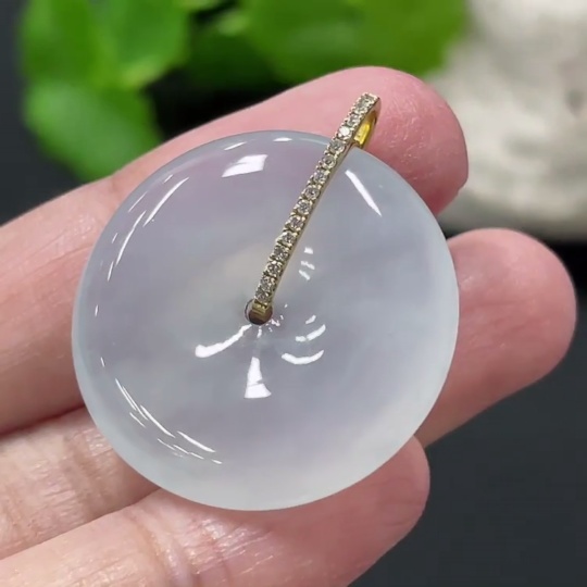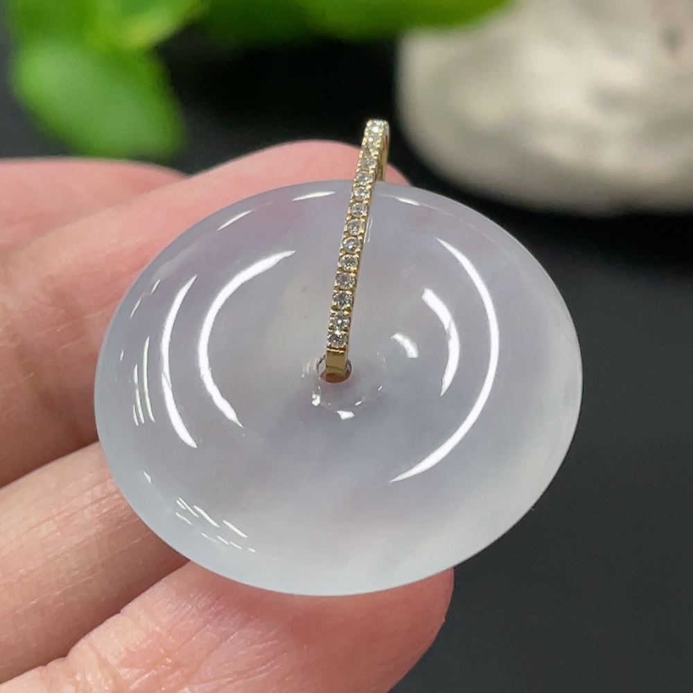 Jadeite safety buckle pendant, total weight about 8.97g, 18k gold buckle head with diamond accents