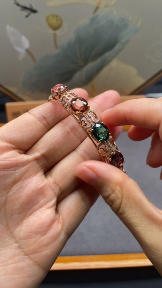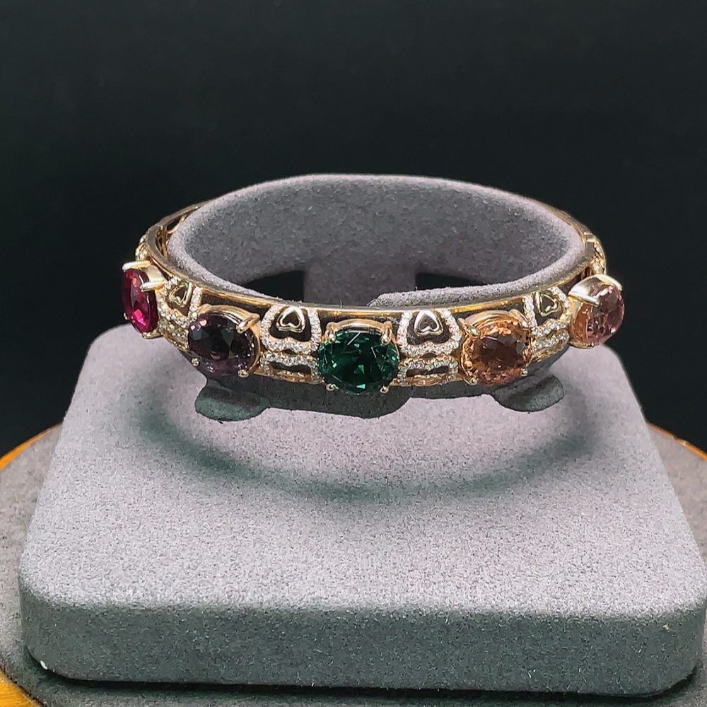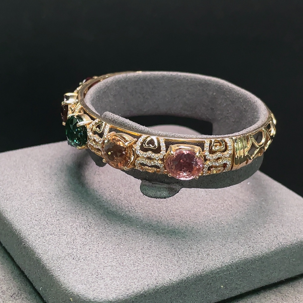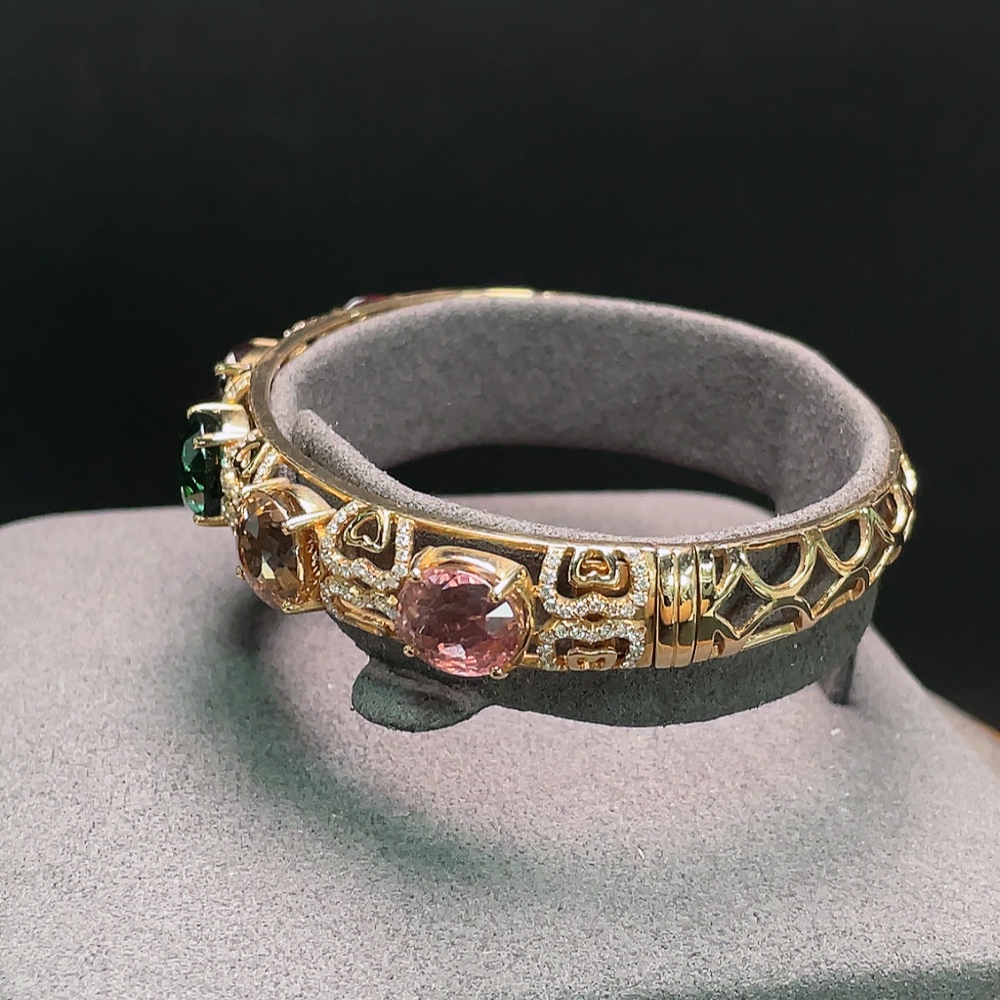 18K Tourmaline Bracelet with Diamond Accents, Total Weight Approx. 19.23g, Size Around 9.5*8.2mm