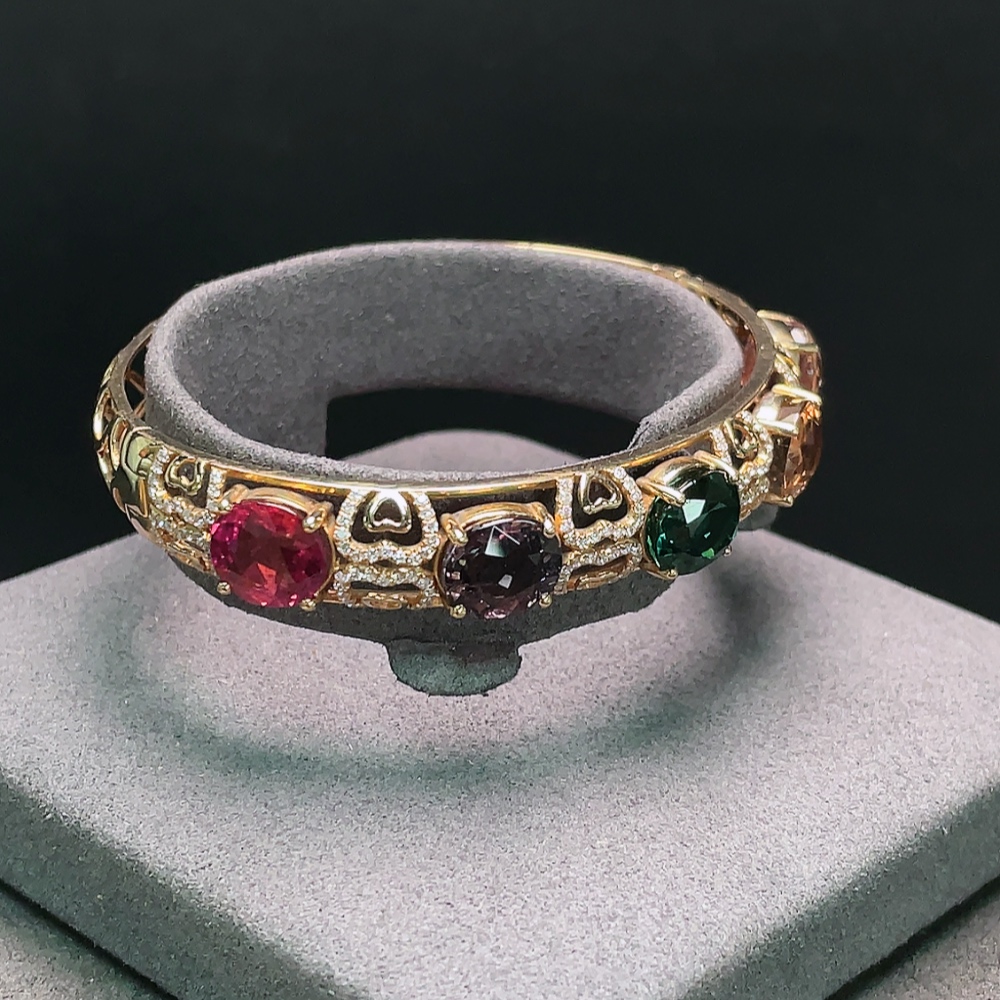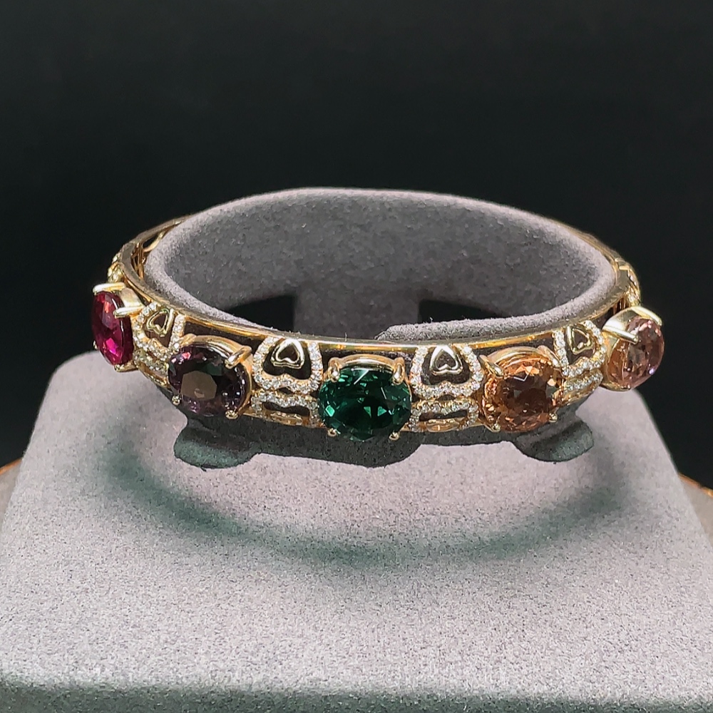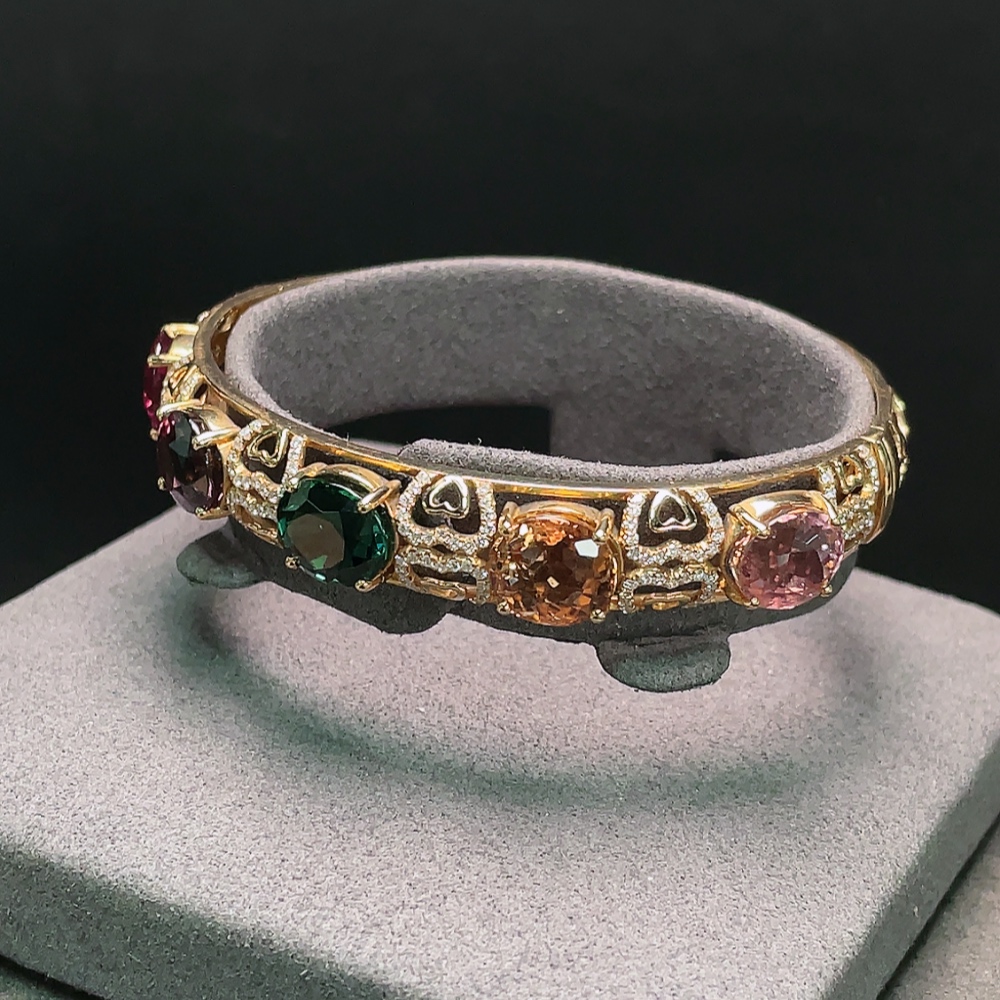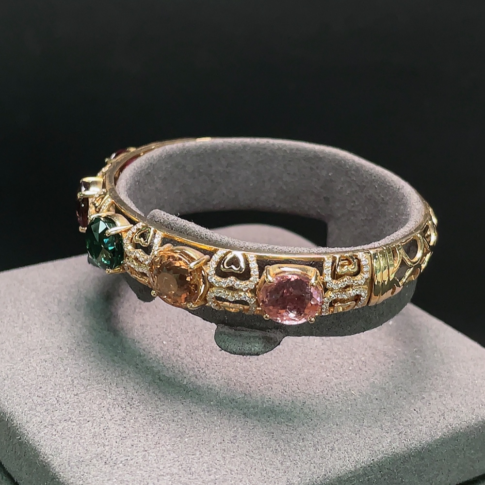 18K Tourmaline Bracelet with Diamond Accents, Total Weight Approx. 19.23g, Size Around 9.5*8.2mm