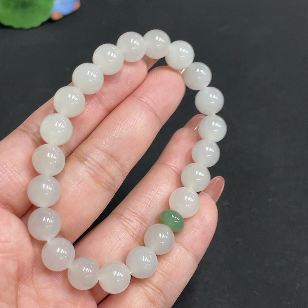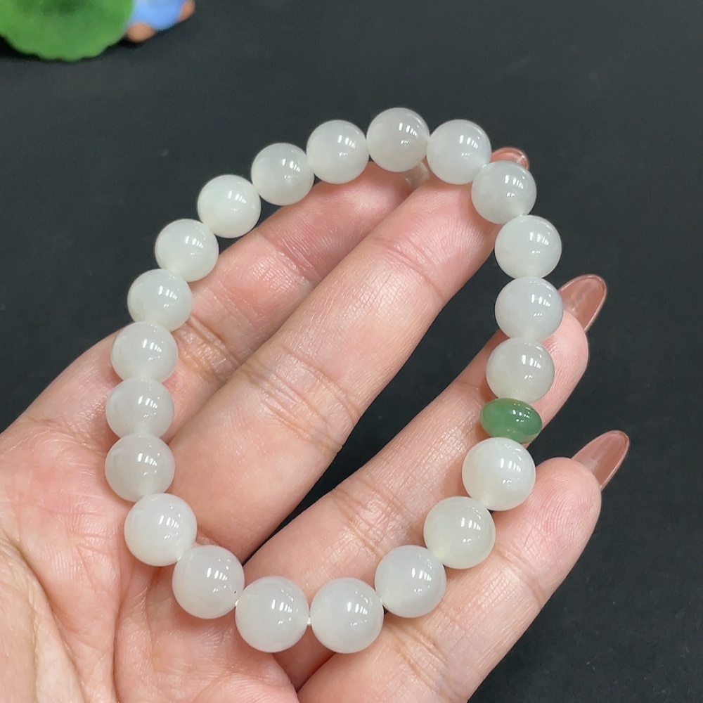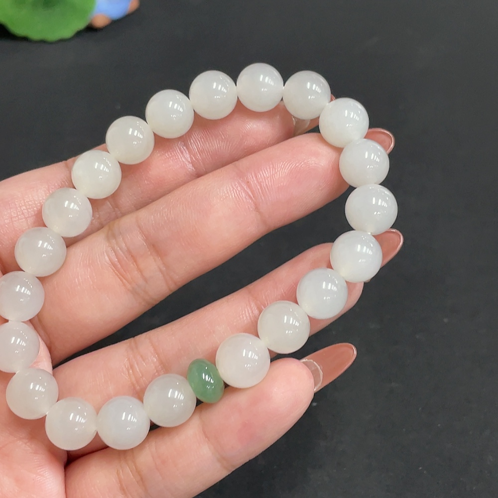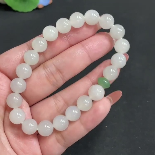 Hetian Jade Bracelet, Approx. 9.6 mm Beads, Total Weight About 30g
