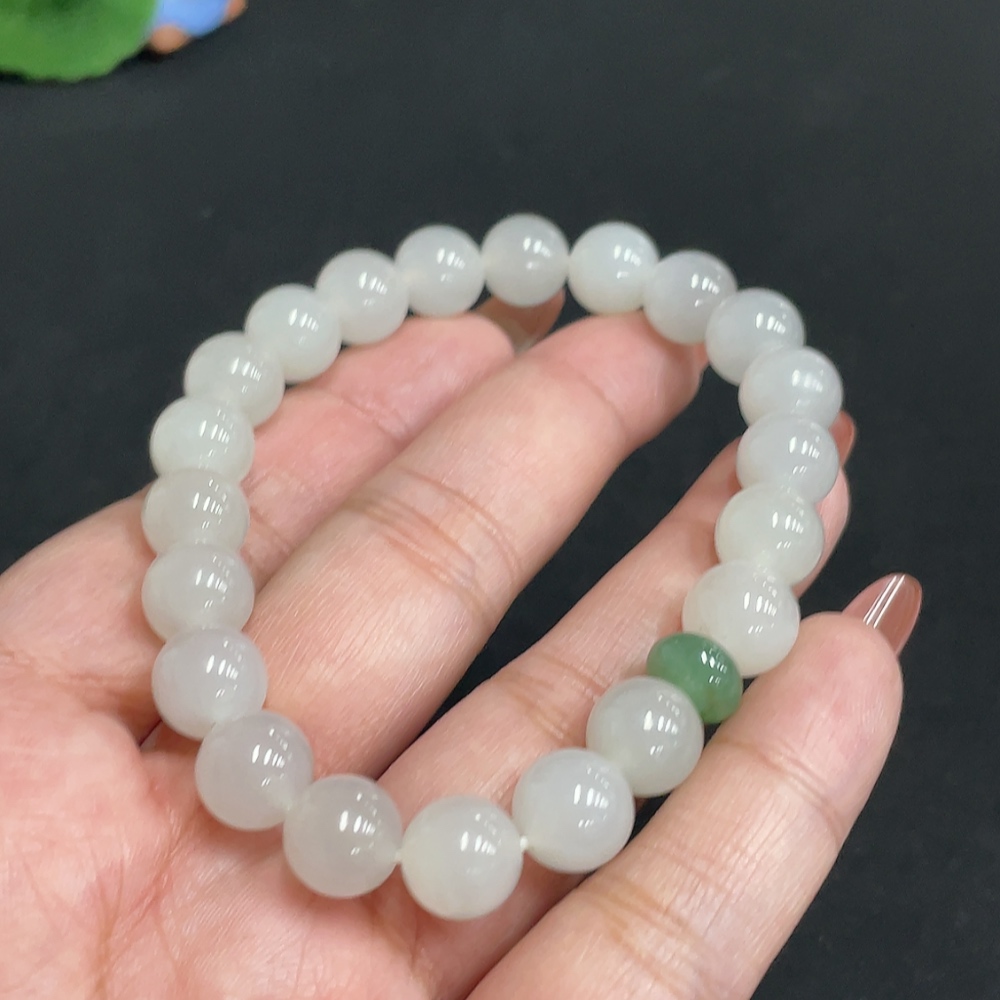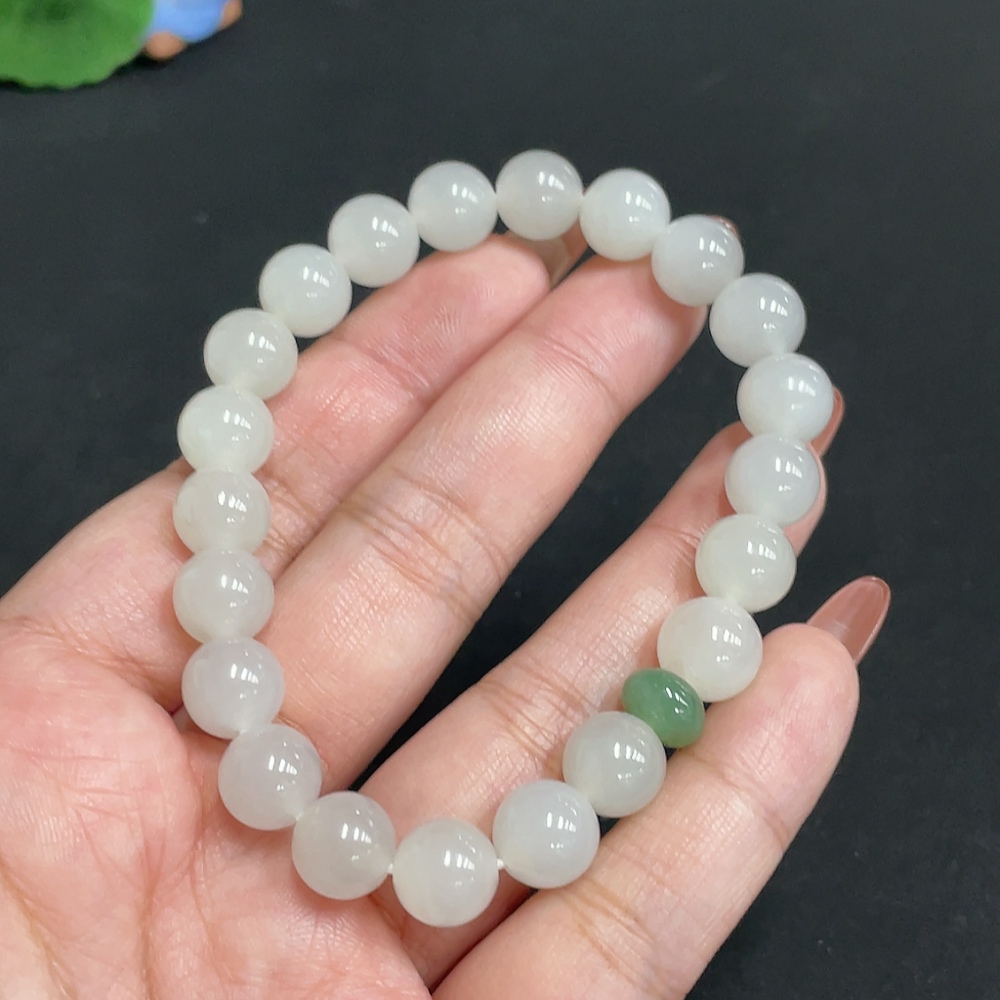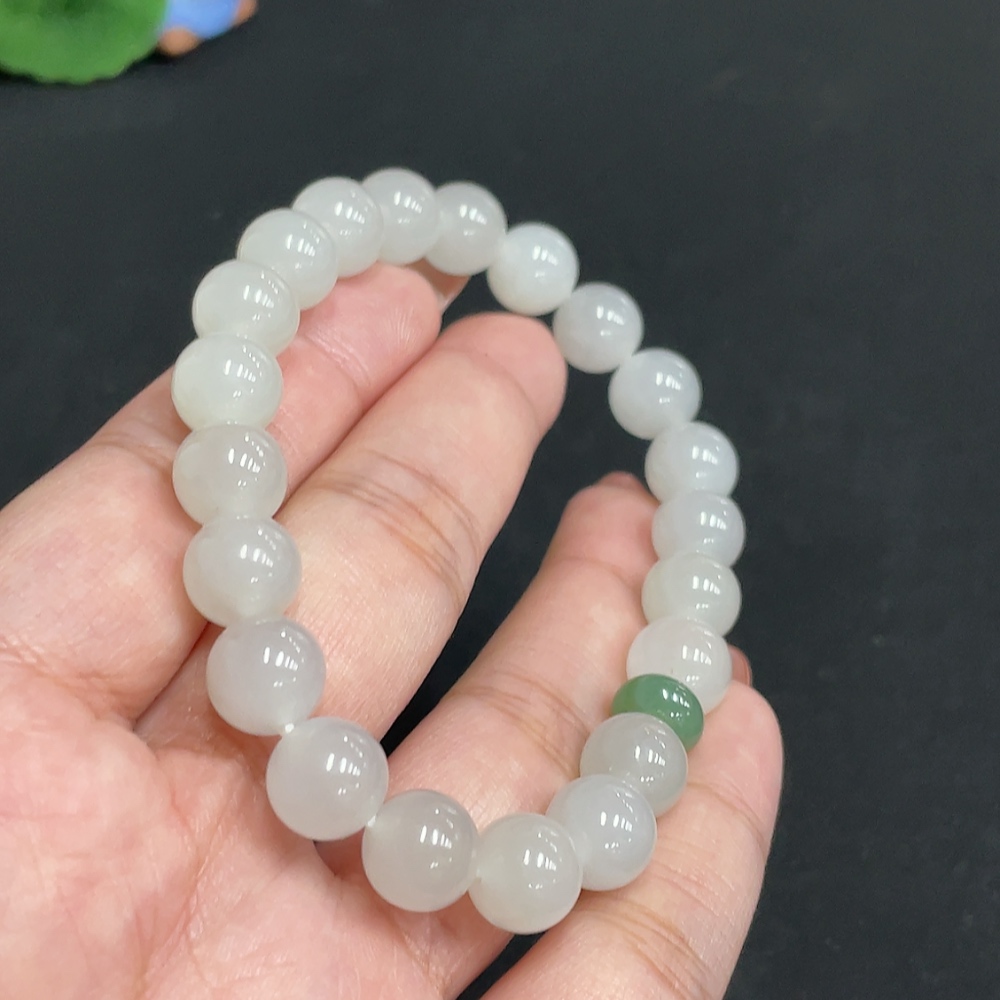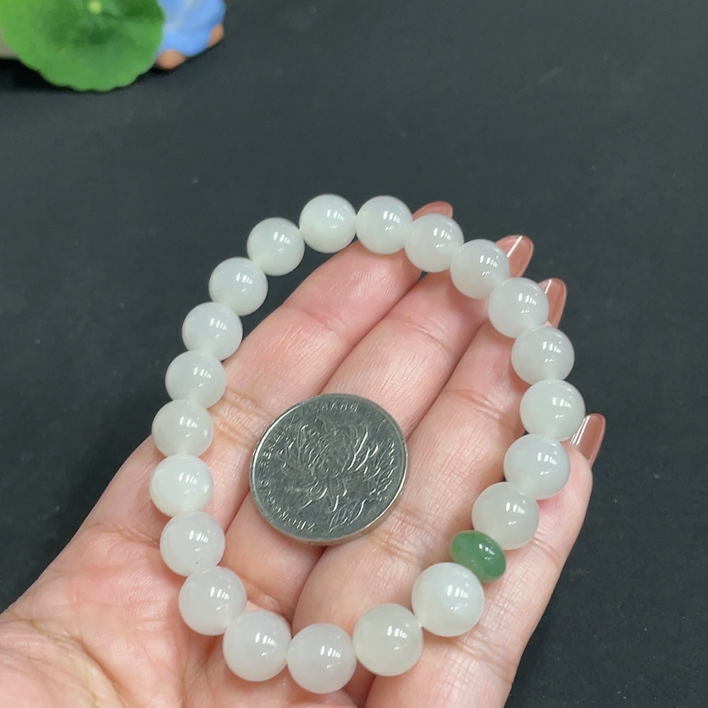 Hetian Jade Bracelet, Approx. 9.6 mm Beads, Total Weight About 30g