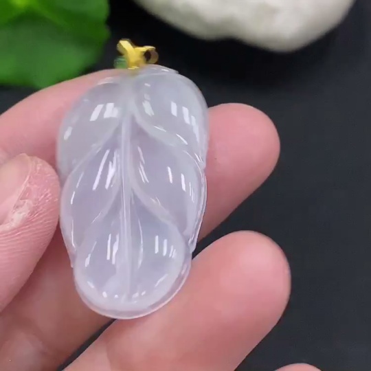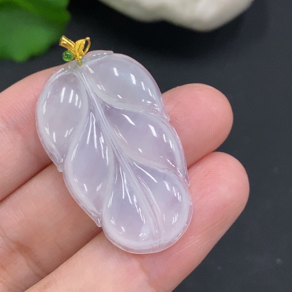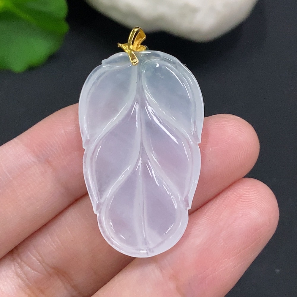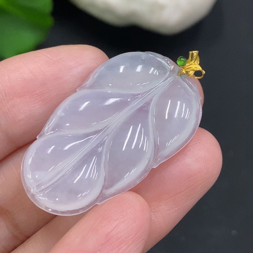 Jadeite Leaf Pendant with 18k Gold Clasp, Total Weight Approximately 5g