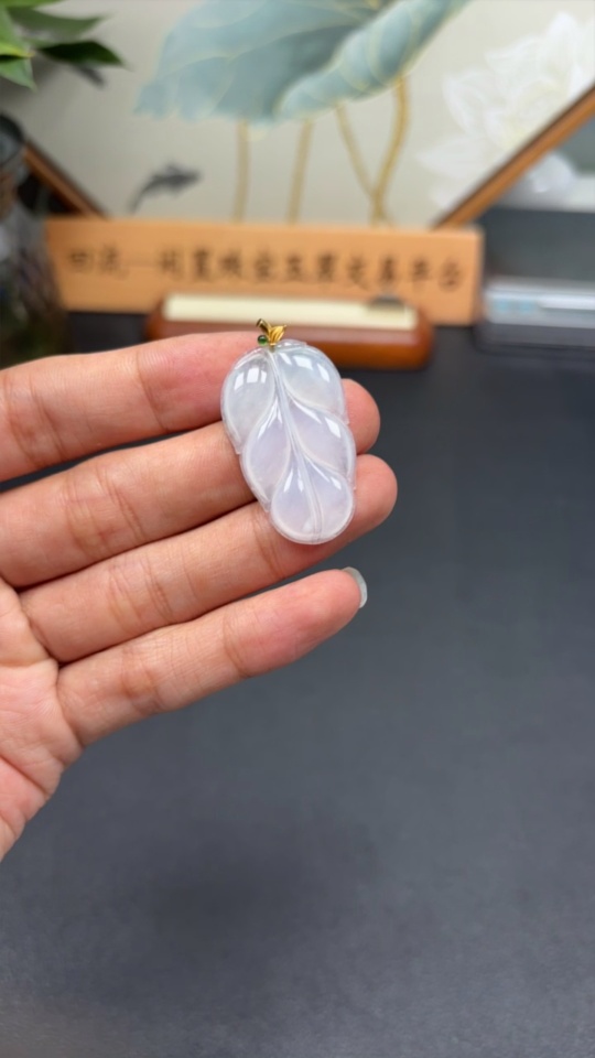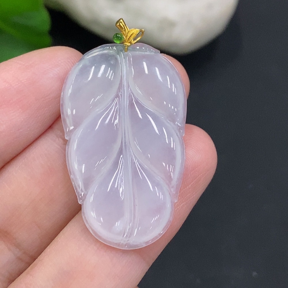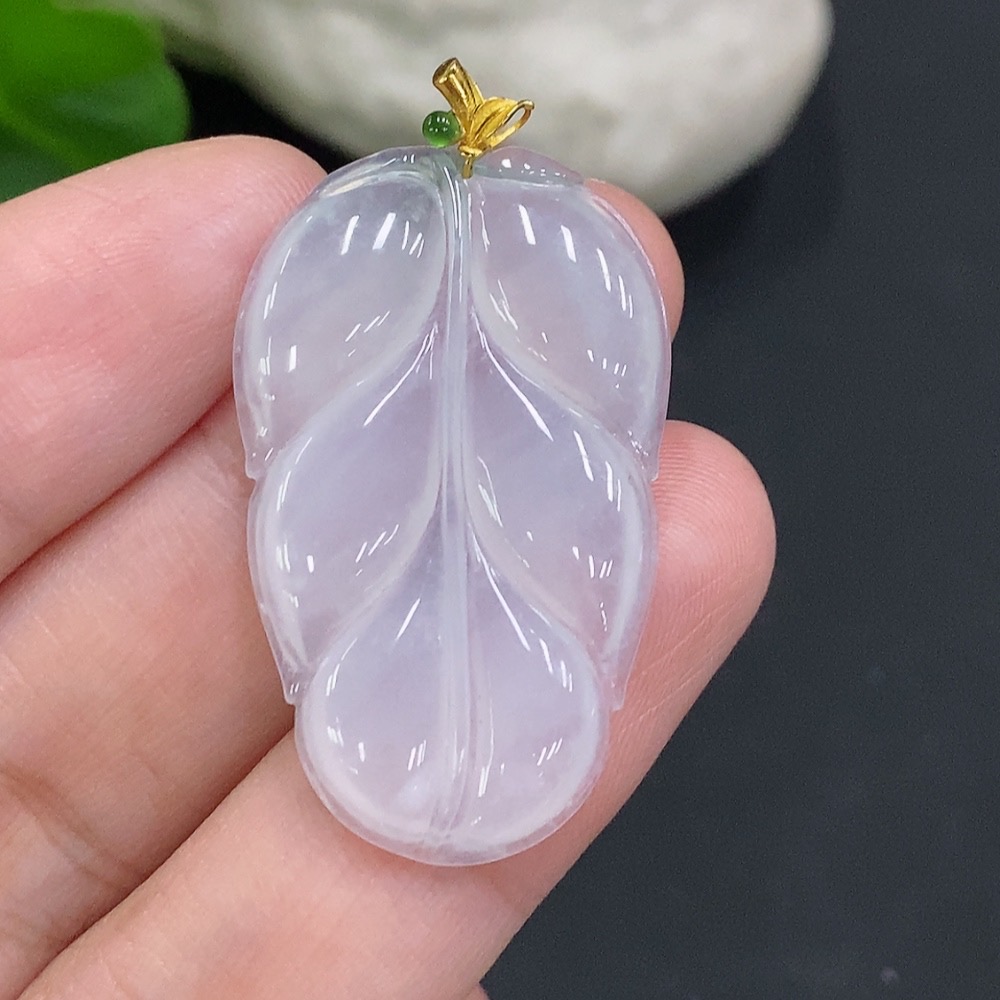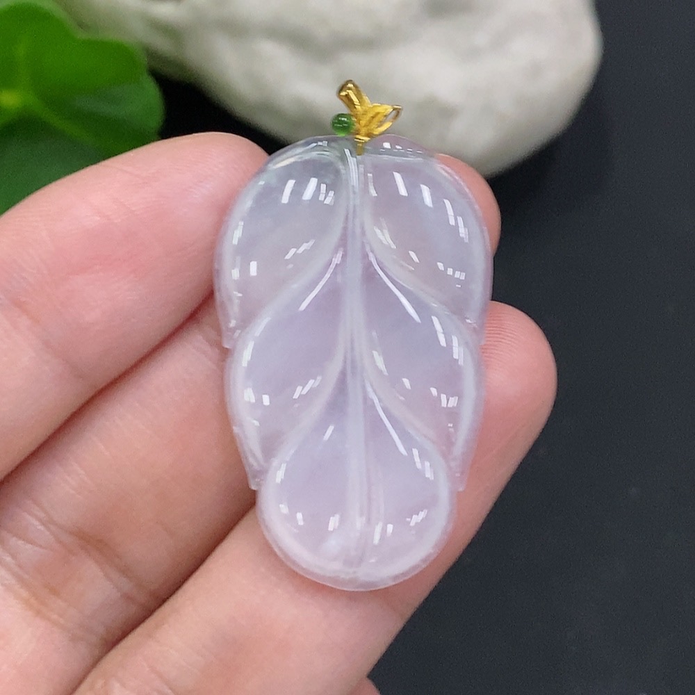 Jadeite Leaf Pendant with 18k Gold Clasp, Total Weight Approximately 5g