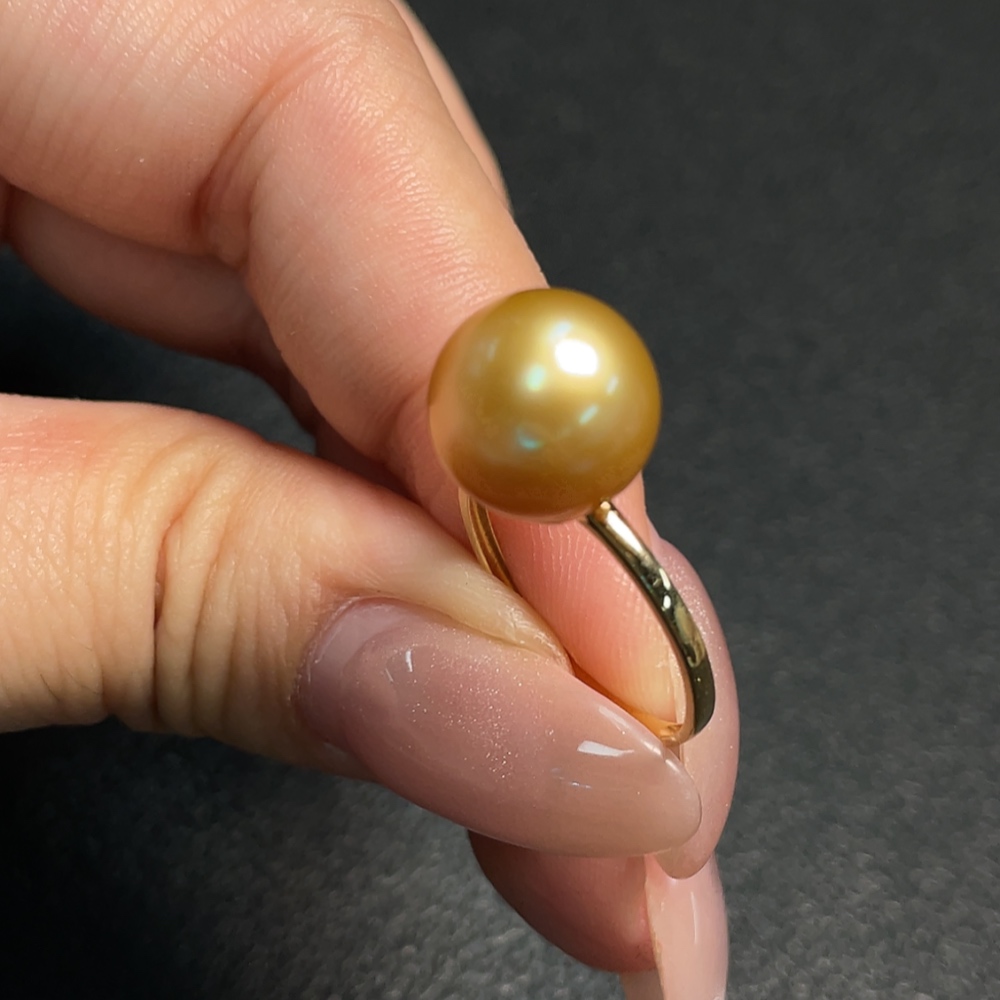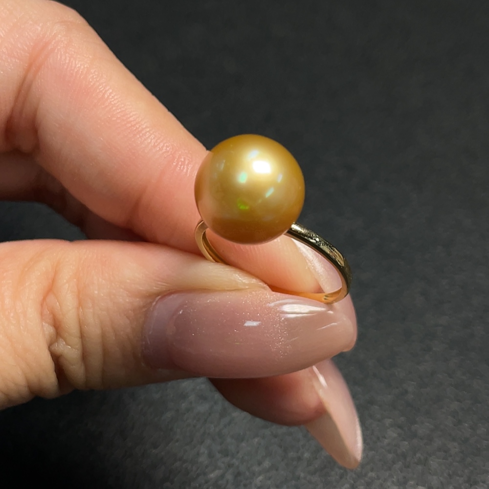 18K Gold Seawater Pearl Ring (Undetermined Color Origin, Total Weight Approx. 3.17g, Size 14, Stone 11.4mm)