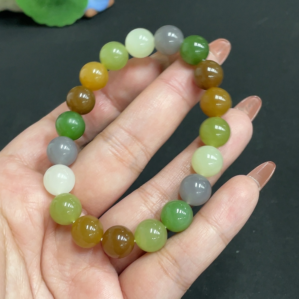 Hetian Jade Bead Necklace, Approx. 9.7mm, Total Weight Approx. 29.1g