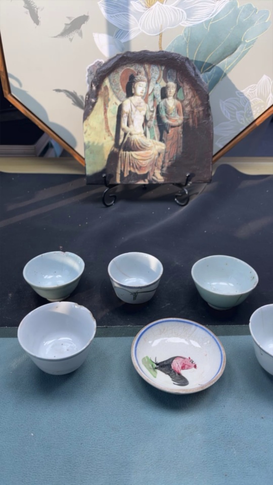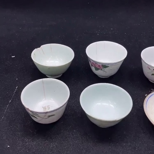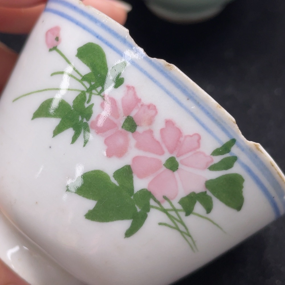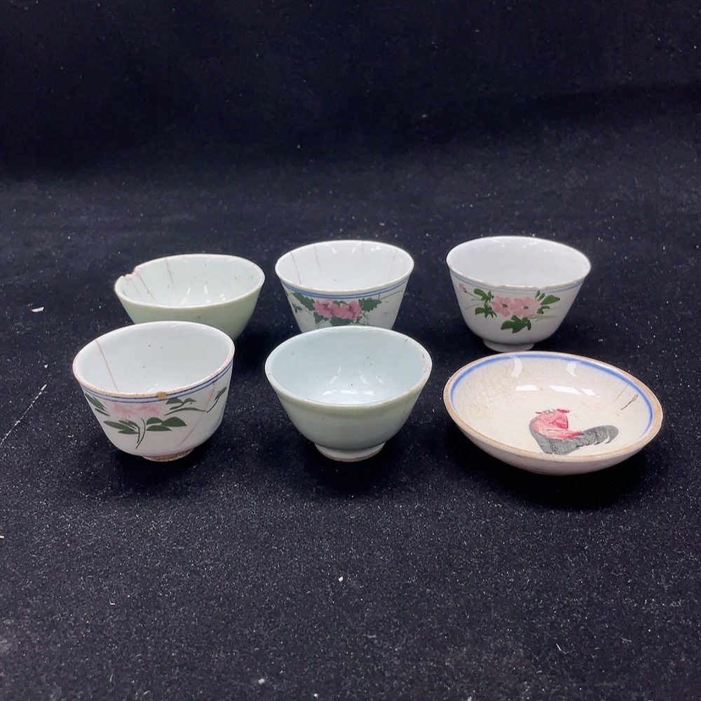 Ceramic 6-piece set with minor chips (actual item may vary)