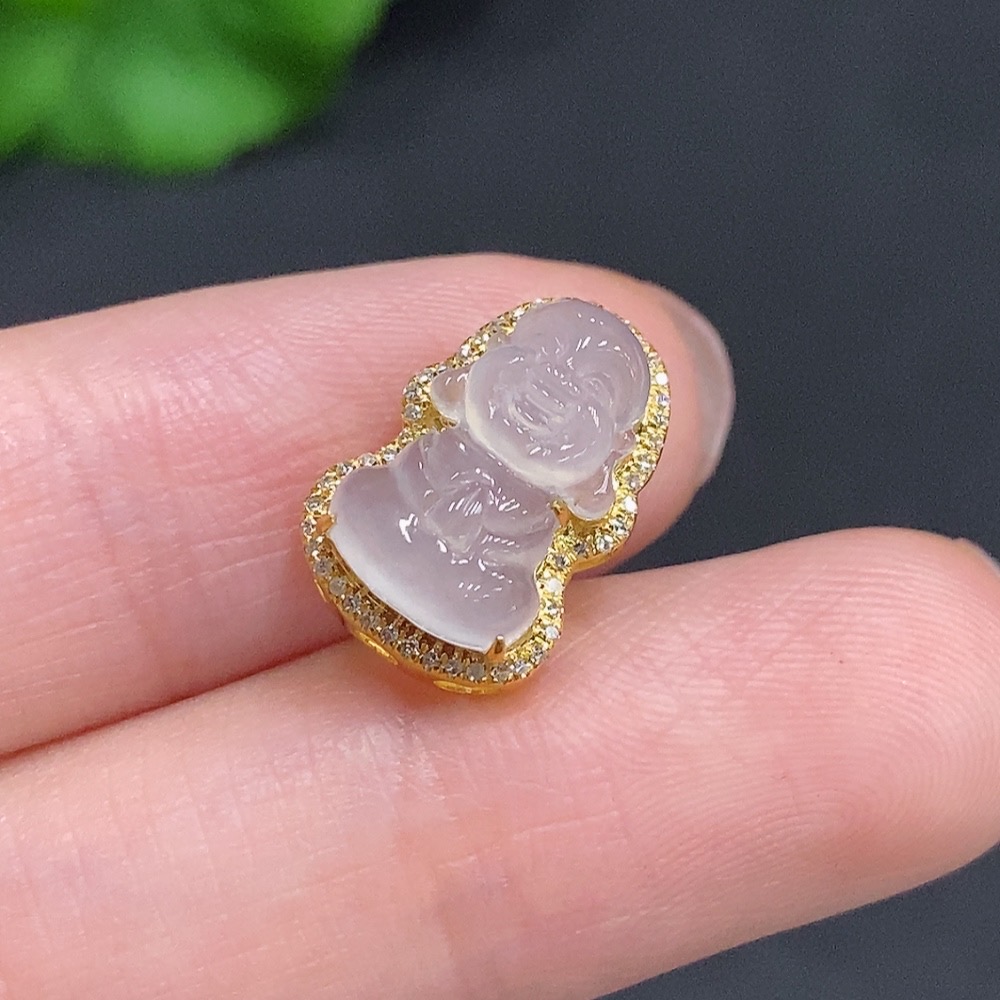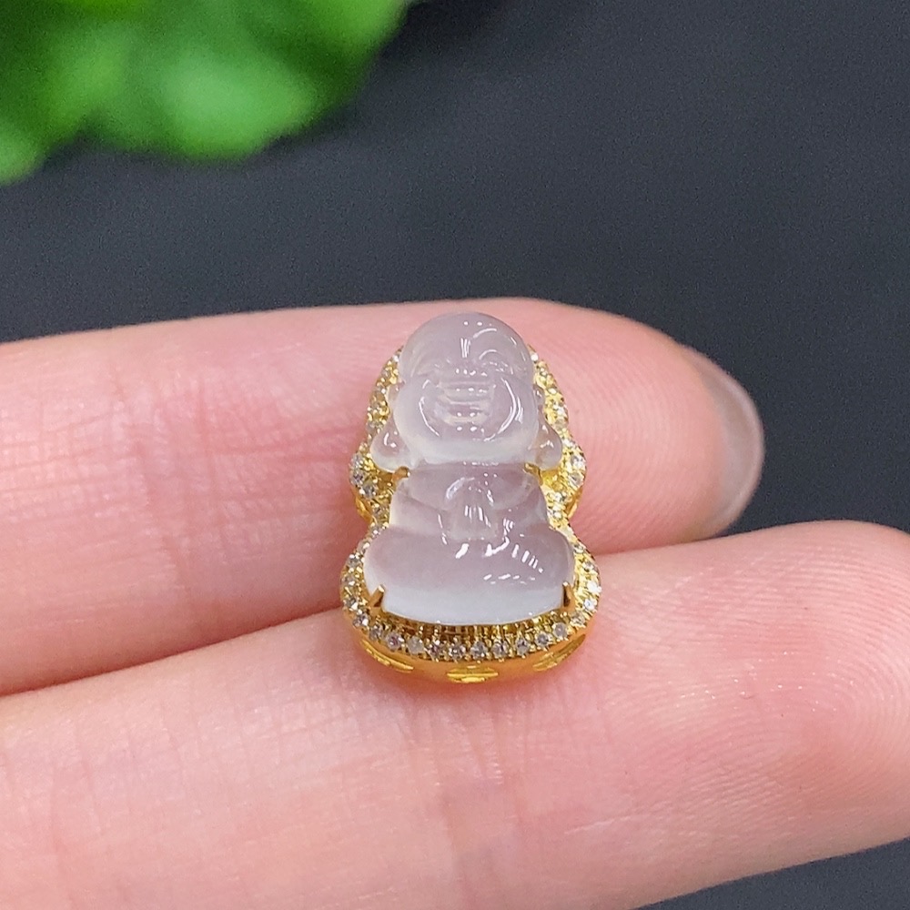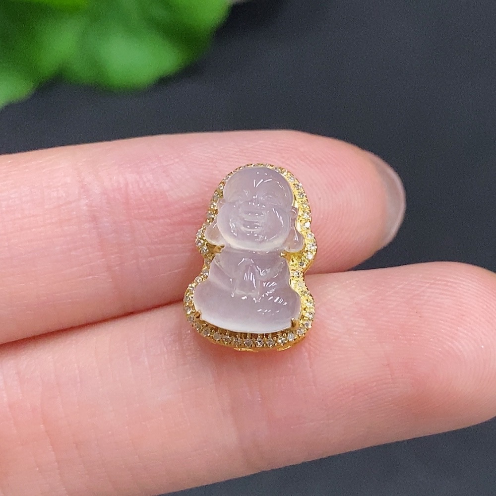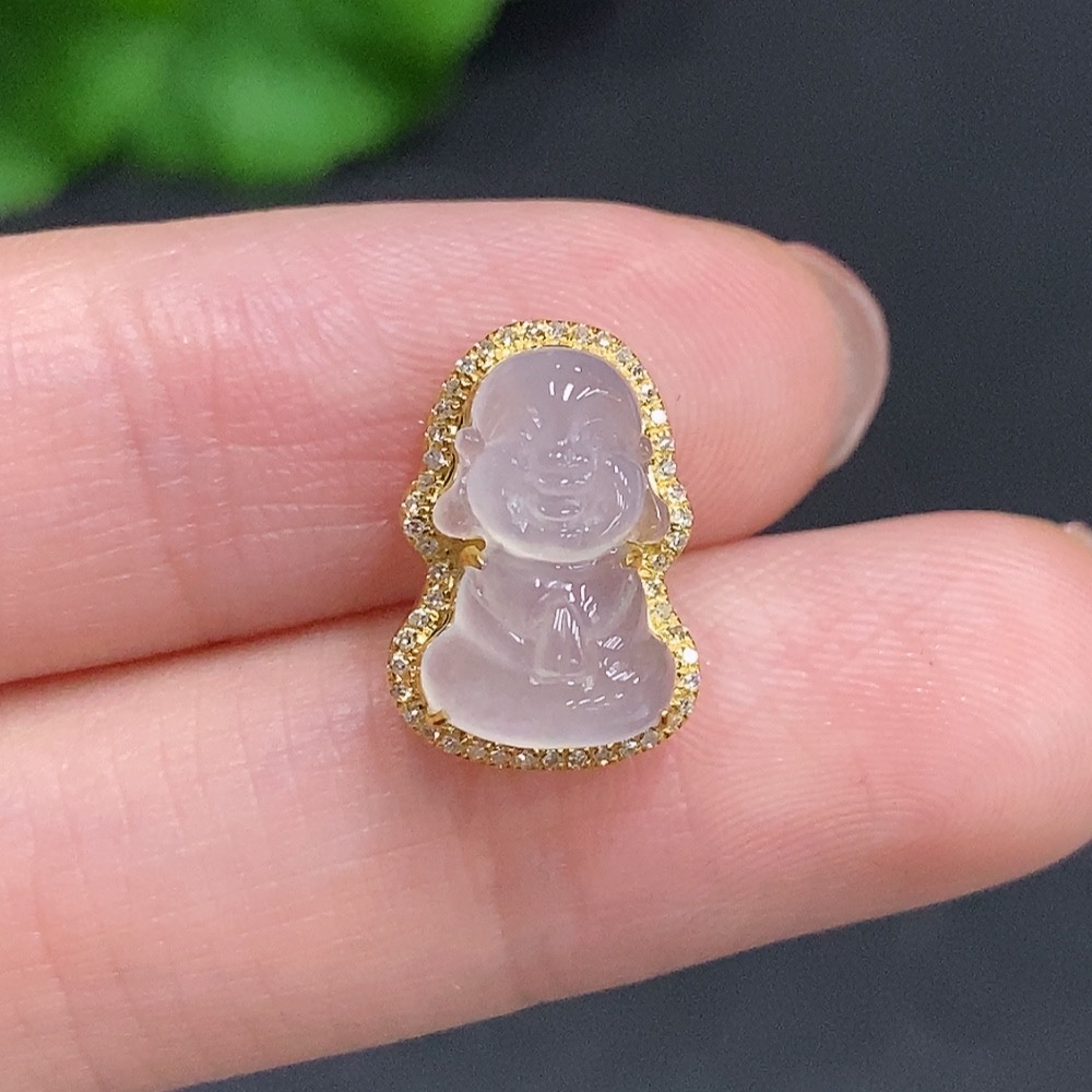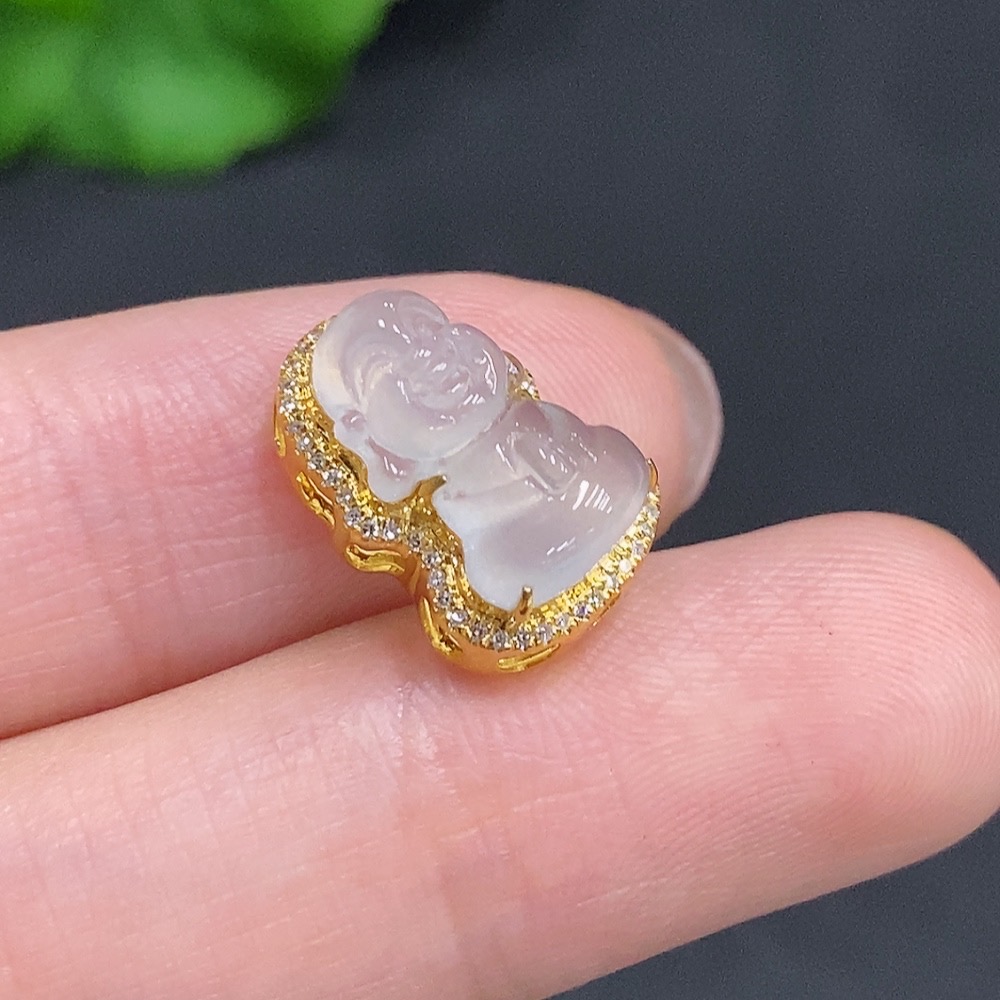 Jadeite Baby Buddha Pendant 18K Gold Total Weight Approx. 1.6g Diamond Accented