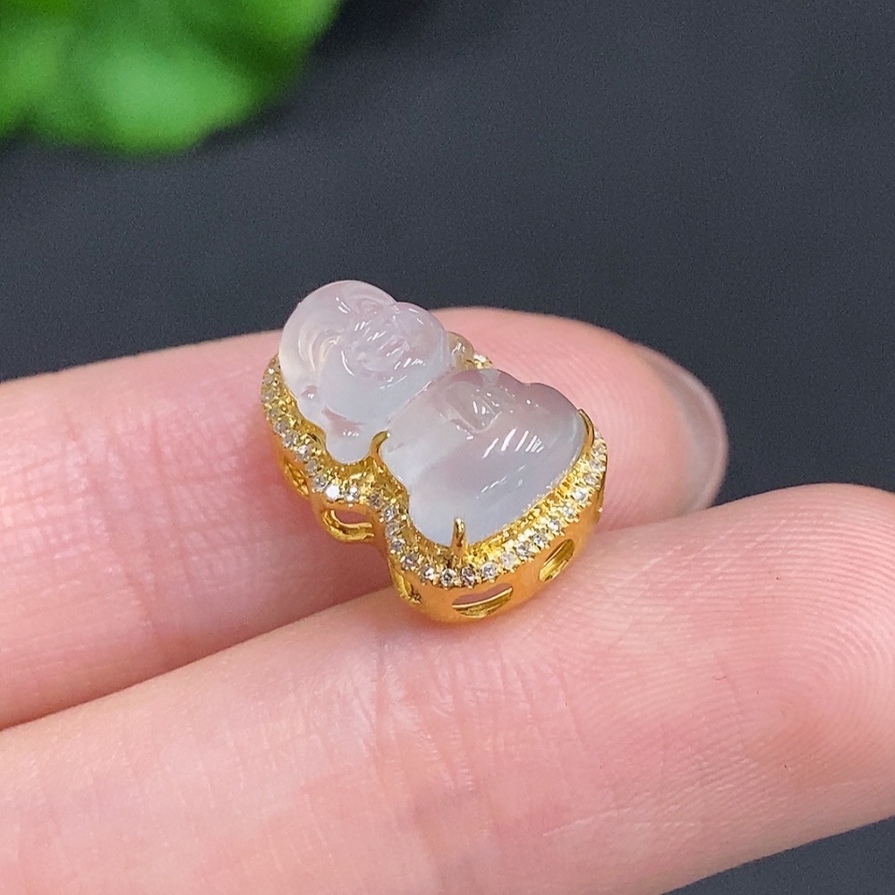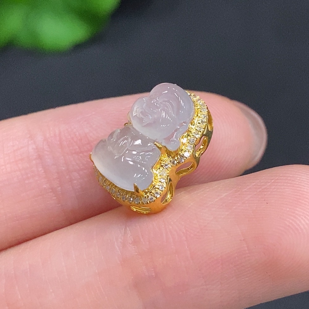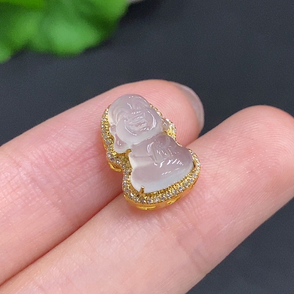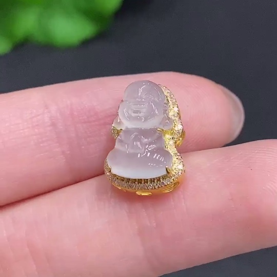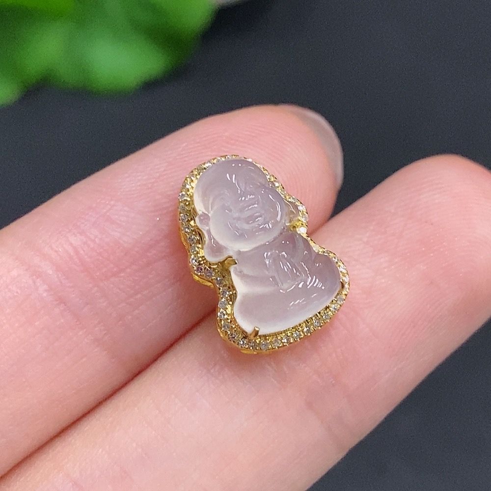 Jadeite Baby Buddha Pendant 18K Gold Total Weight Approx. 1.6g Diamond Accented