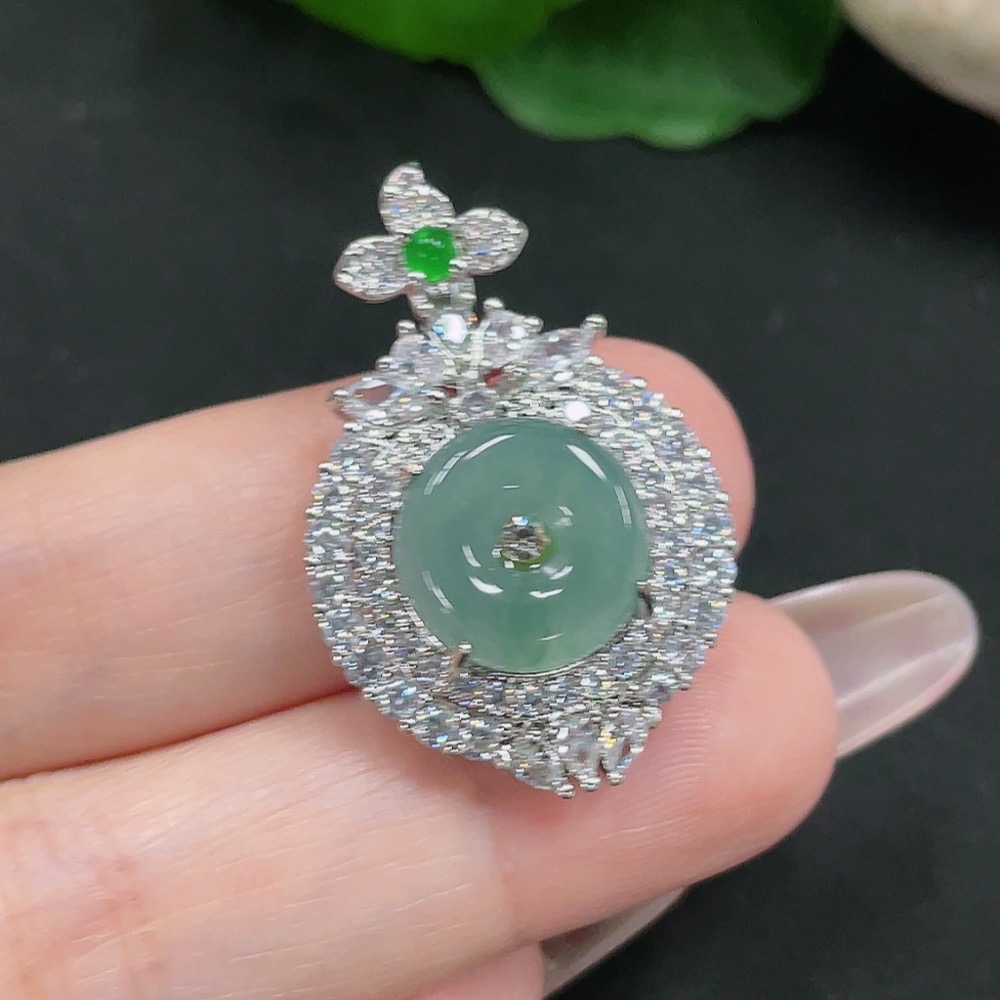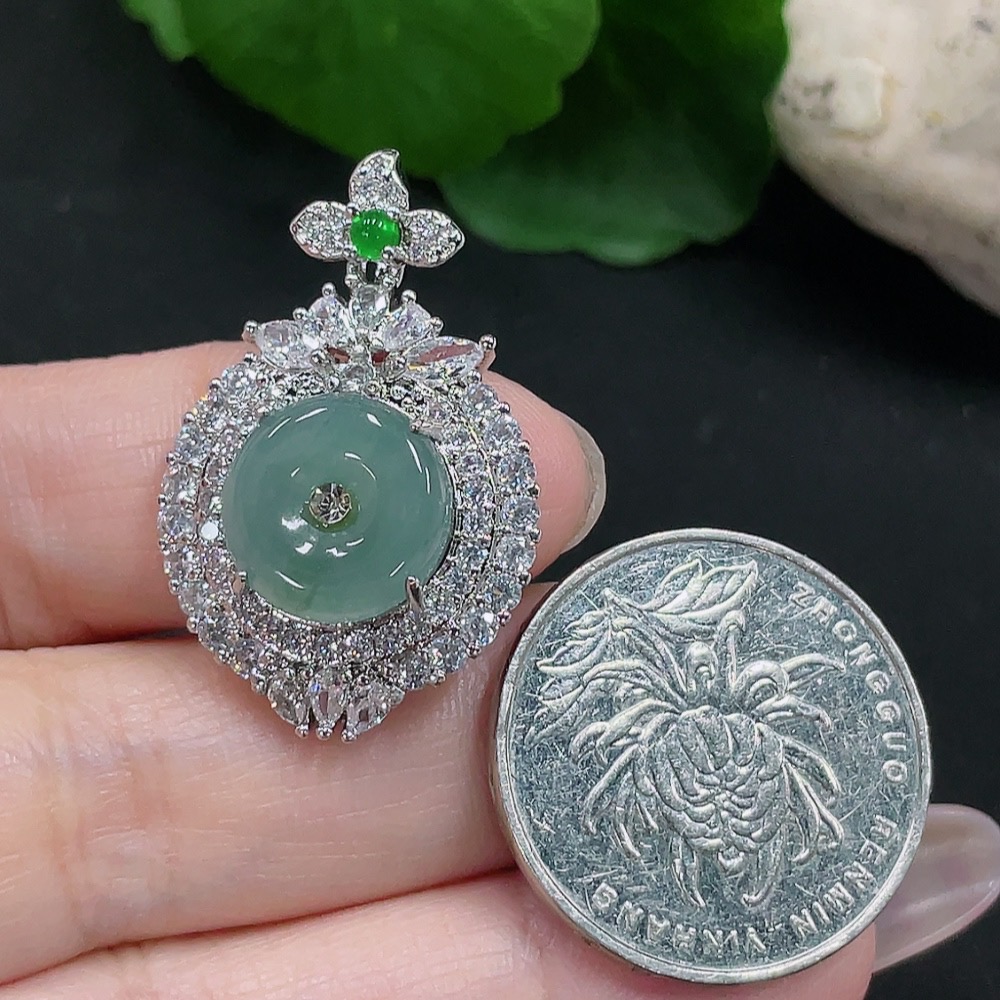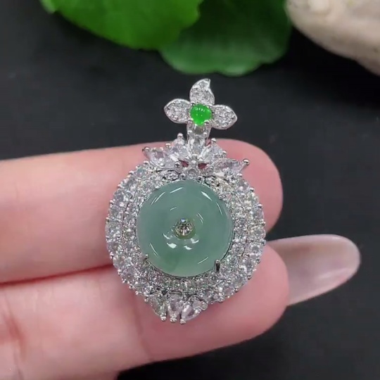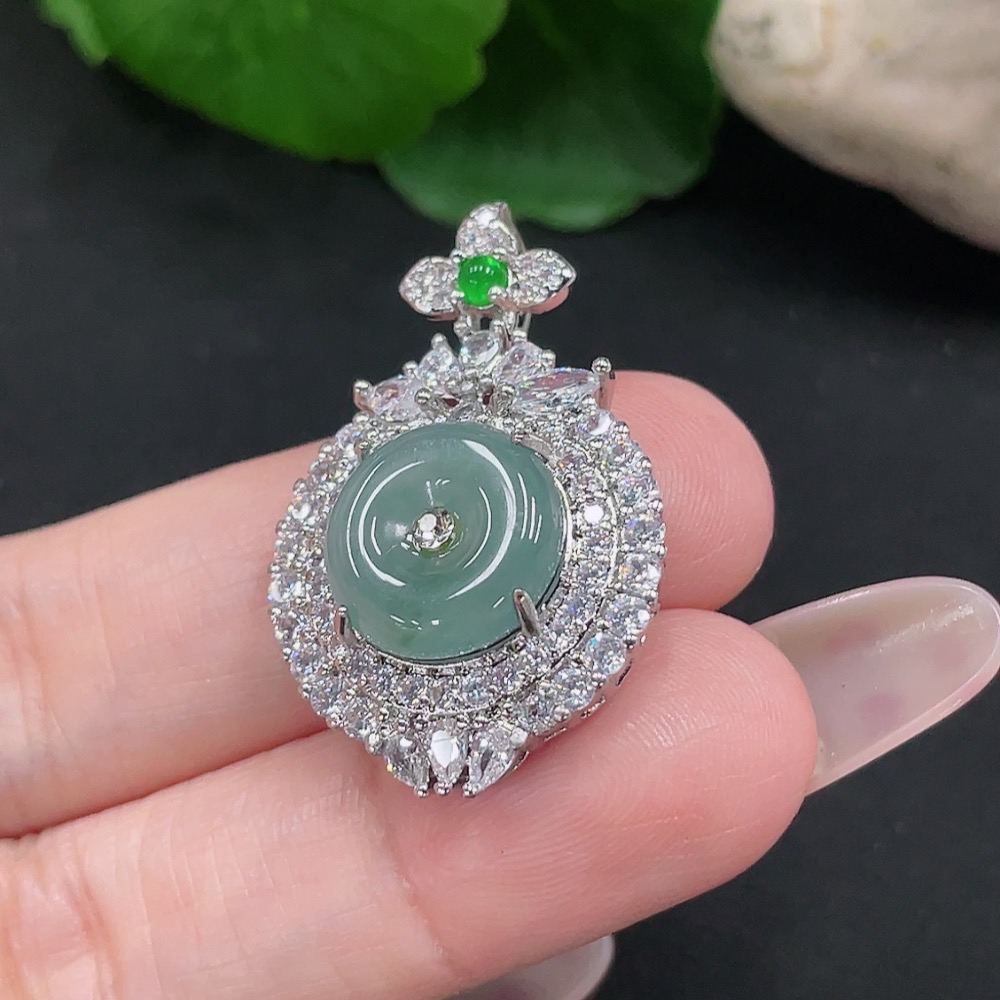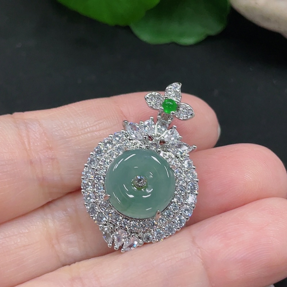 Jadeite Safety Buckle Pendant Total Weight about 5.3g (Beads Non-A) (Non-Gold Inlaid)