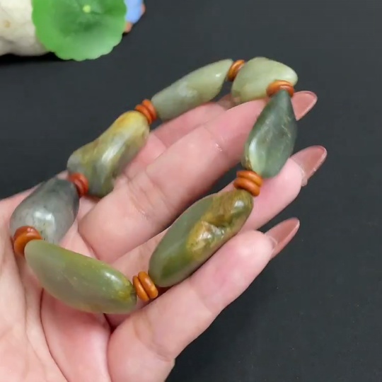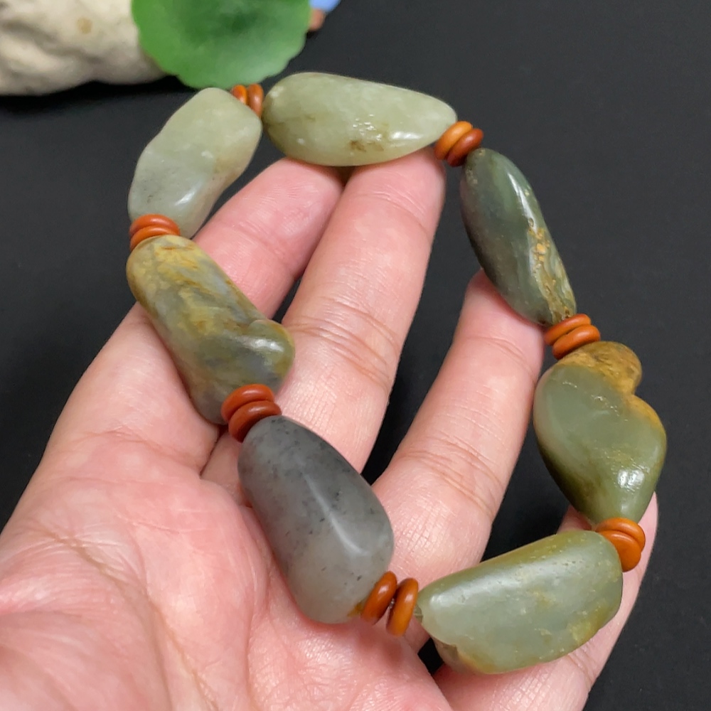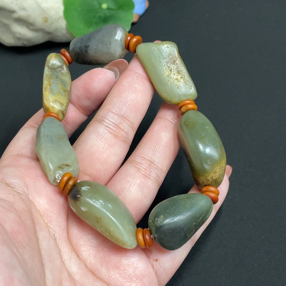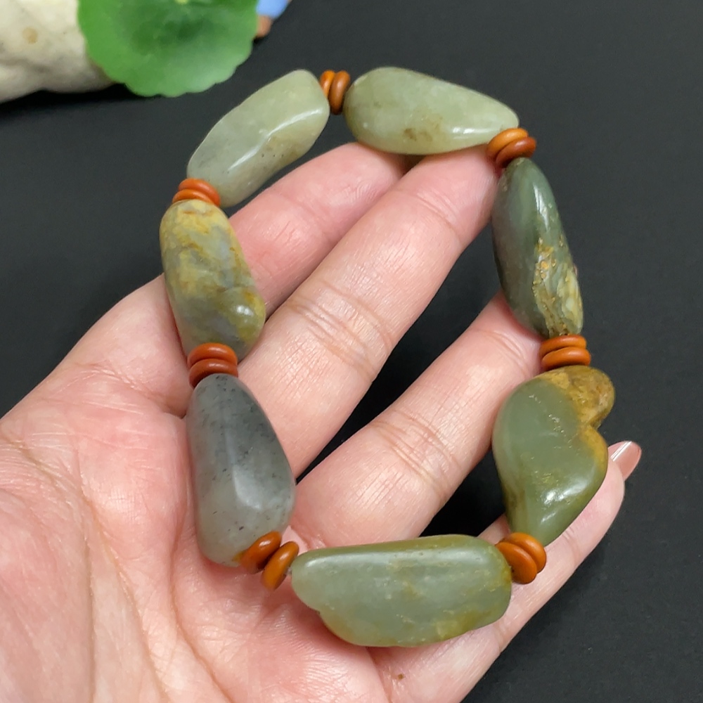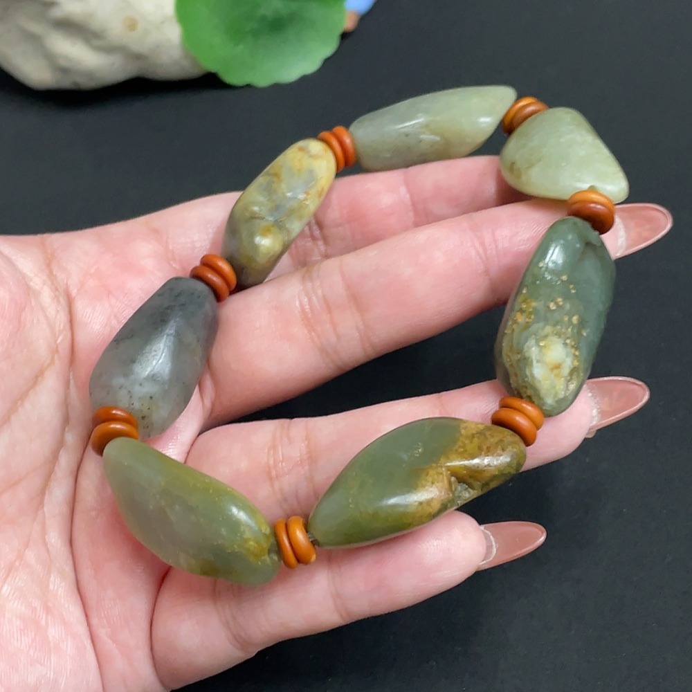 Hetian Jade Bracelet, Undetermined Skin Color Cause, Contains Other Mineral Components, Total Weight Approximately 67.8g
