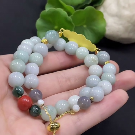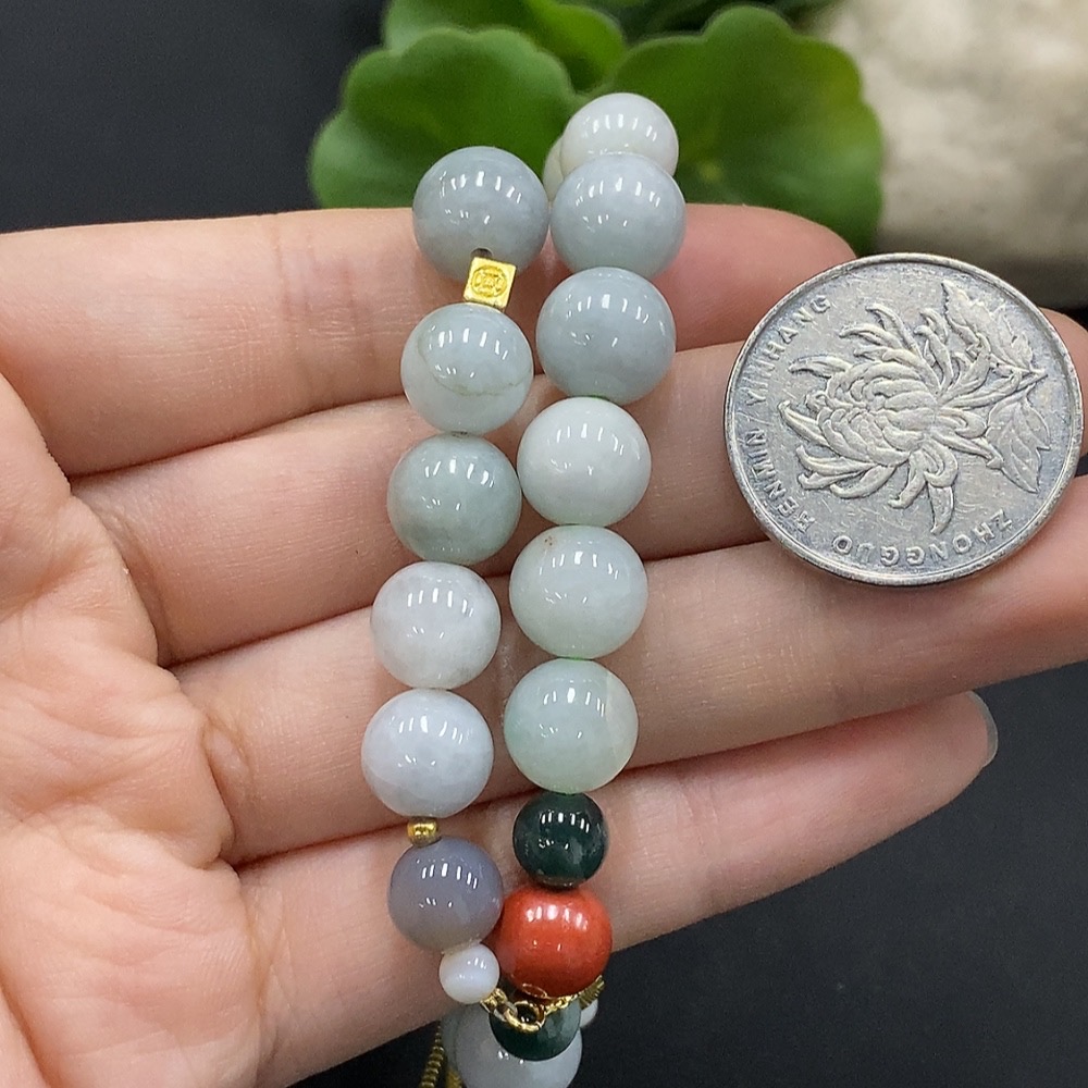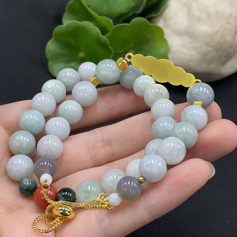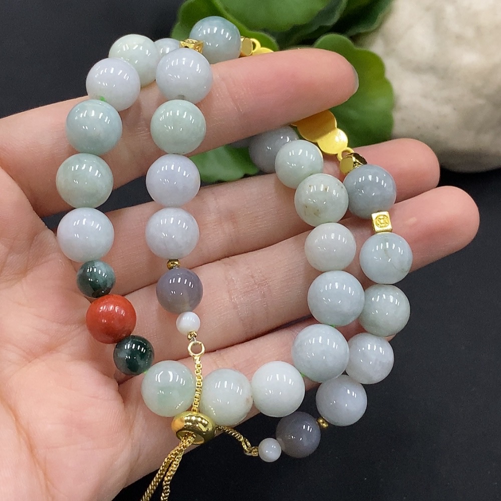 Jadeite Bracelet with Non-A Grade Beads, No Gold Inlay