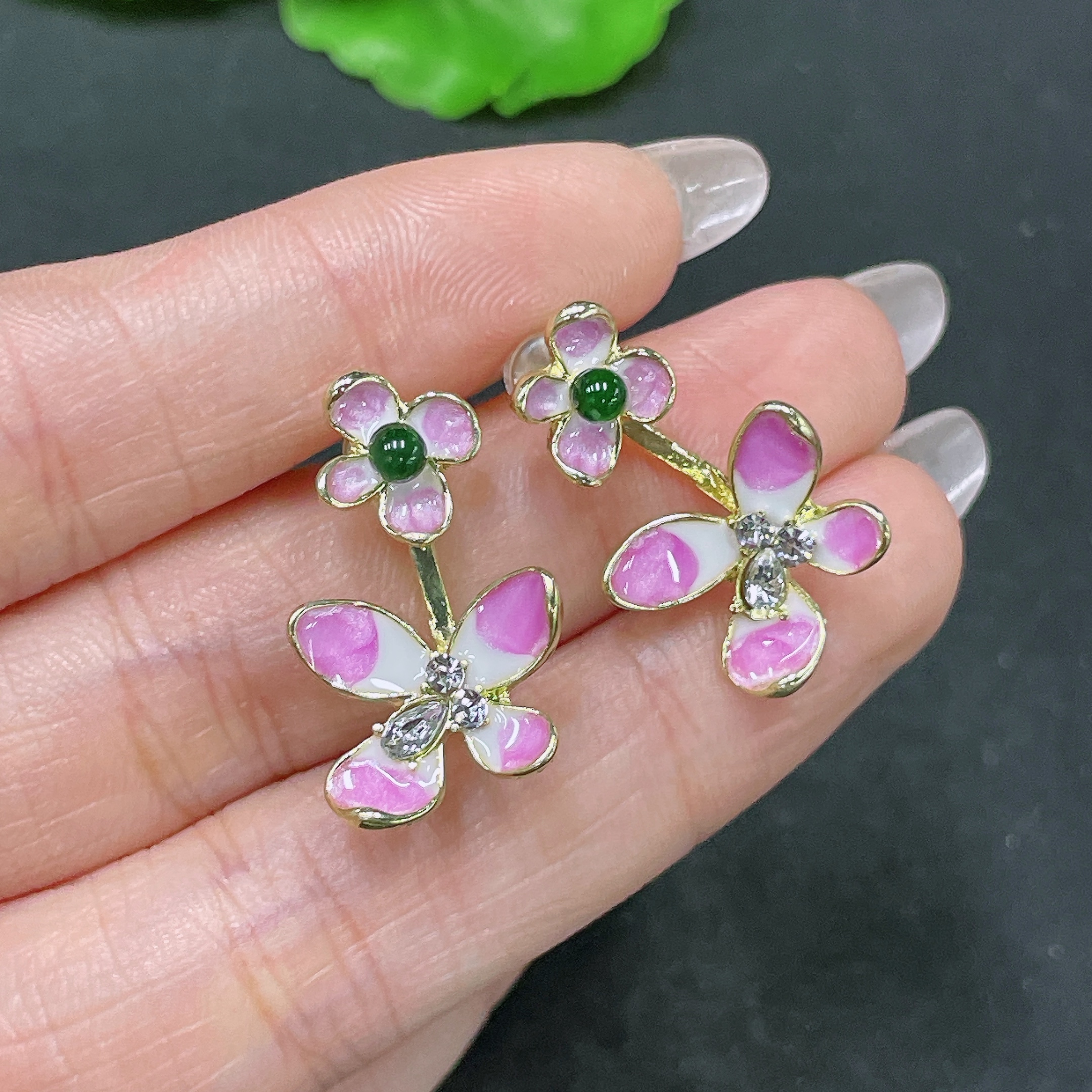 Trezaar - Jadeite Inlaid Earrings Non-Gold