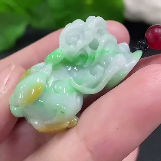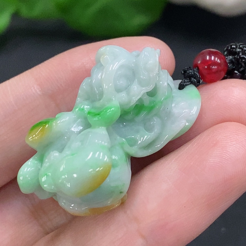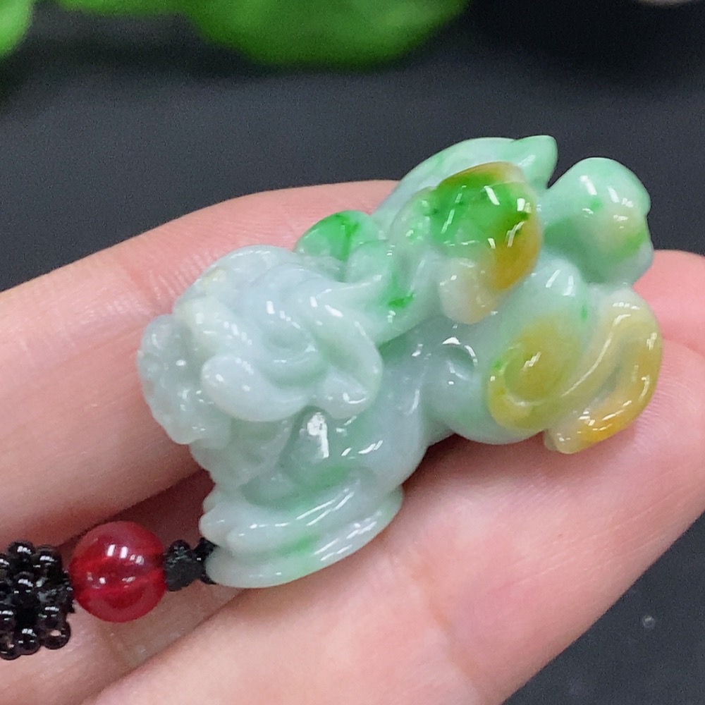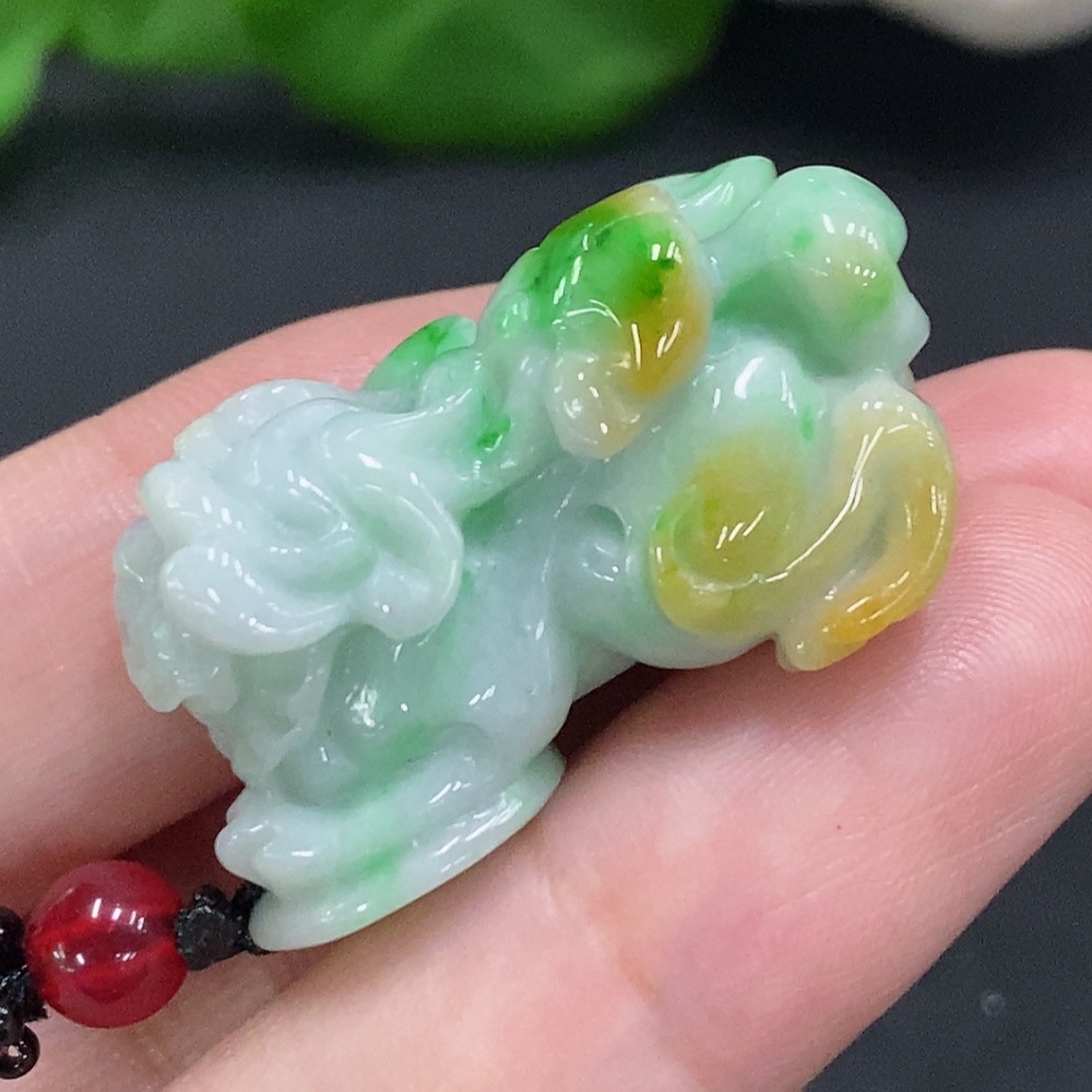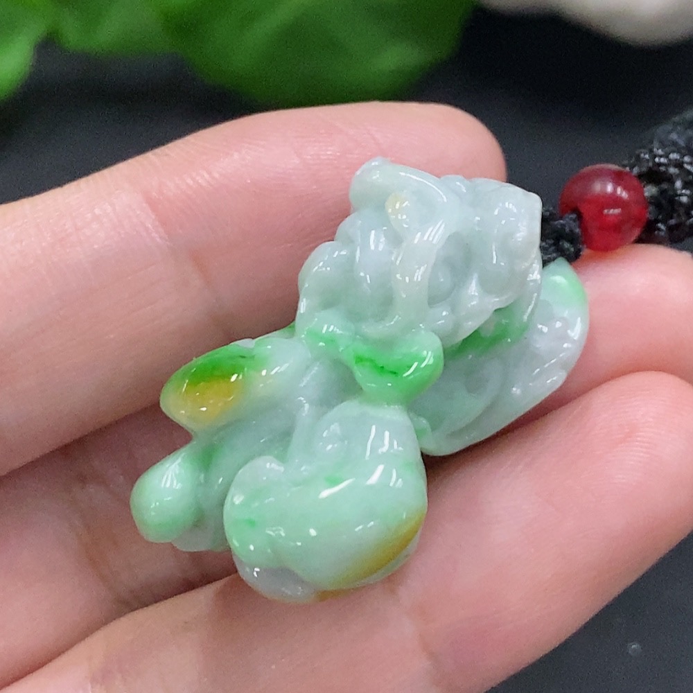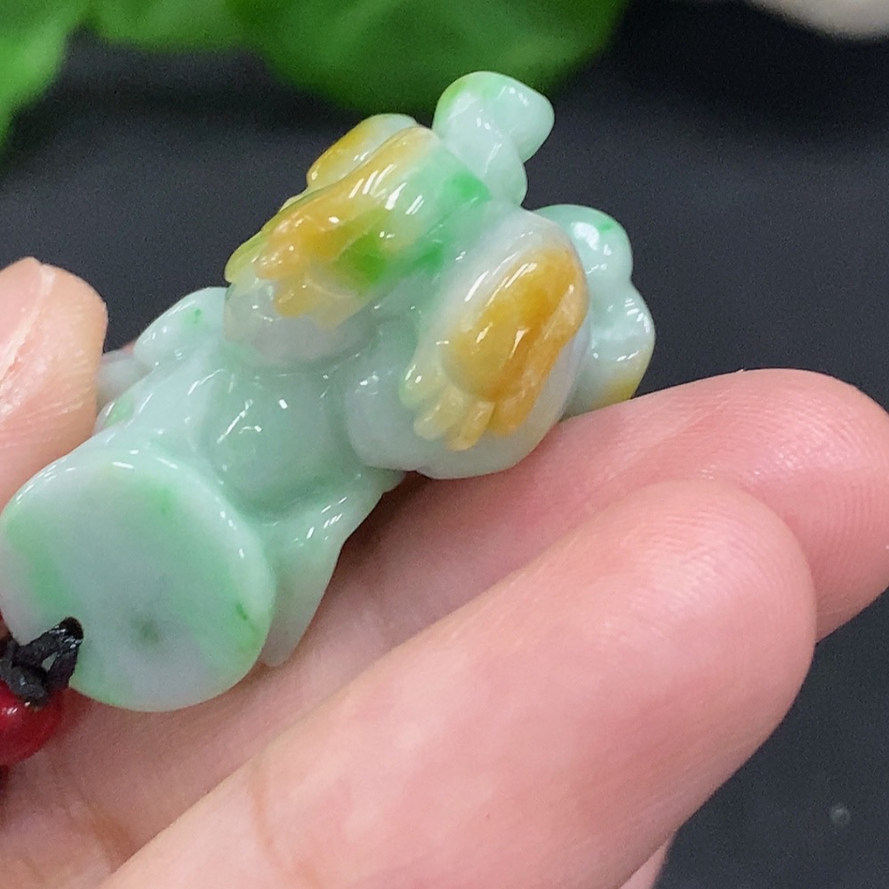 Jadeite Pi Xiu pendant, total weight about 17.6g (including rope weight), yellow color origin undetermined