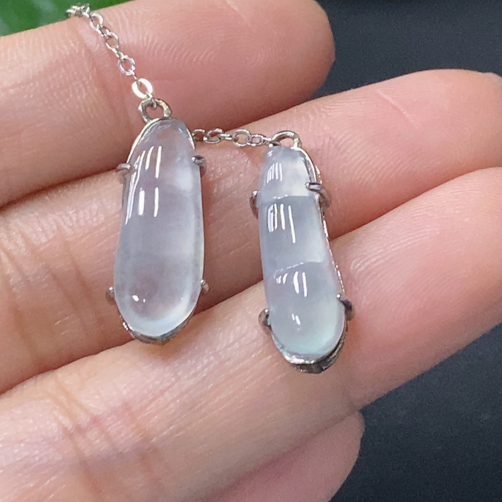 Jadeite Inlaid Earrings Non-Gold Total Weight Approx. 3.37g