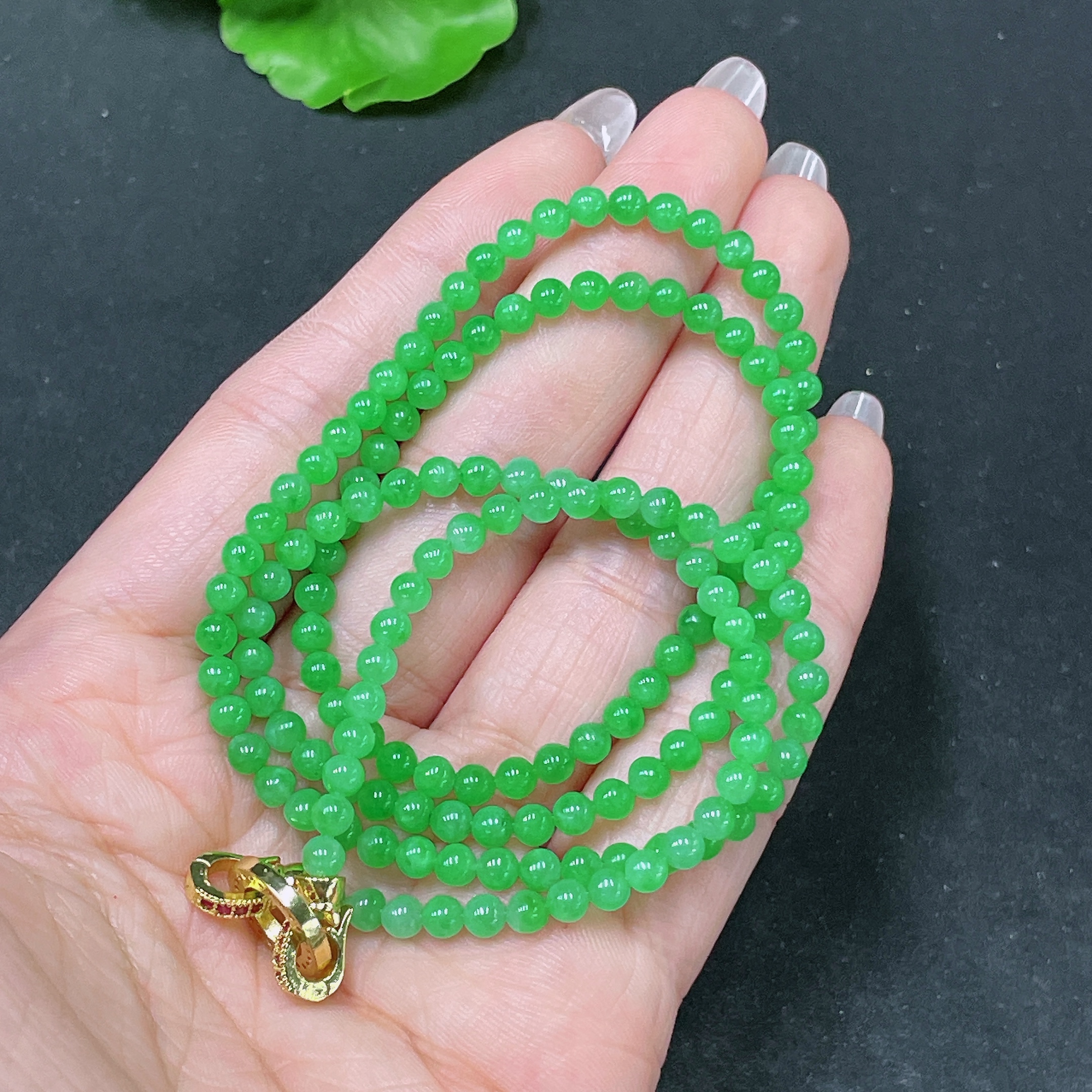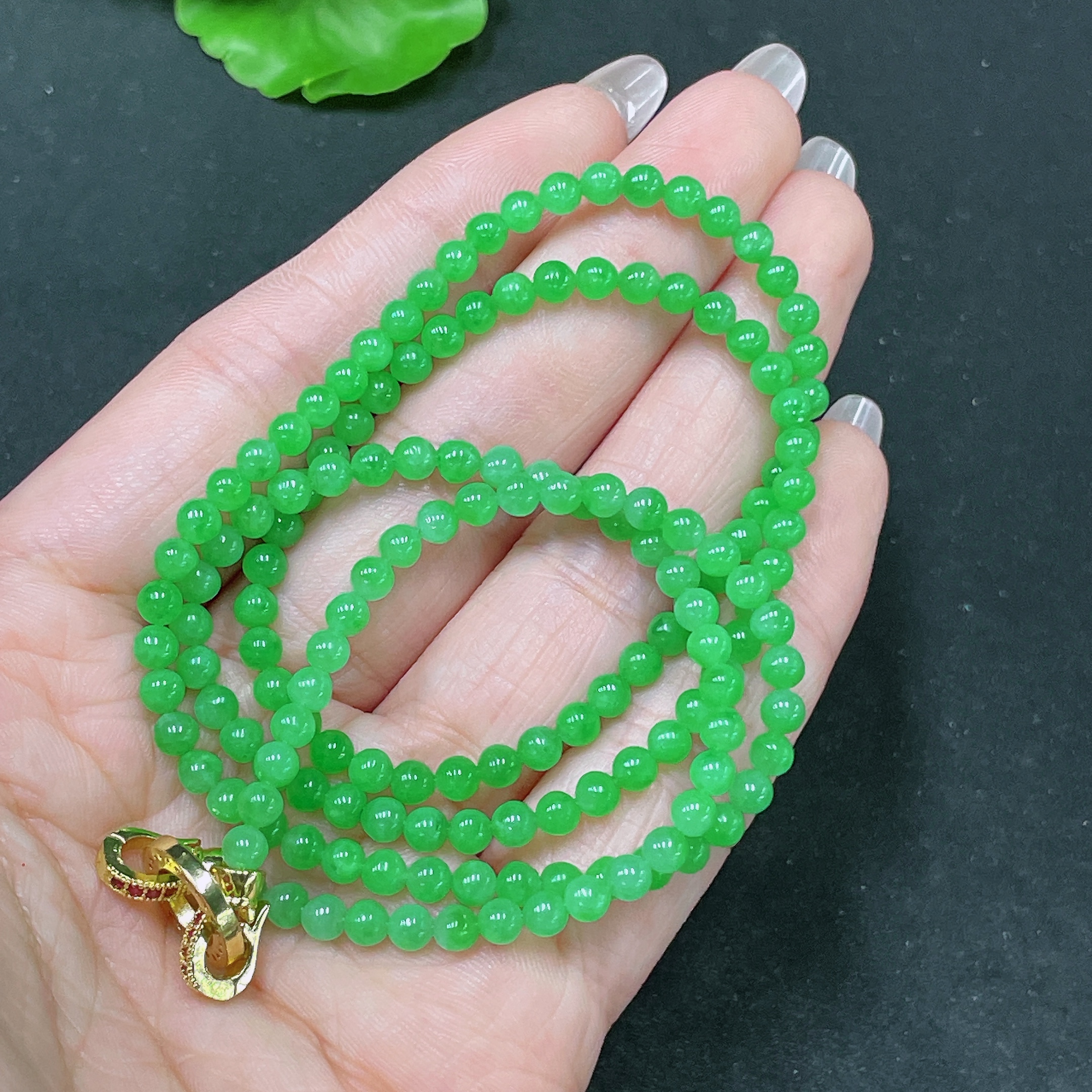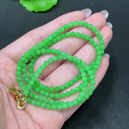 Jadeite Bead Necklace Non-Gold Total Weight Approx. 16.8g Size About 3.8mm