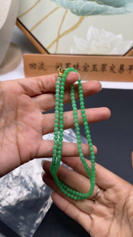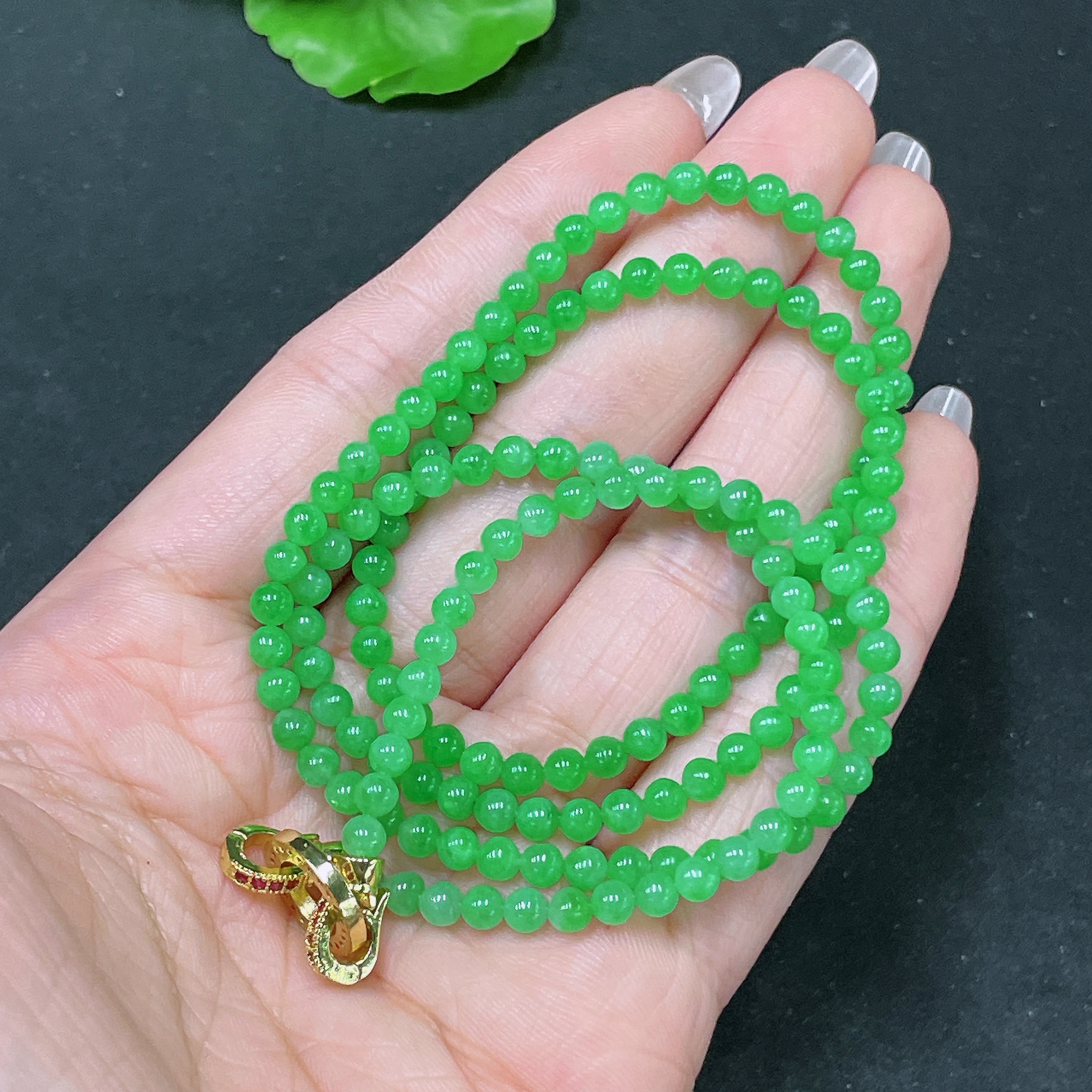 Jadeite Bead Necklace Non-Gold Total Weight Approx. 16.8g Size About 3.8mm