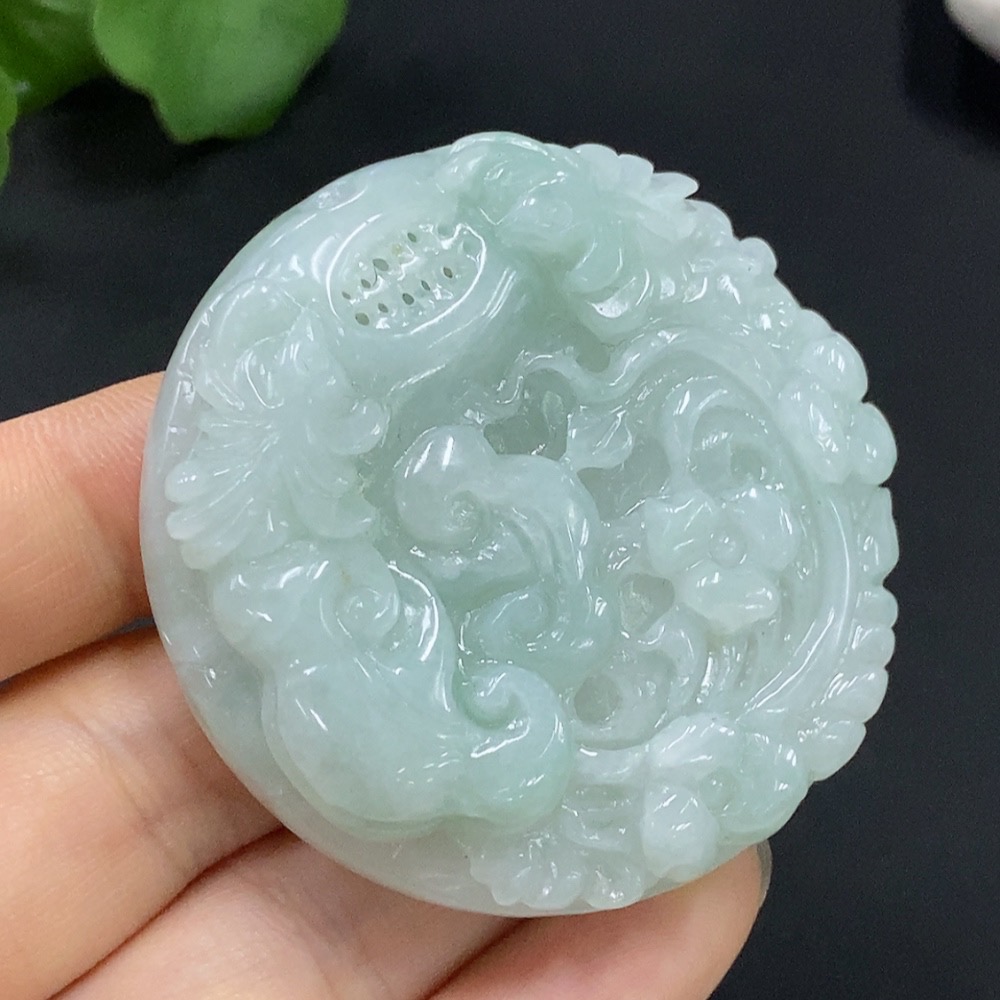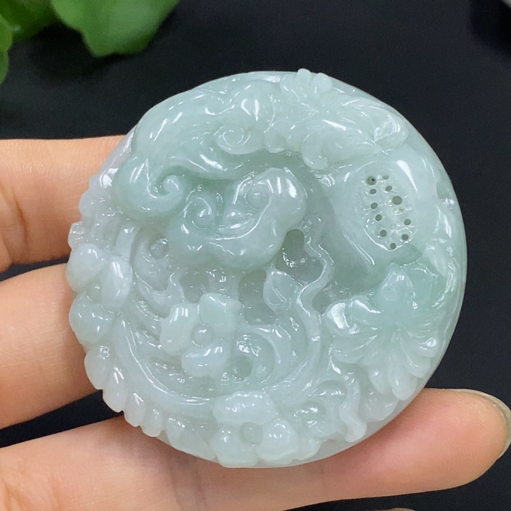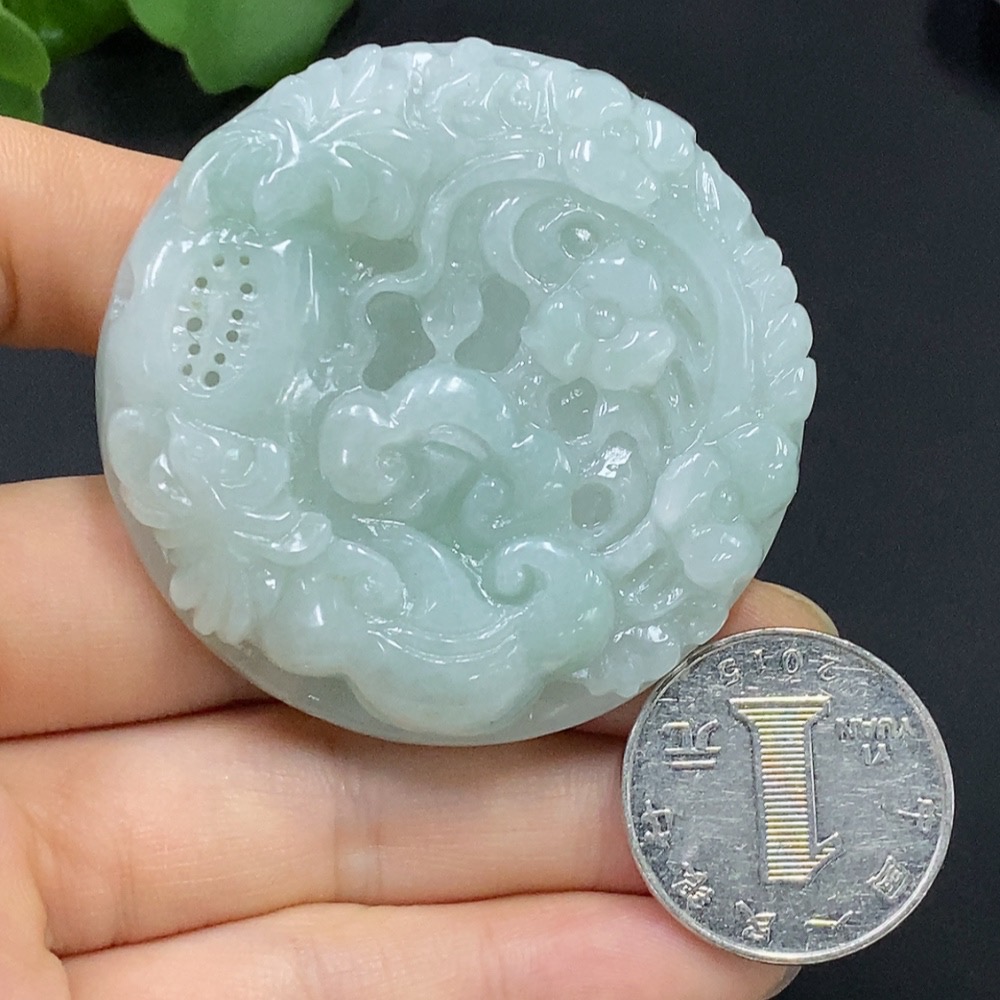 Jadeite Flower of Prosperity Pendant with a total product weight of approximately 52.61 grams