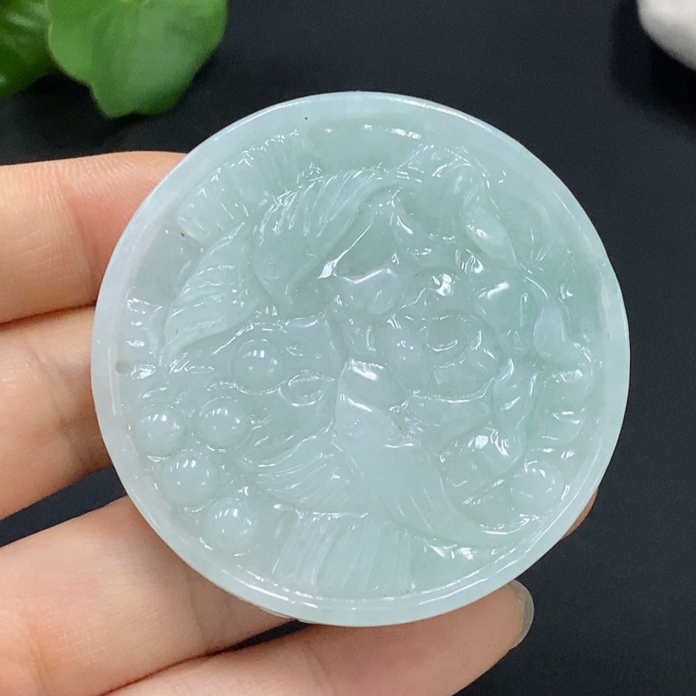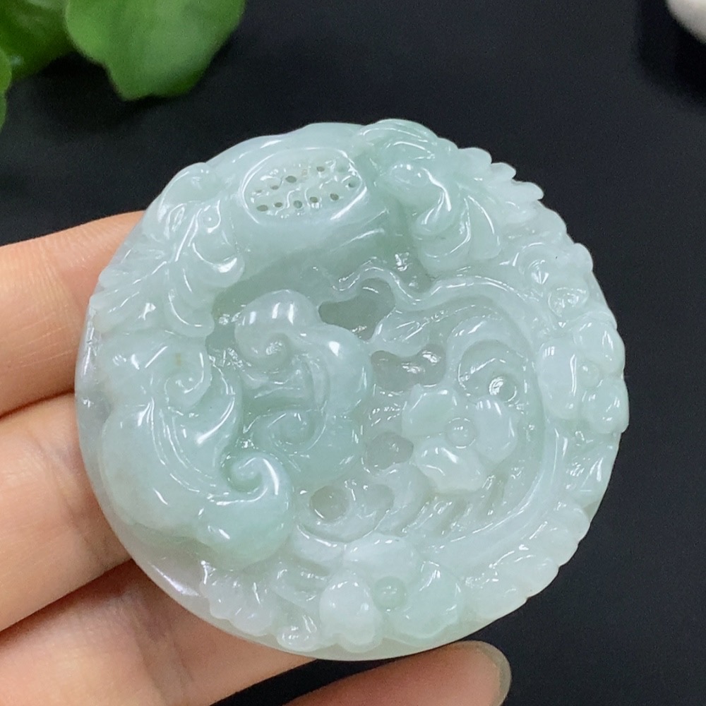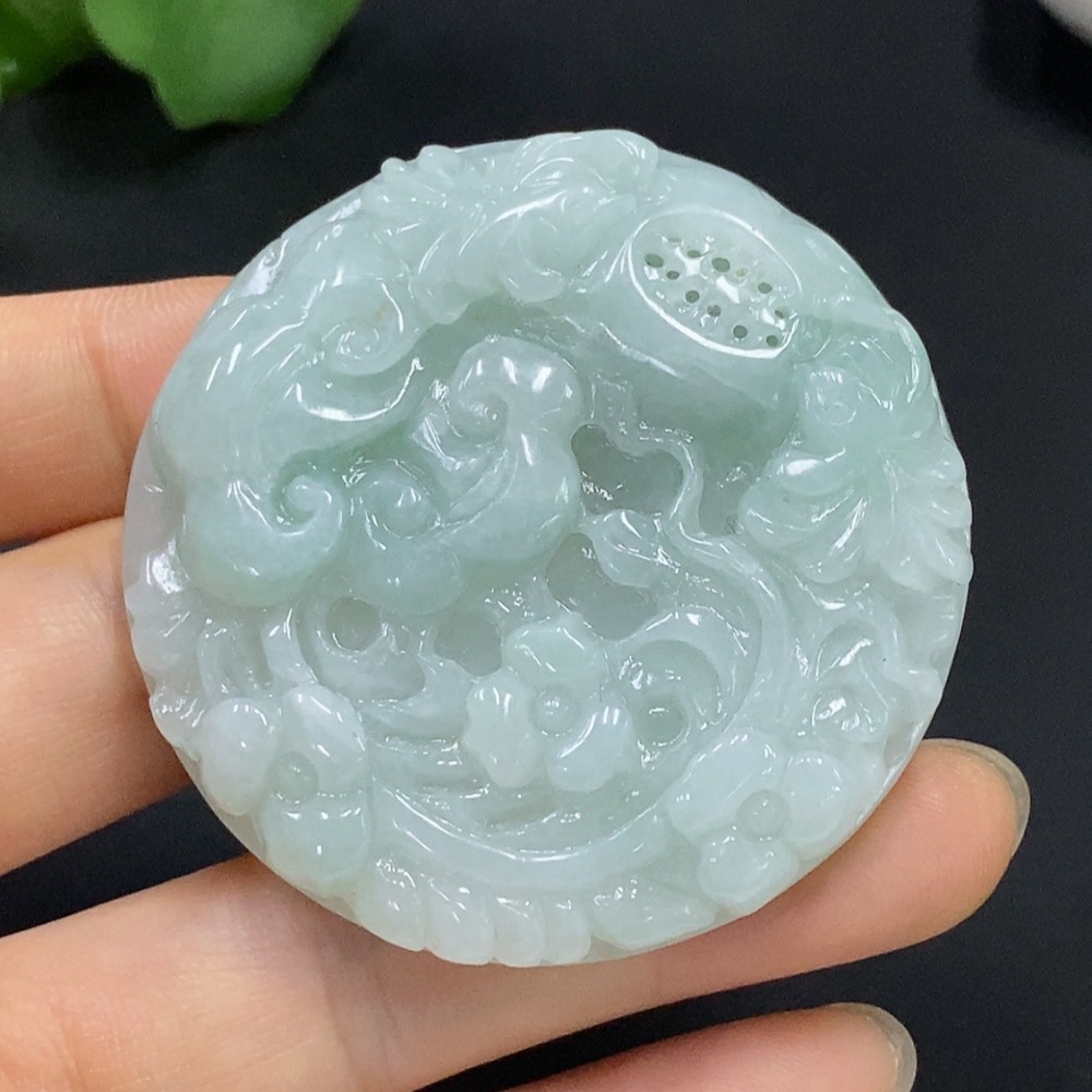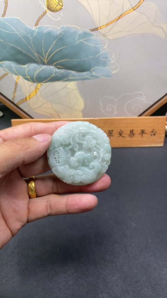Jadeite Flower of Prosperity Pendant with a total product weight of approximately 52.61 grams