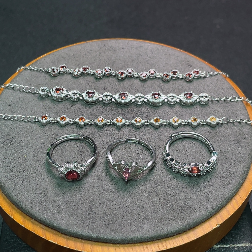 Garnet Bracelet + Ring Non-Gold Adjustable Total Weight Approx. 16.2g Sell as a Lot