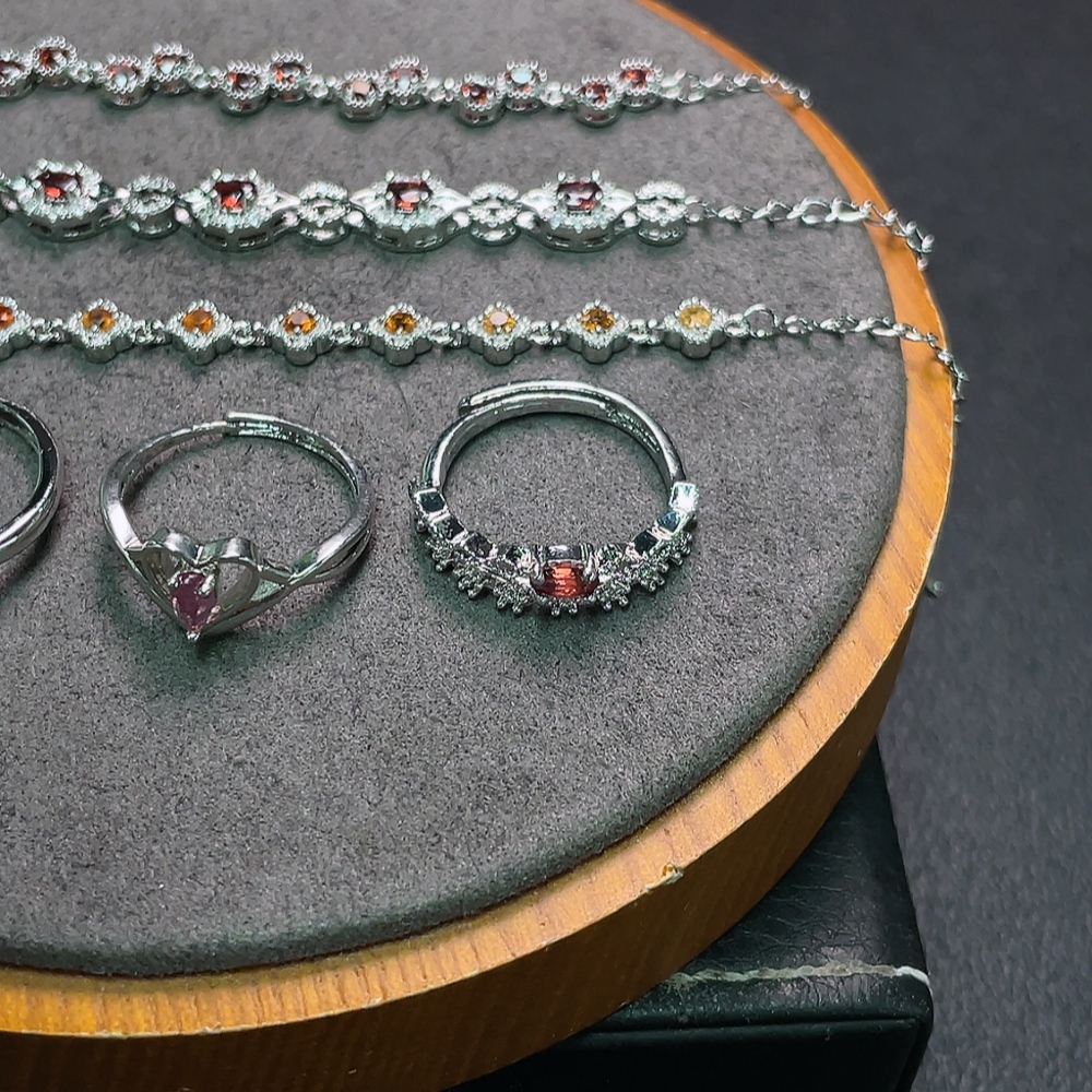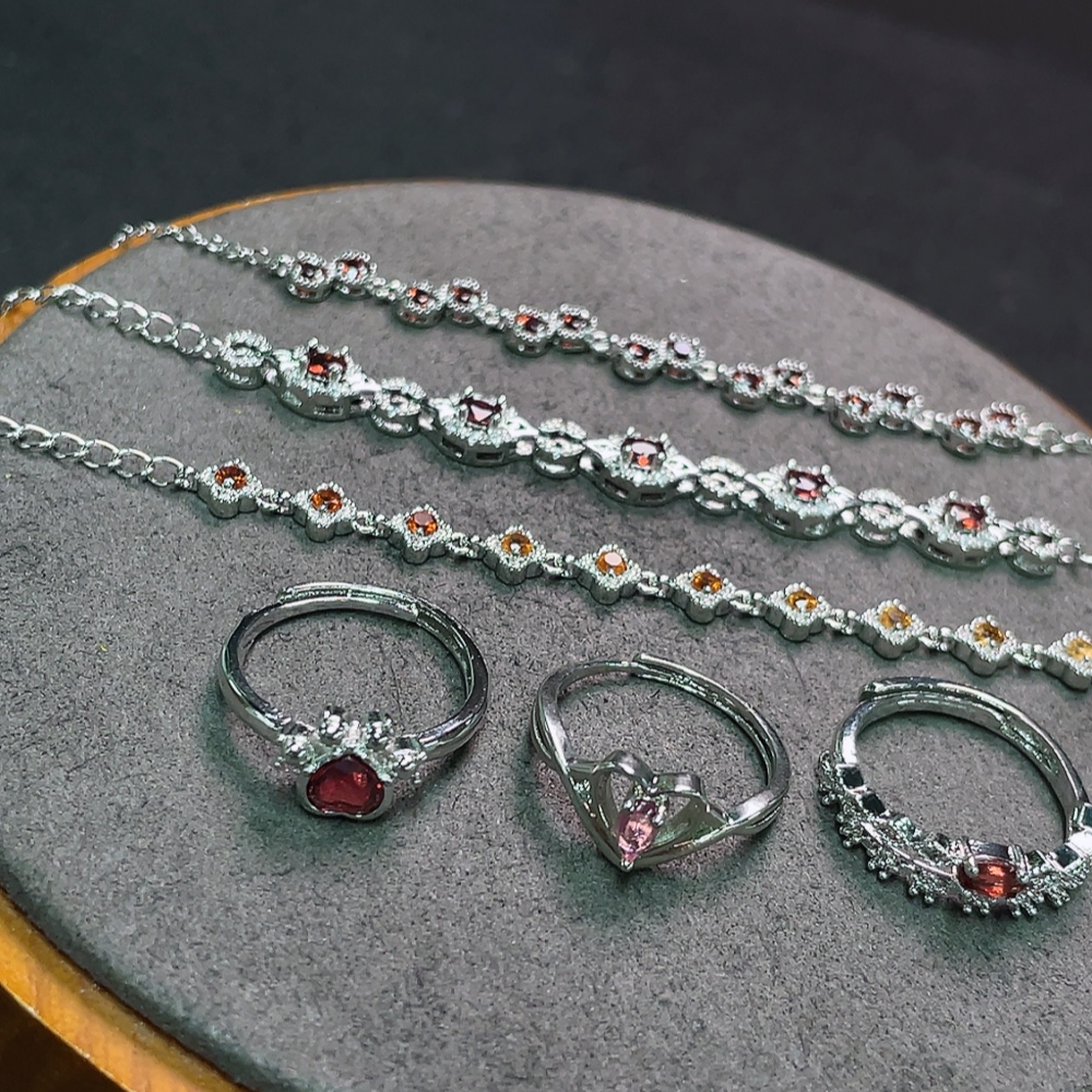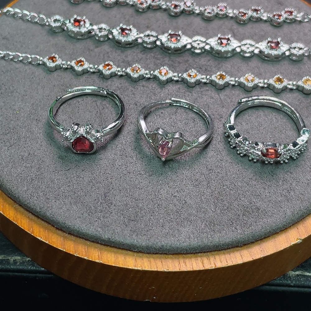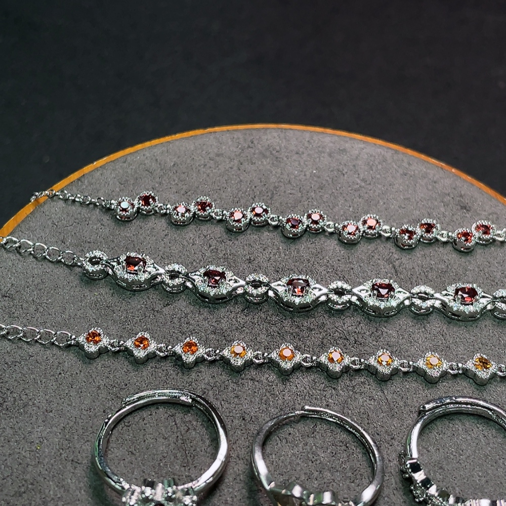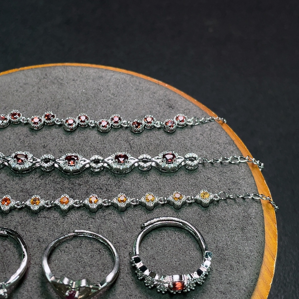 Trezaar - Garnet Bracelet + Ring Non-Gold Adjustable Total Weight Approx. 16.2g Sell as a Lot