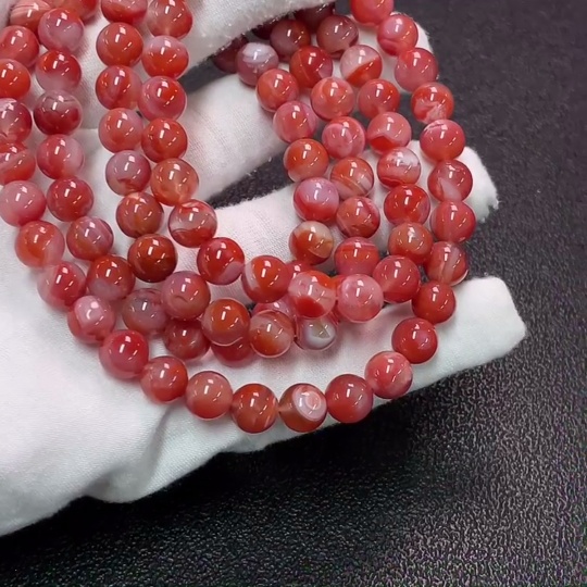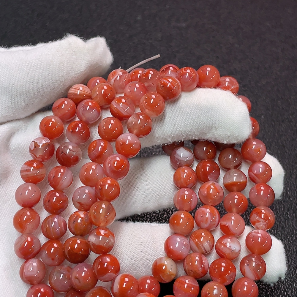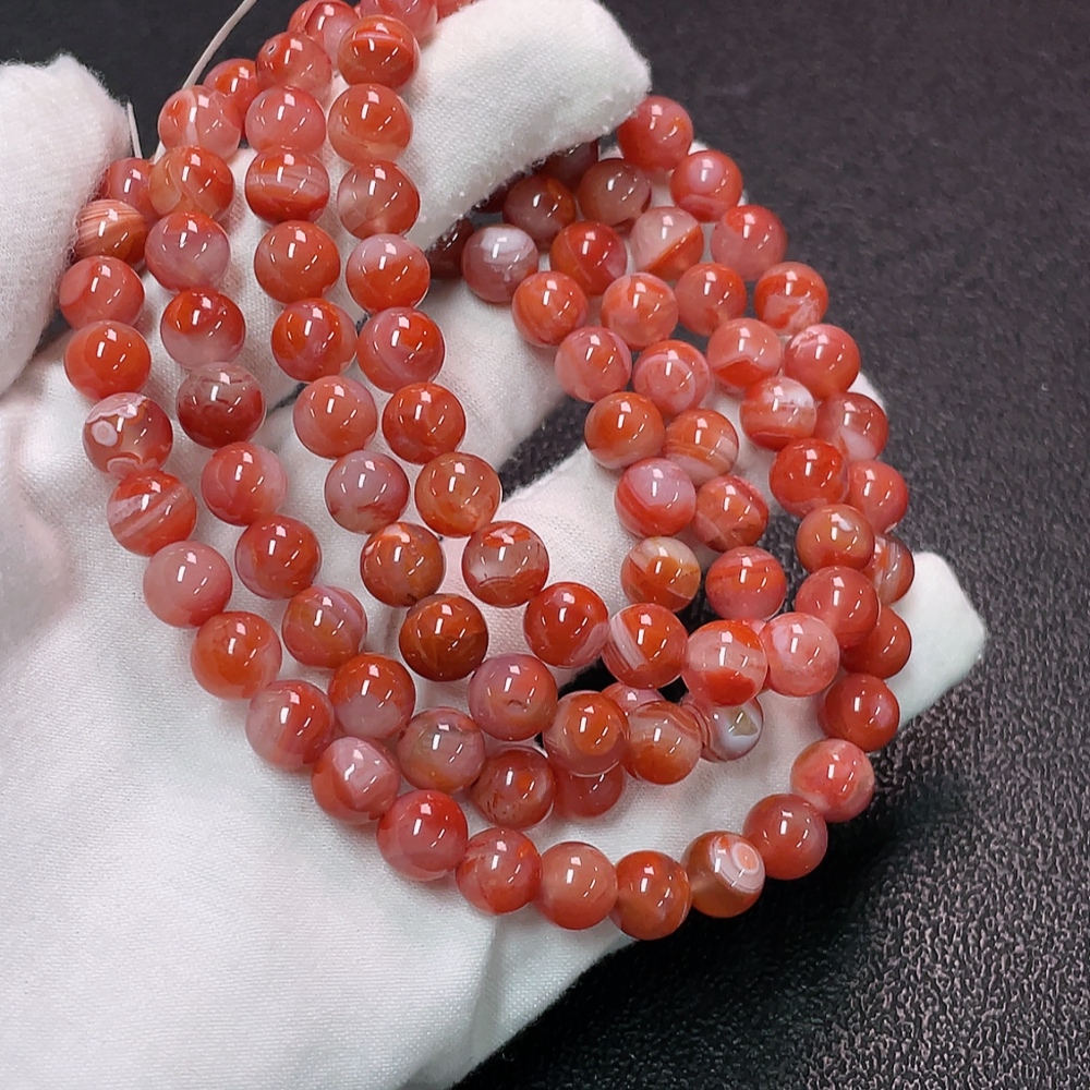 South Red Agate Bead Strand with Visible Organic Matter, Total Weight Approximately 80.36g, Size About 8.3mm