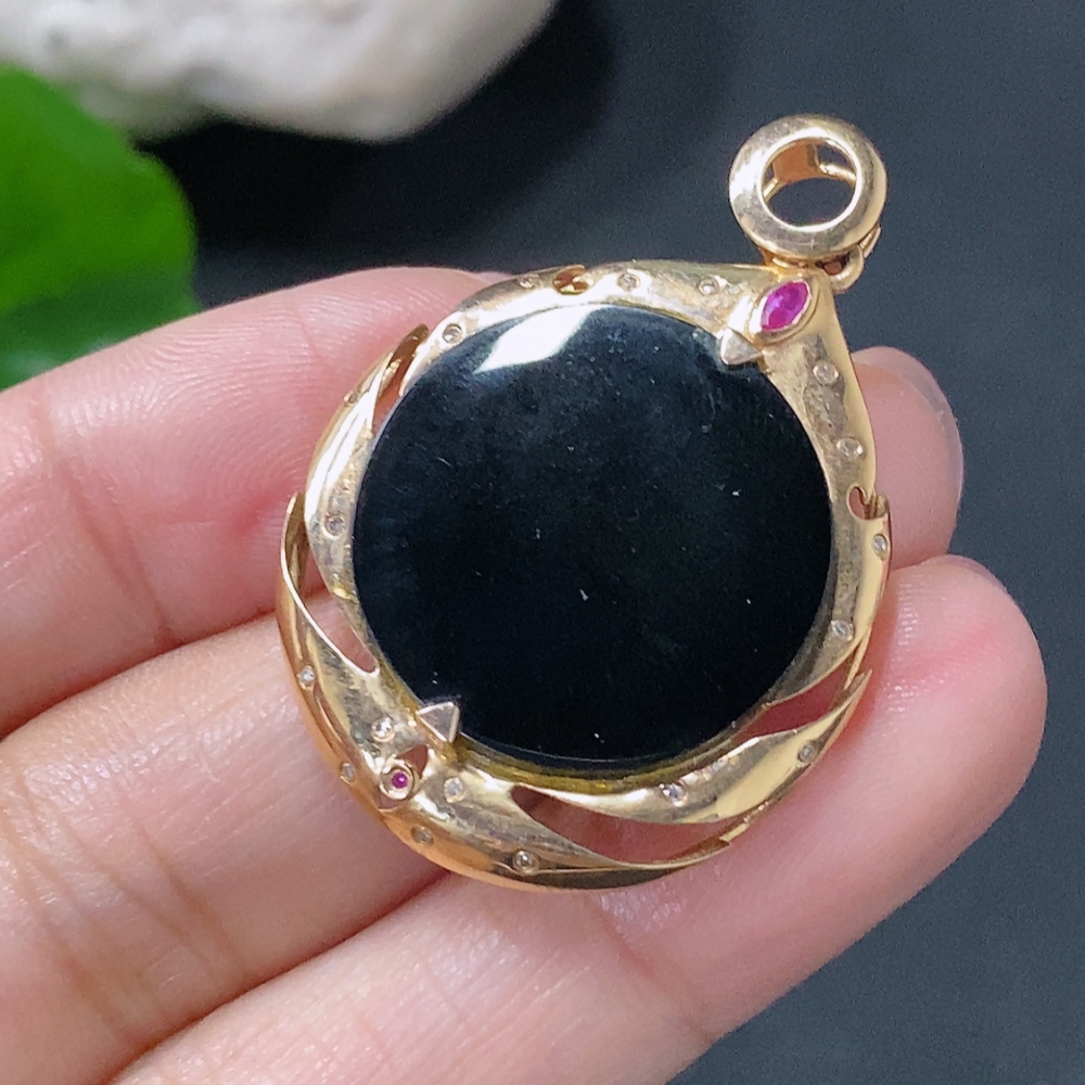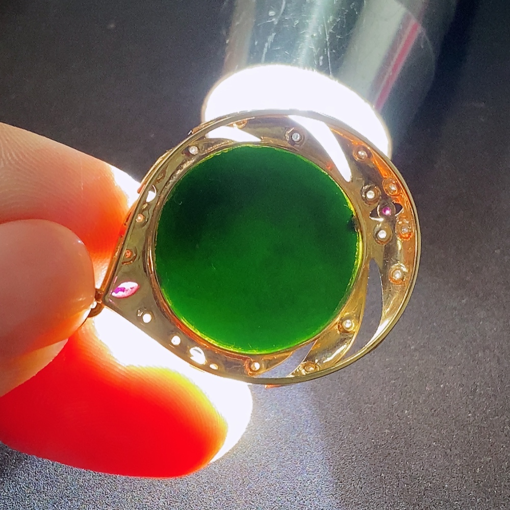 Jadeite Plain Pendant with 18k Diamond Accents Colorless Total Weight Approx. 4.53g