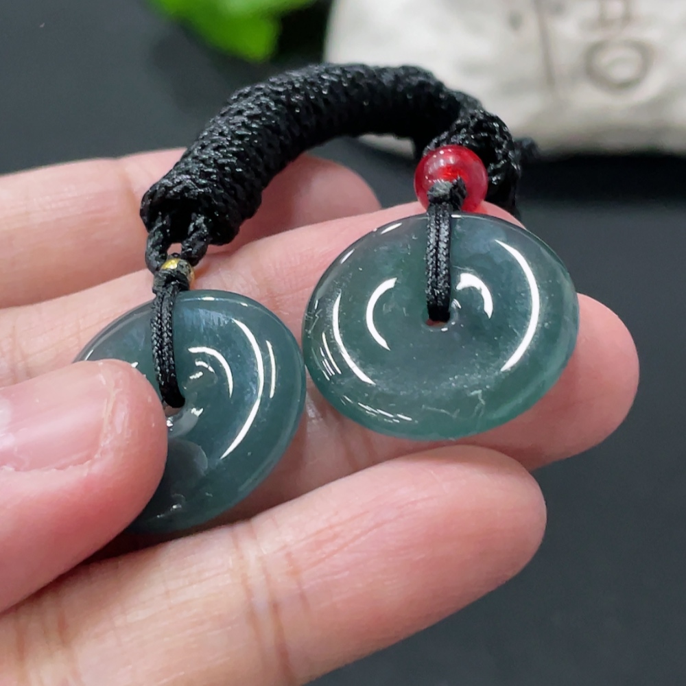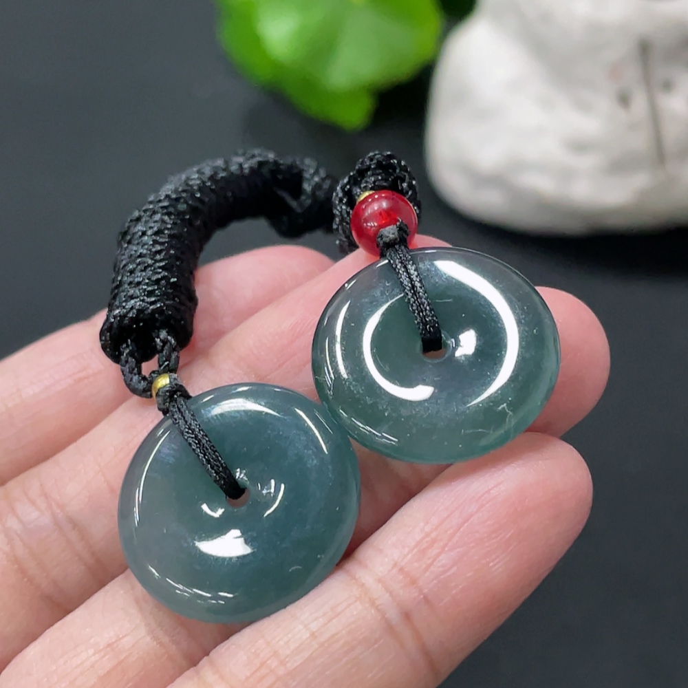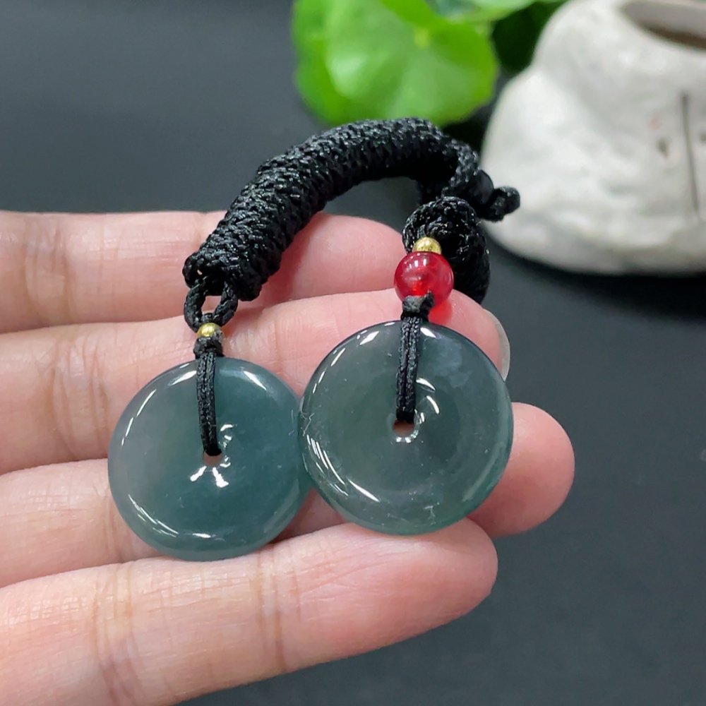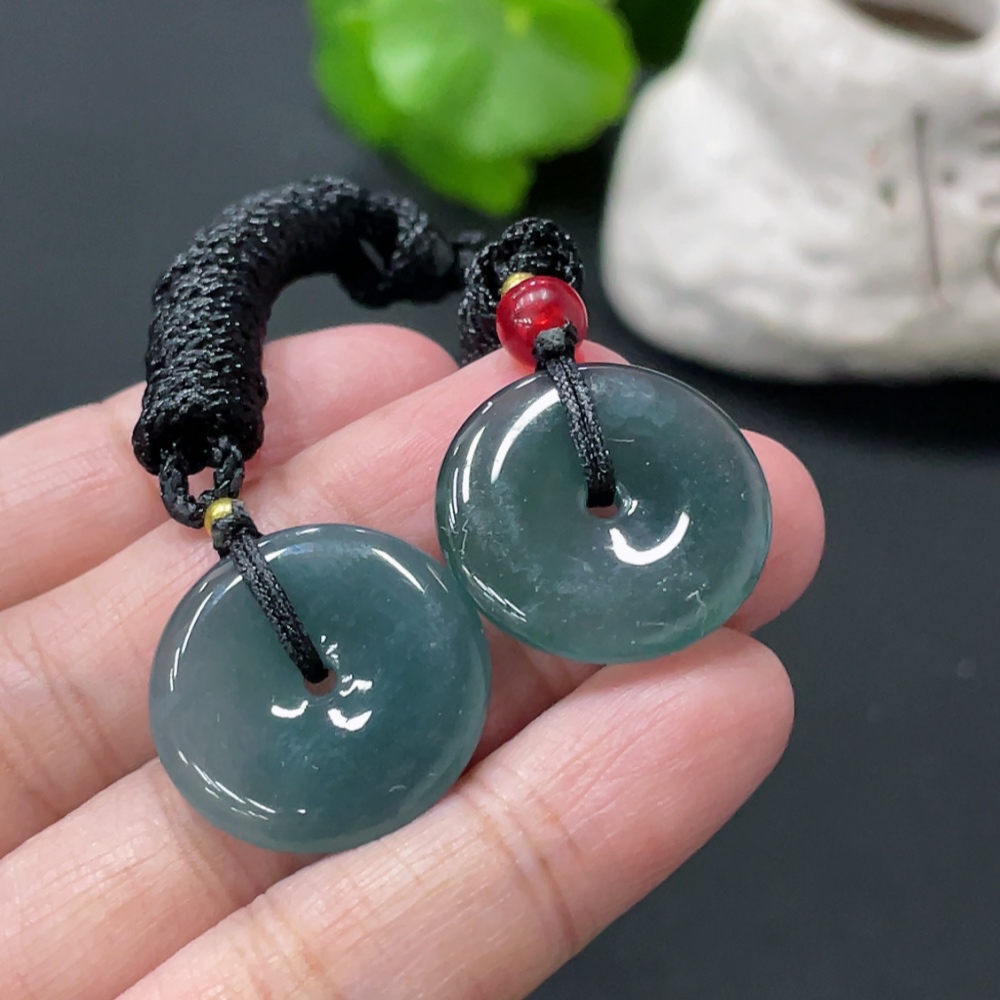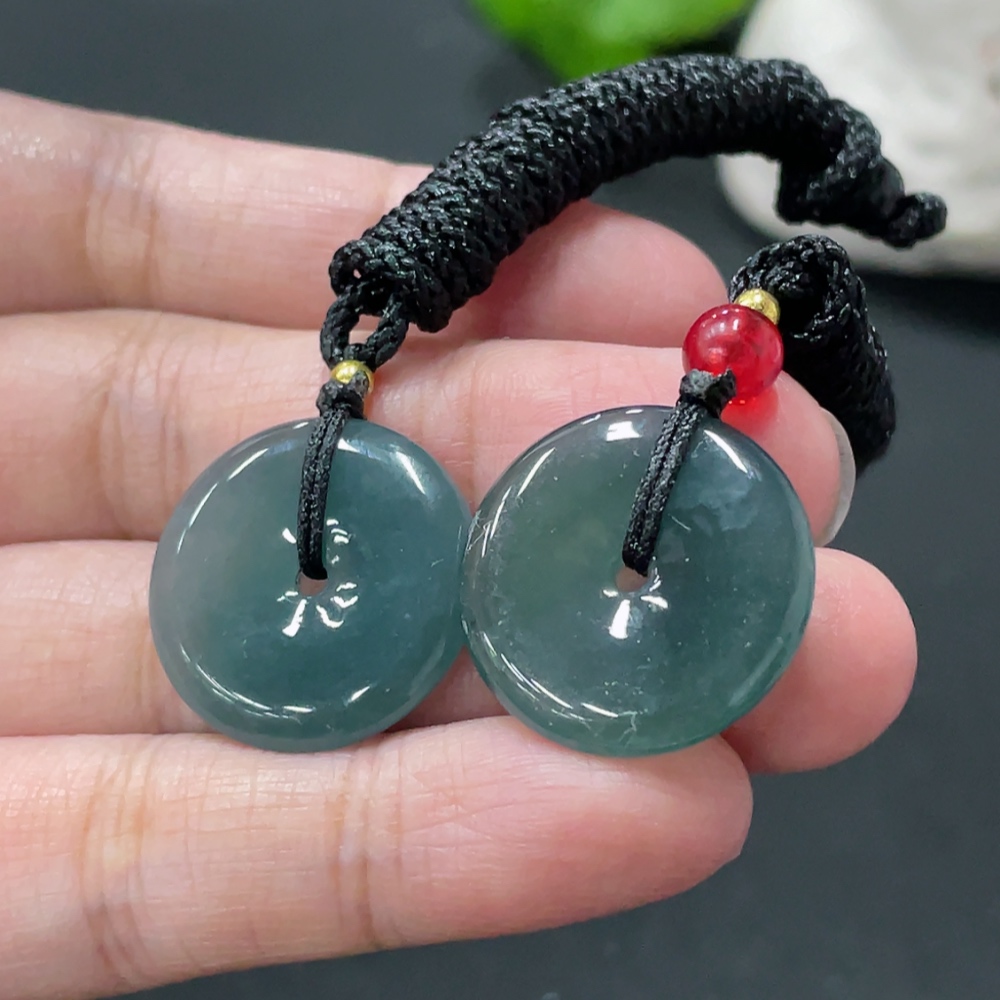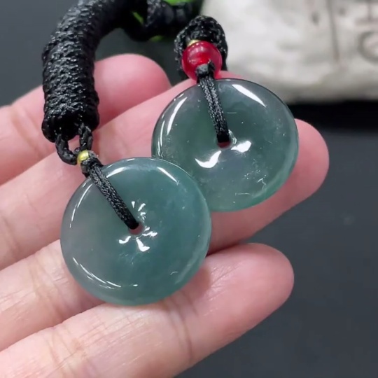 Jadeite Peace Button Pendant with Non-Grade A Beads