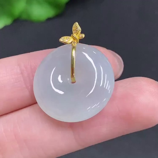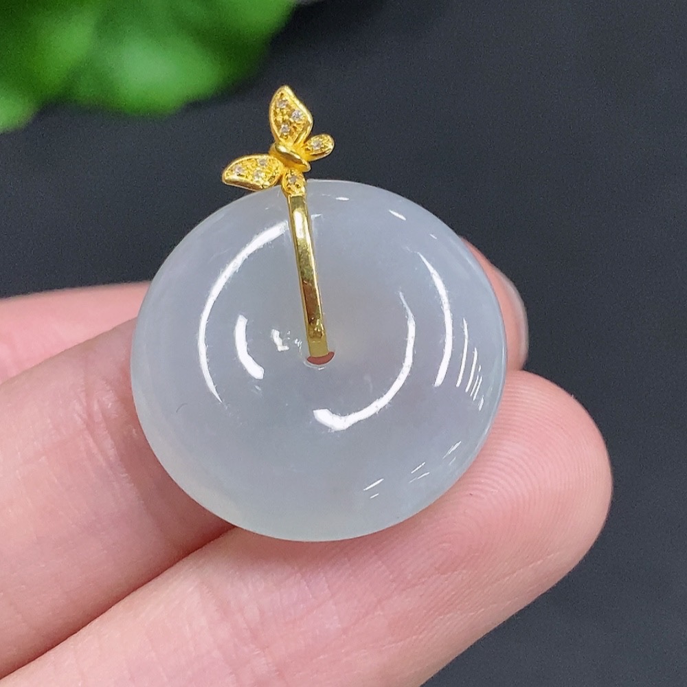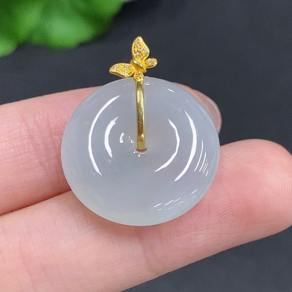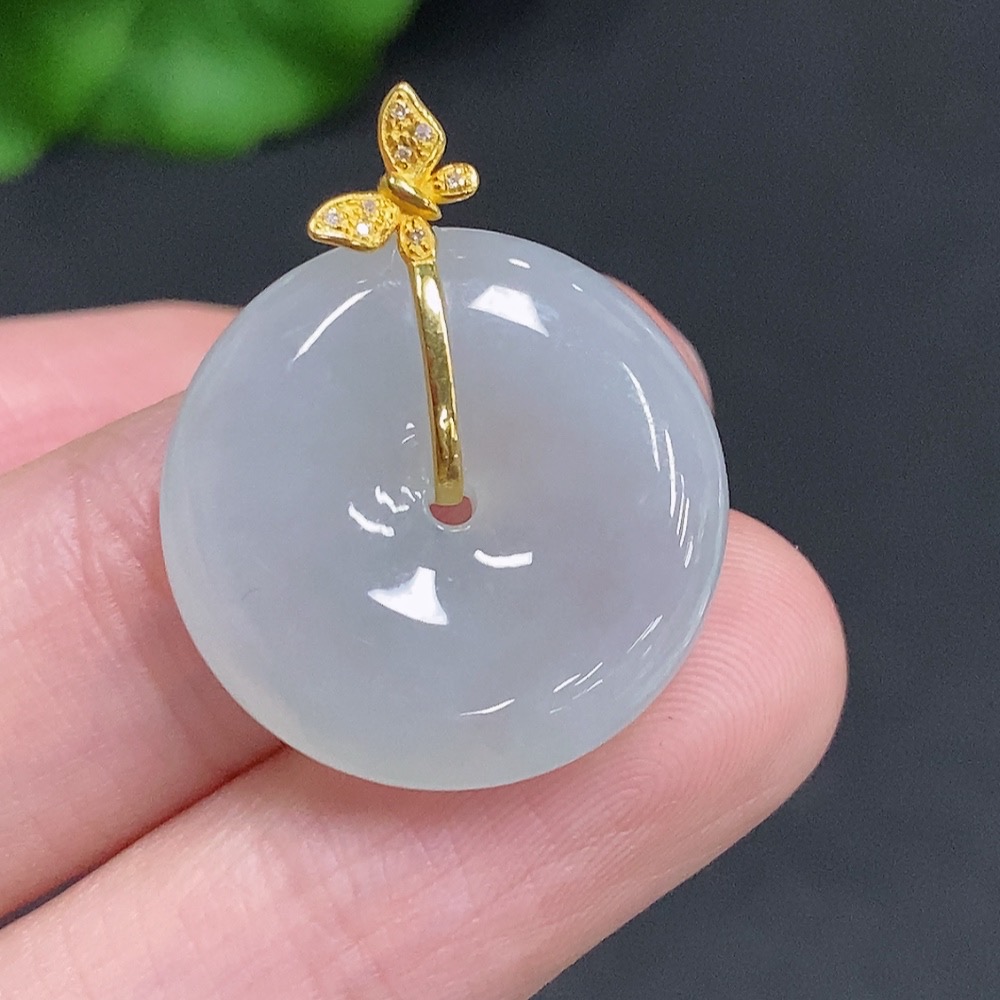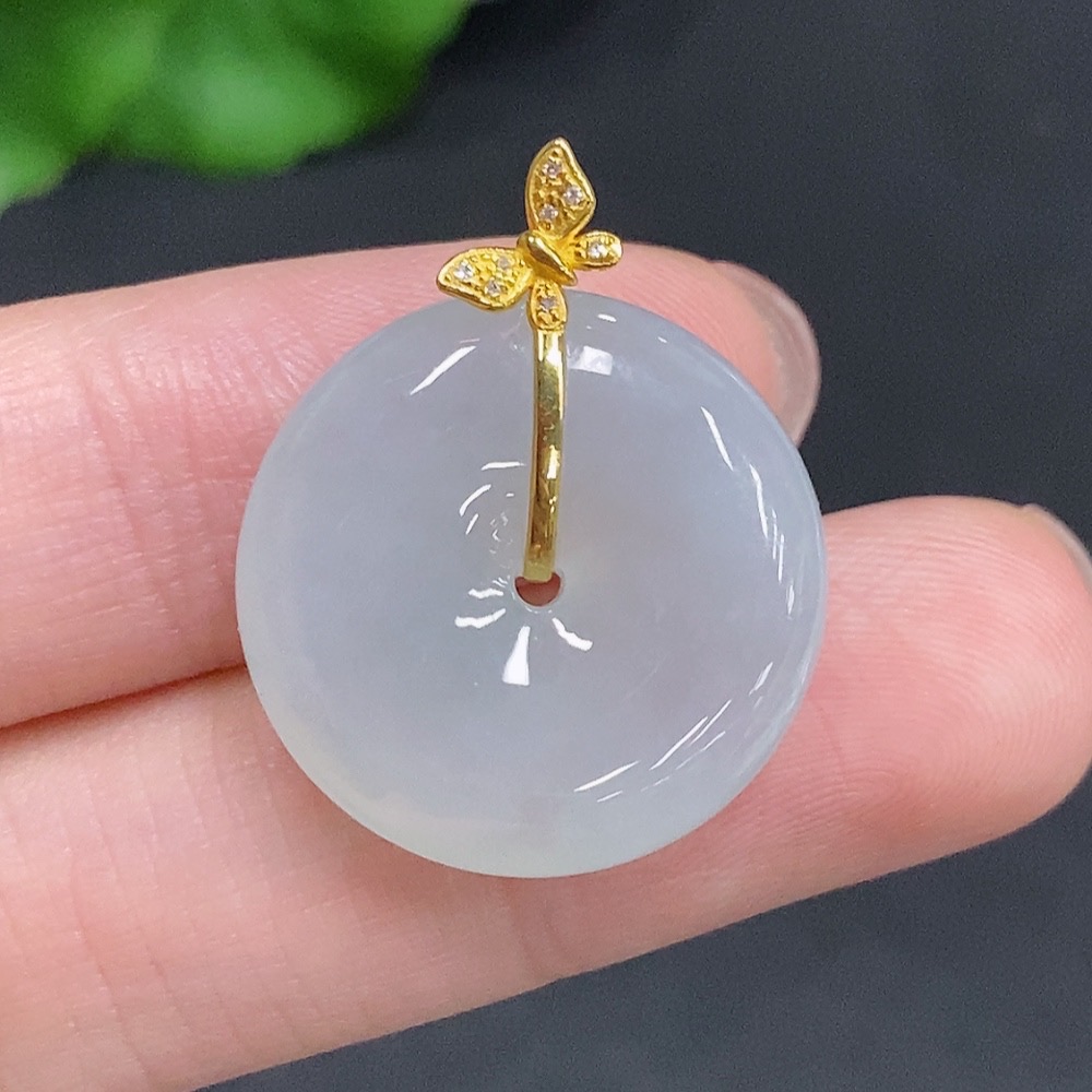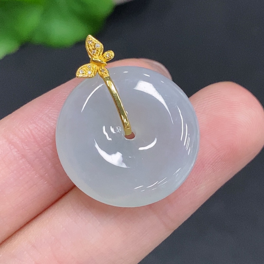 Jadeite Safety Buckle with 18K Gold Clasp, Total Weight Approximately 5.3g, Set with Diamonds