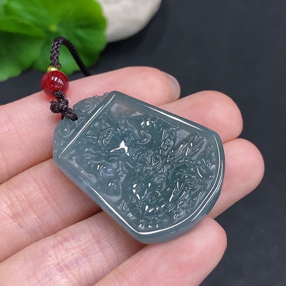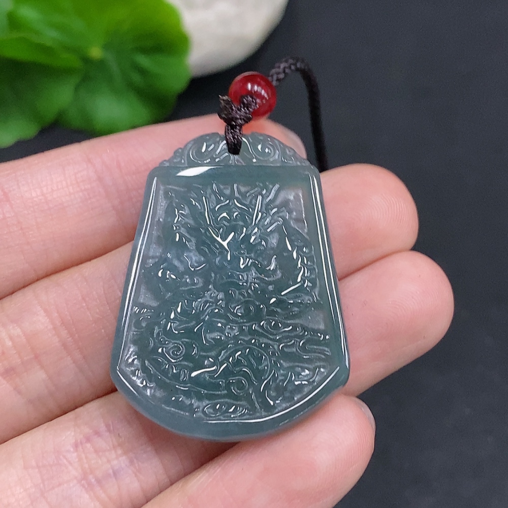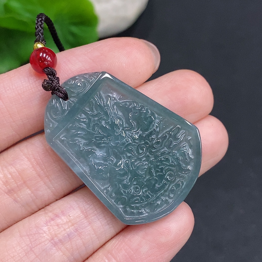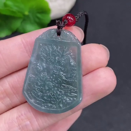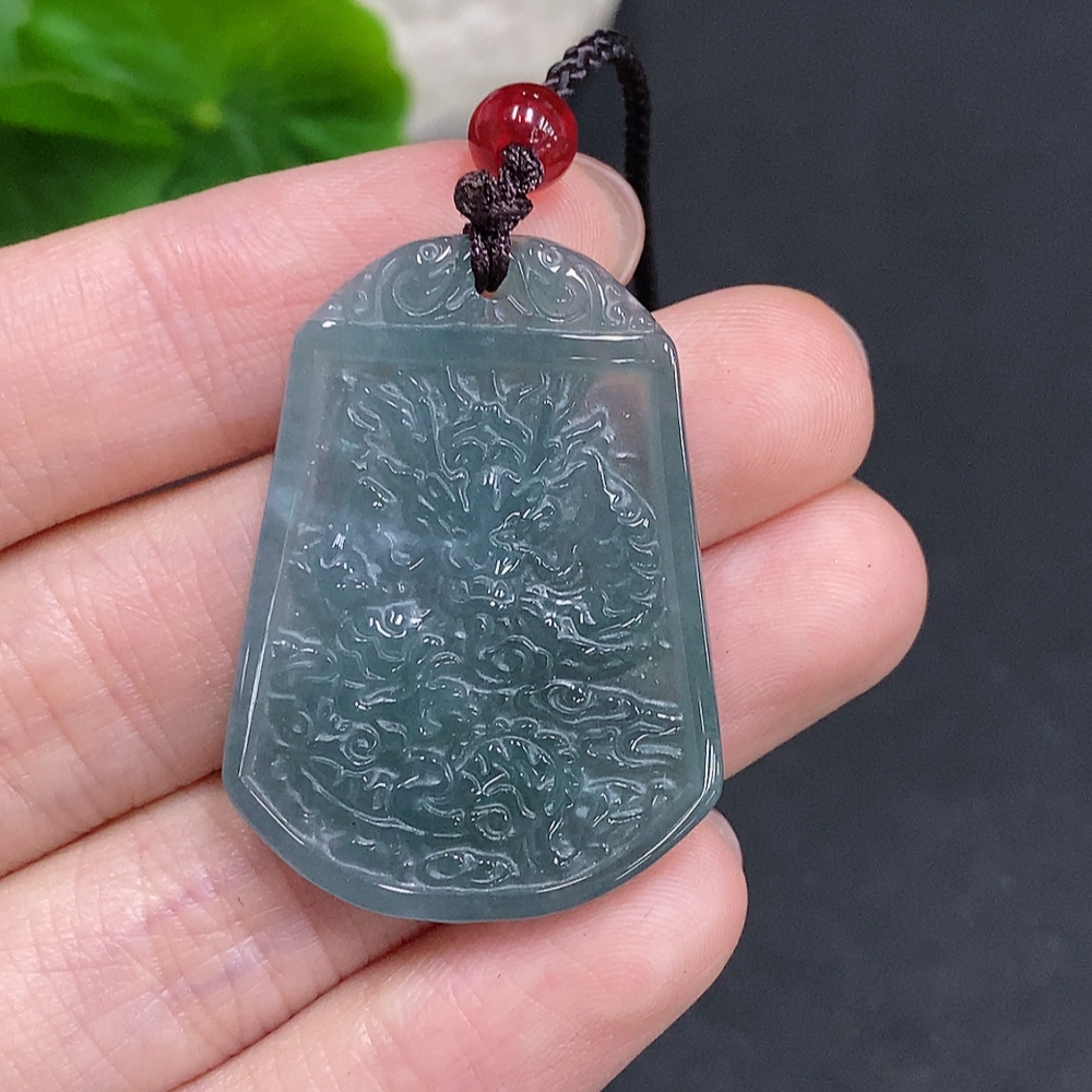 Jadeite Dragon Pendant, total weight including rope approx. 9.3g