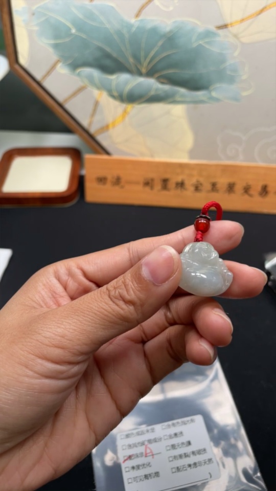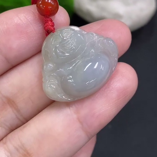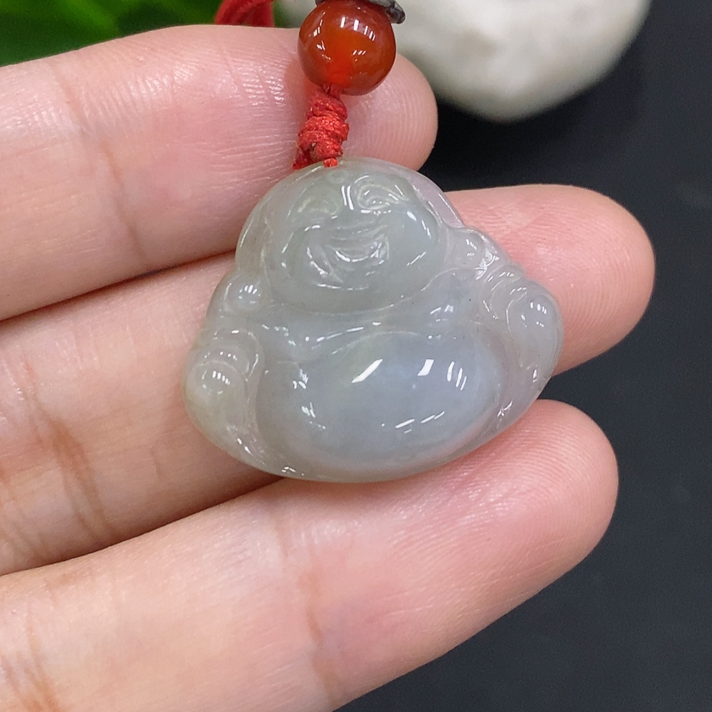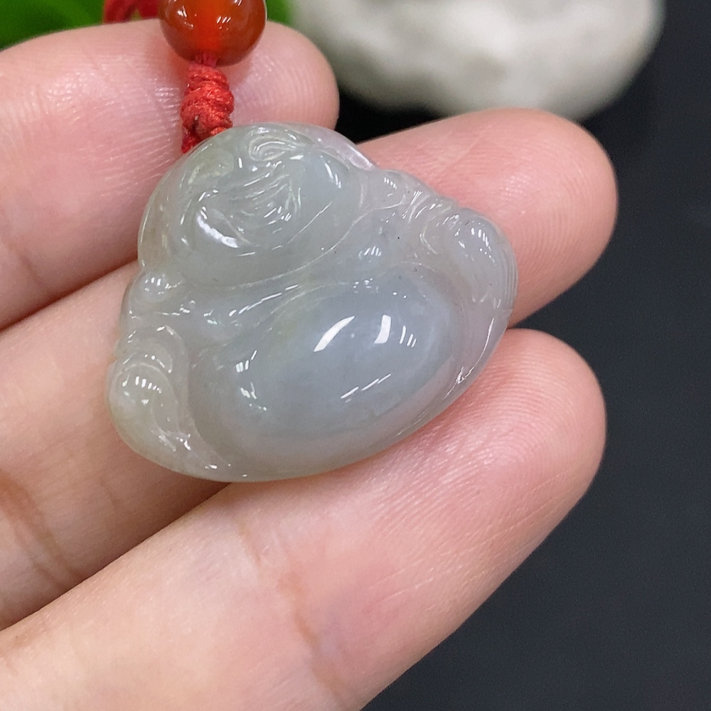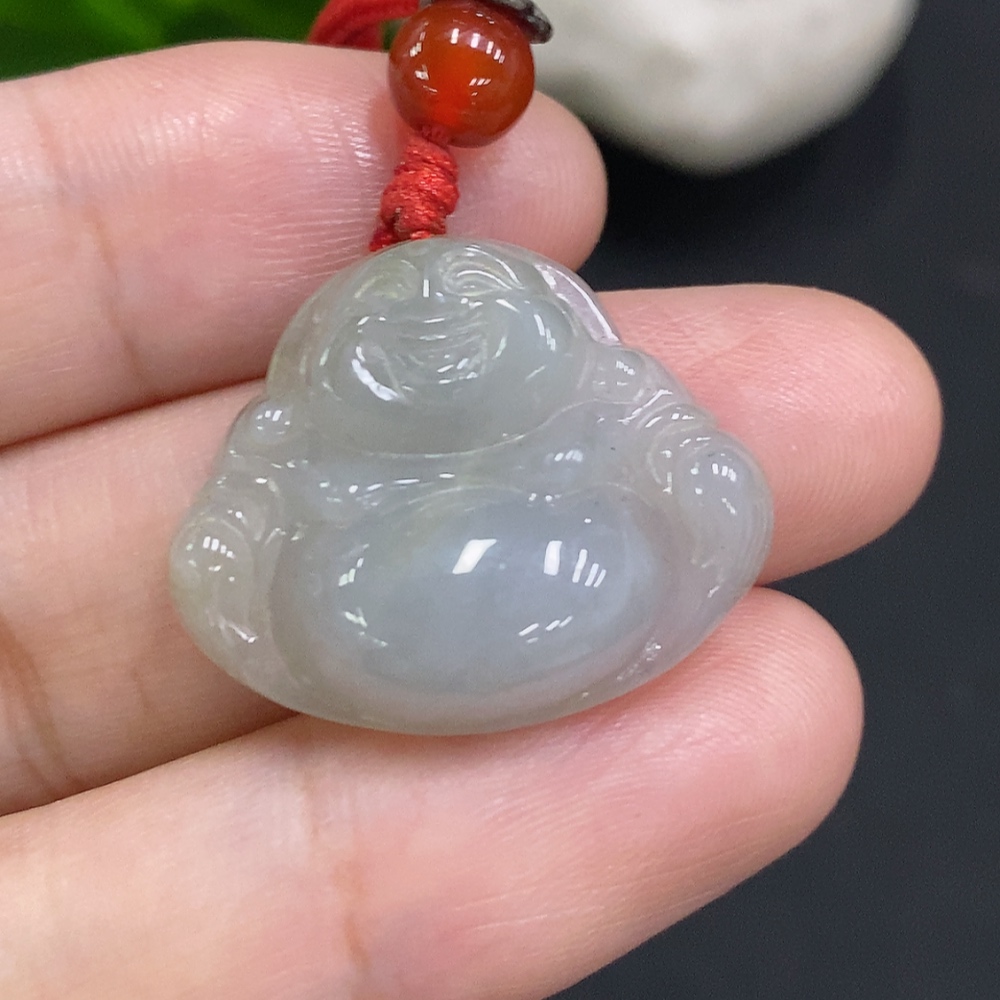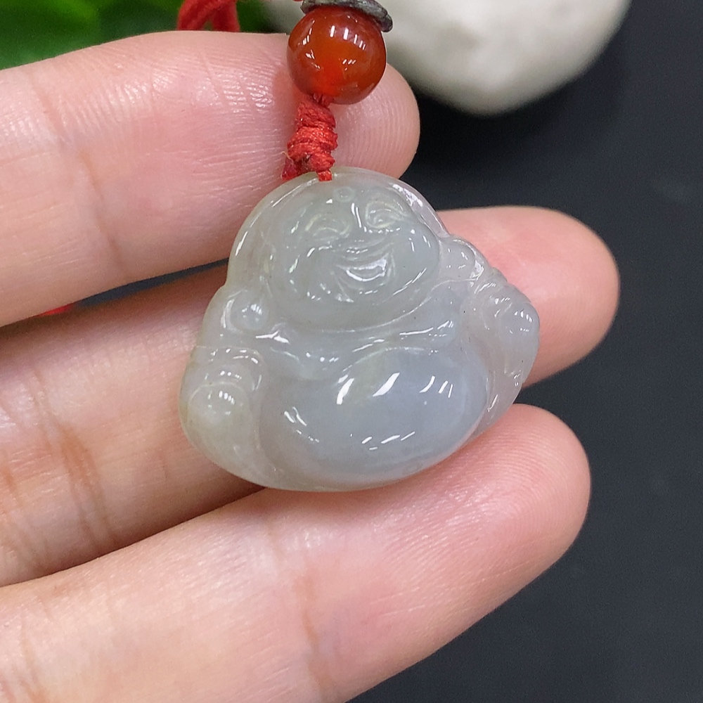 Jadeite Buddha pendant with a total weight of approximately 7.4g including the cord (accompanying beads are non-A)