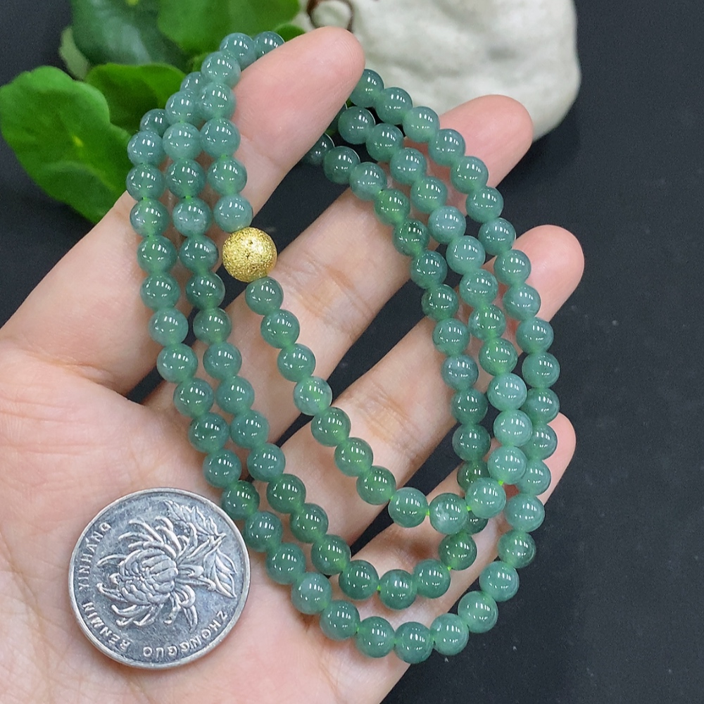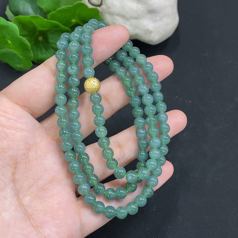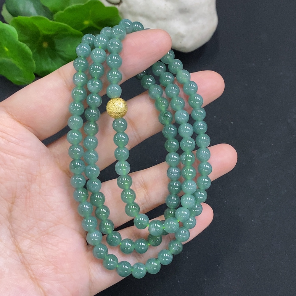 Jadeite Bead Necklace Approx. 5.7mm Non-Gold Total Weight Approx. 36.2g