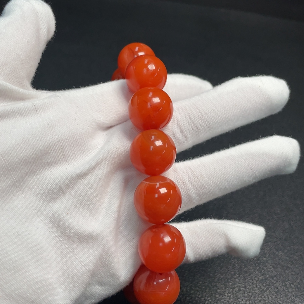 Red Agate Bracelet with Visible Organic Matter, Total Weight Approximately 84.97g, Size About 16.2mm