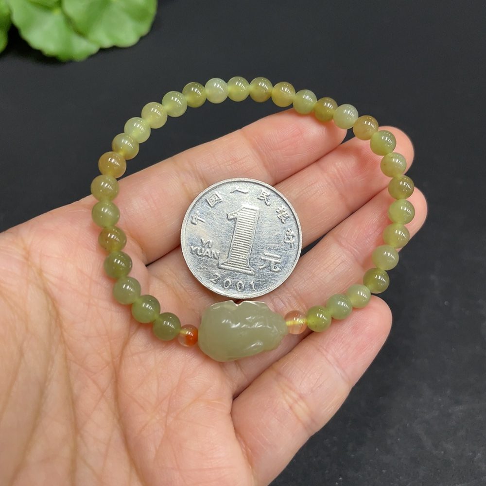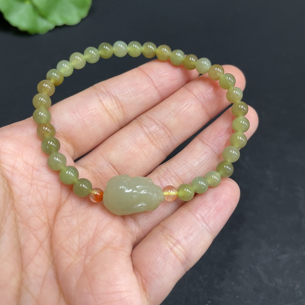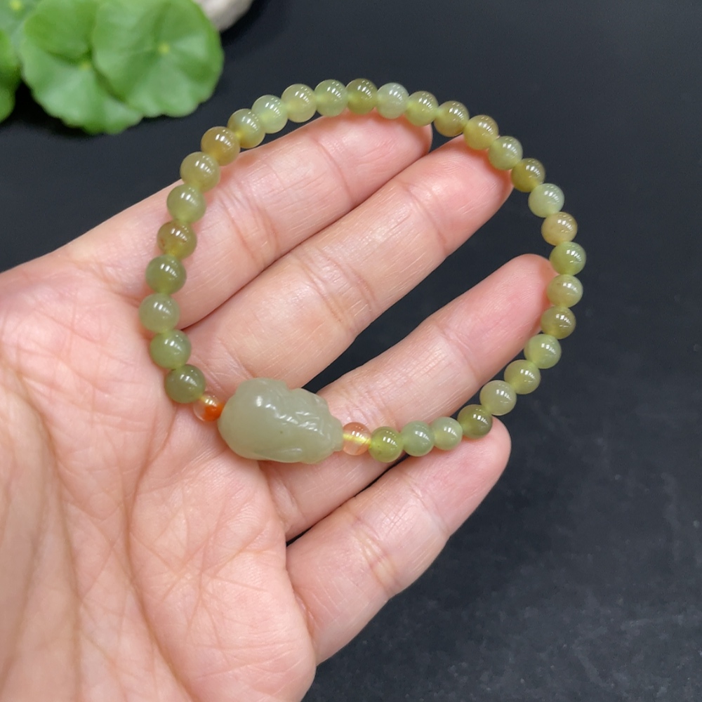 Hetian Jade Bracelet, approx. 4.8mm, total weight approx. 9g, non-Hetian Jade beads
