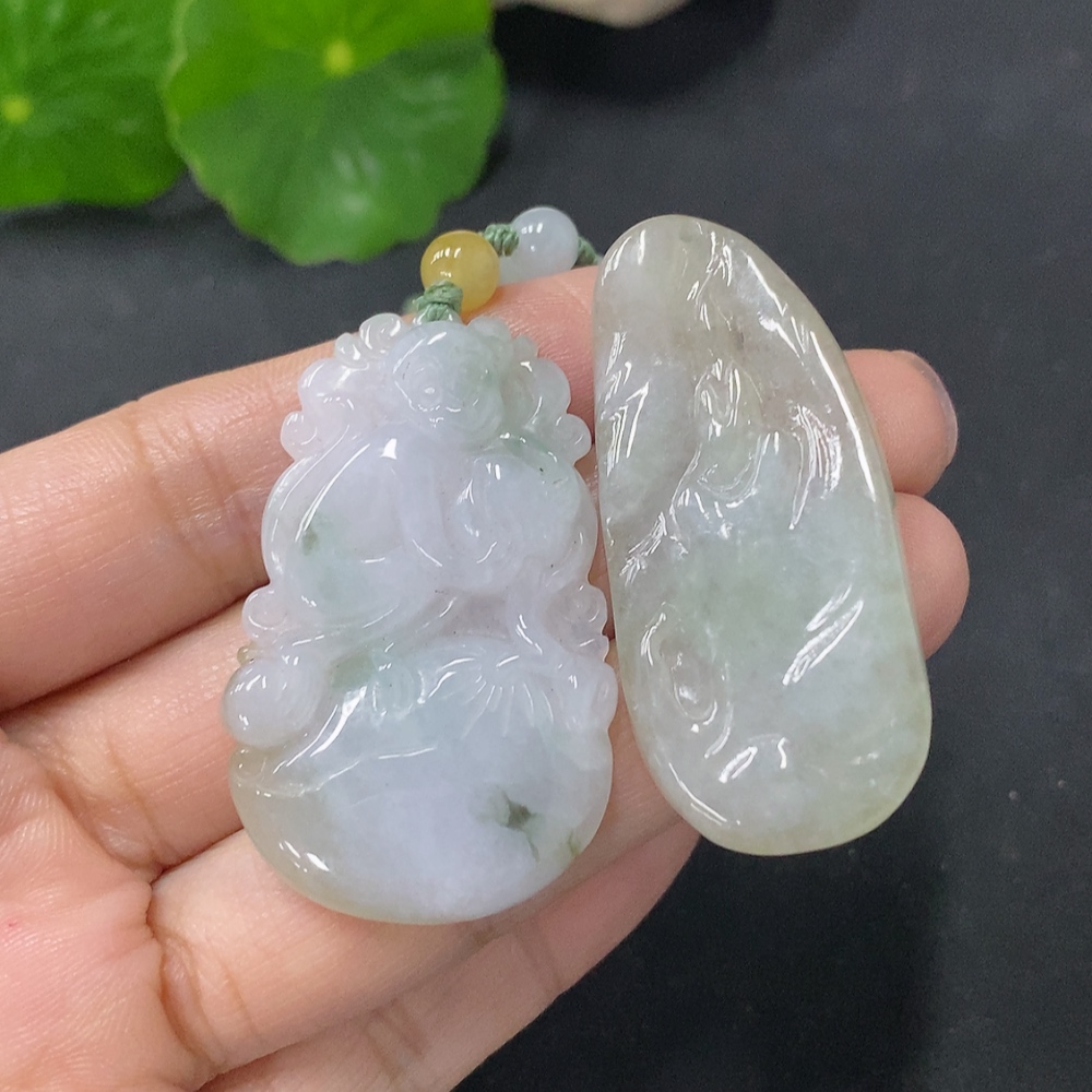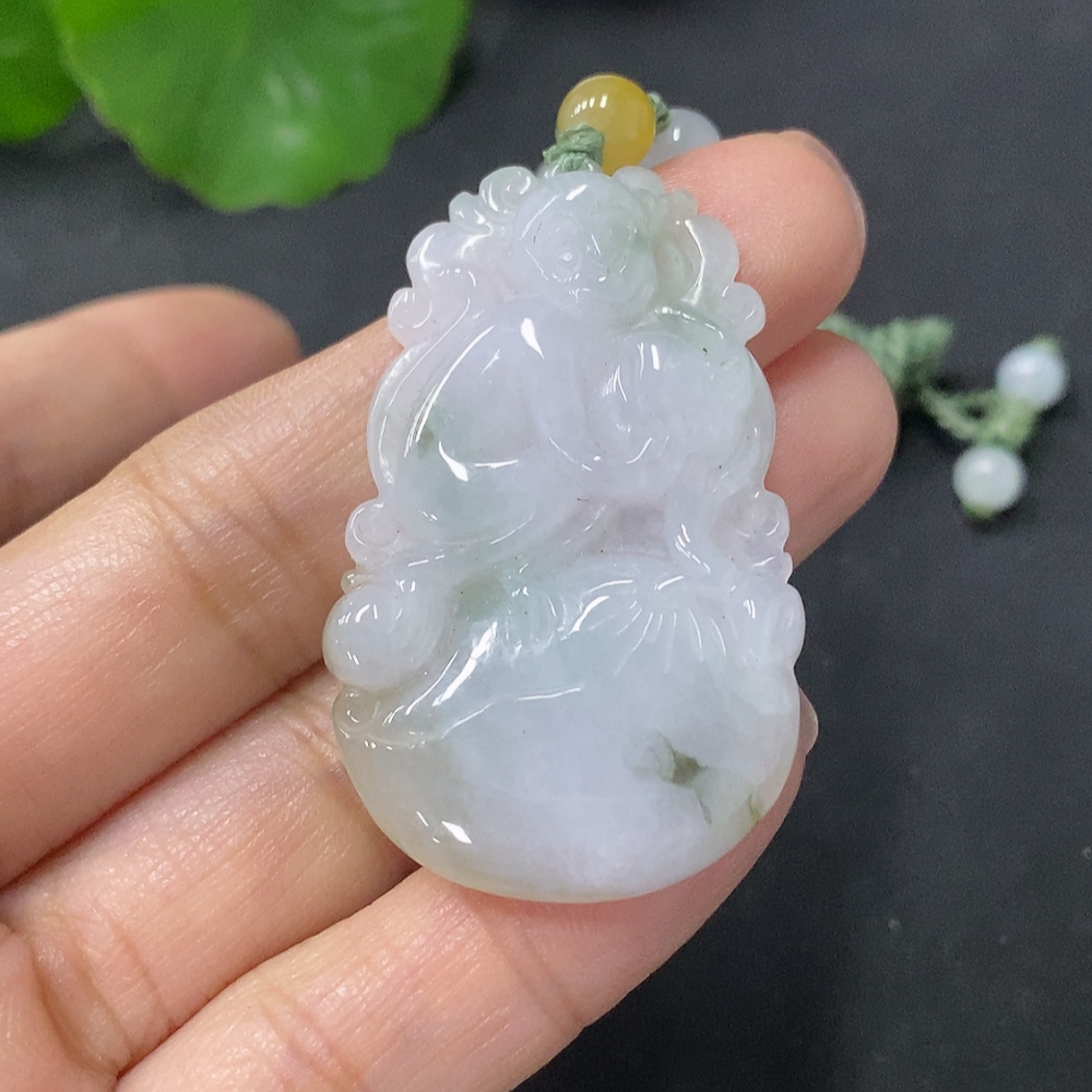 Jadeite Pendant - Auspicious Monkey Presenting Longevity and Formless Guanyin