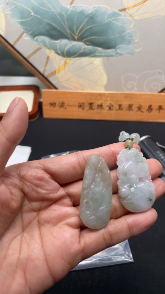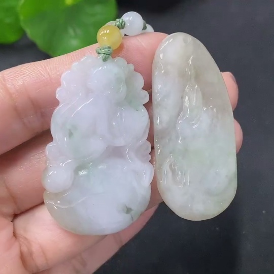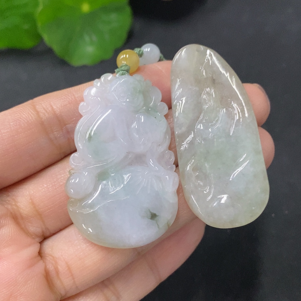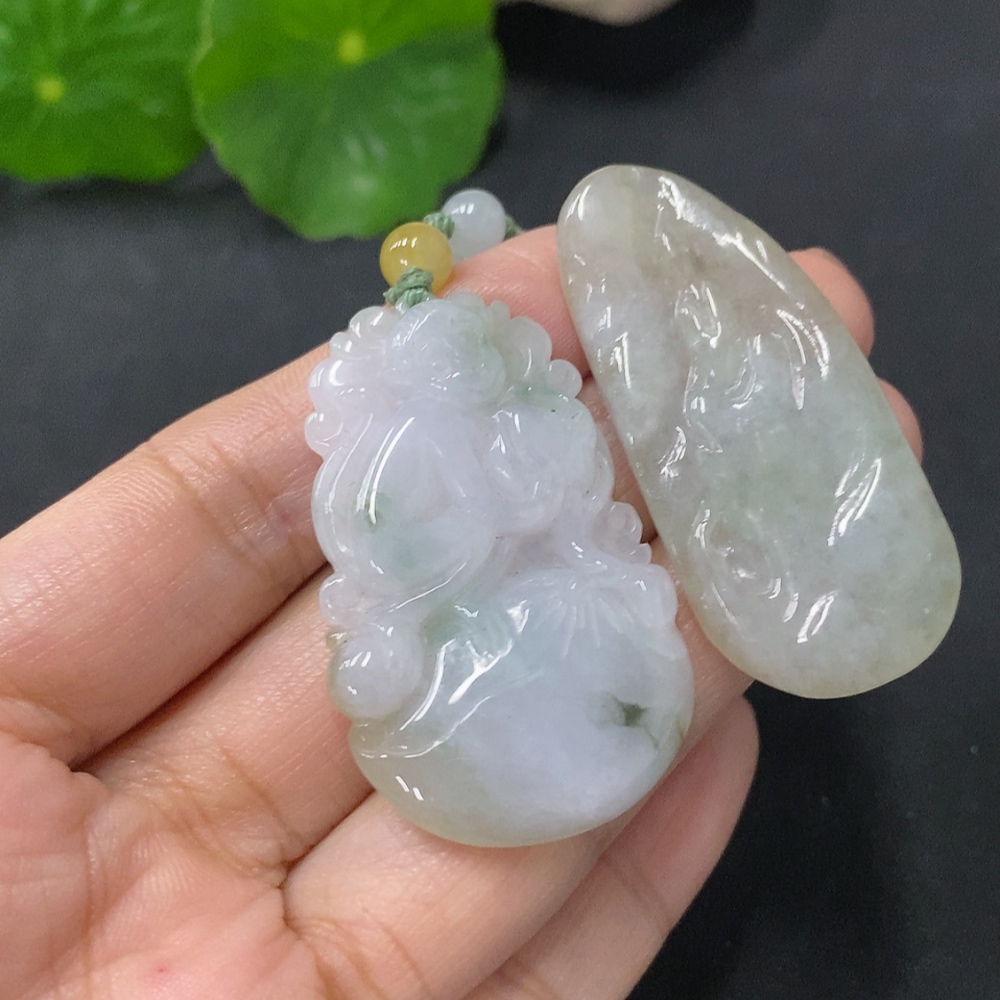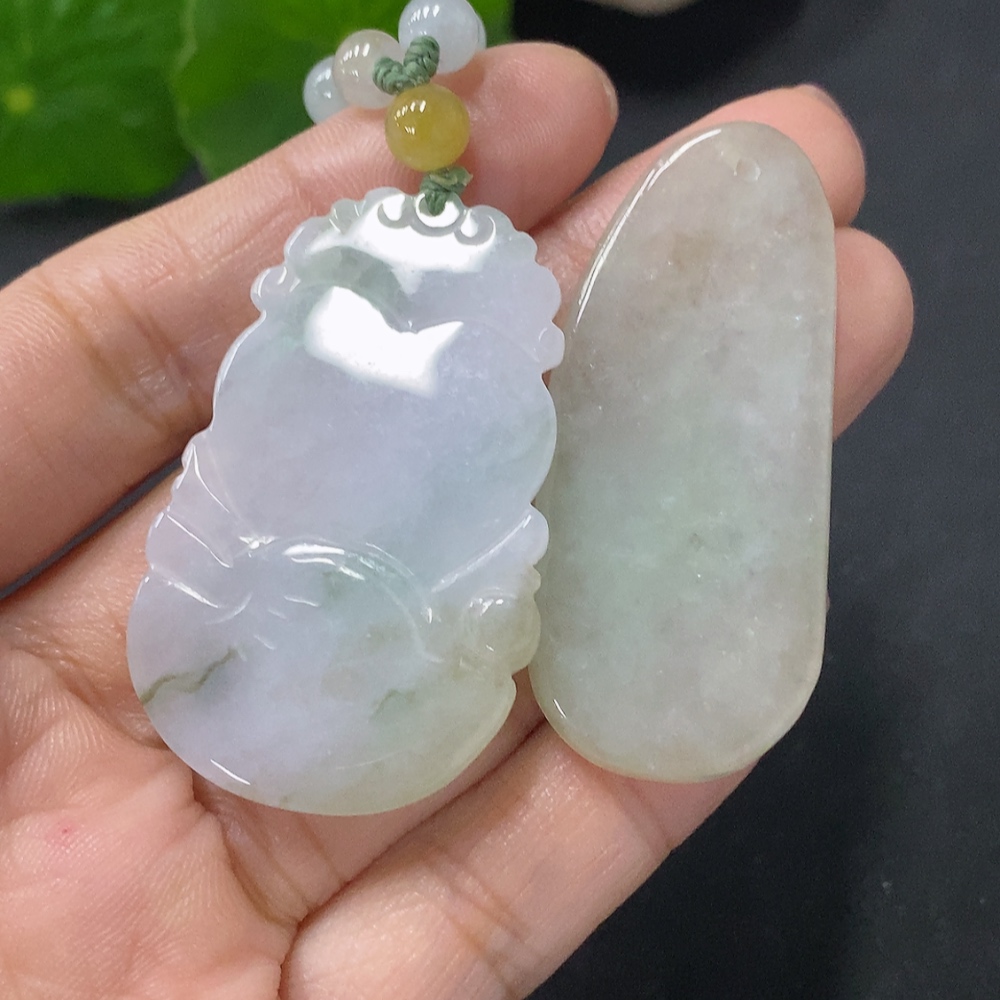 Jadeite Pendant - Auspicious Monkey Presenting Longevity and Formless Guanyin