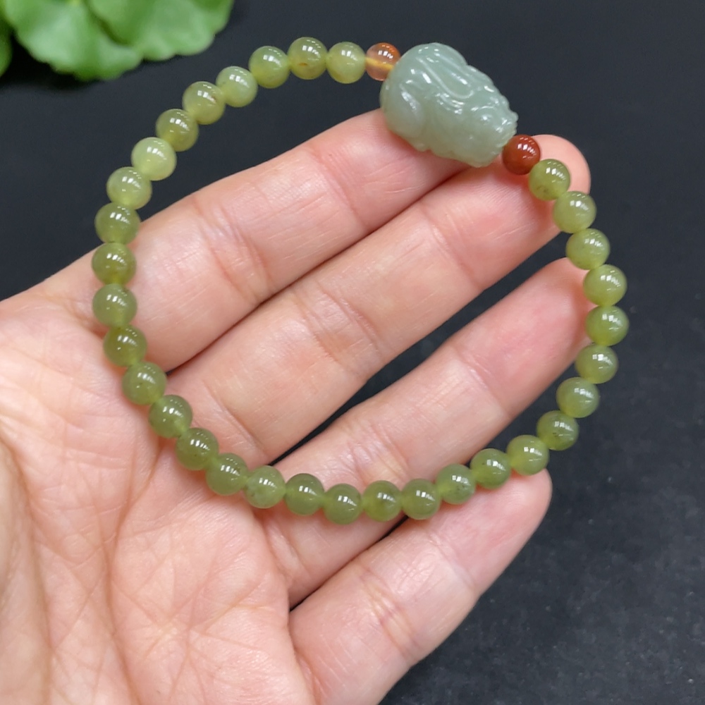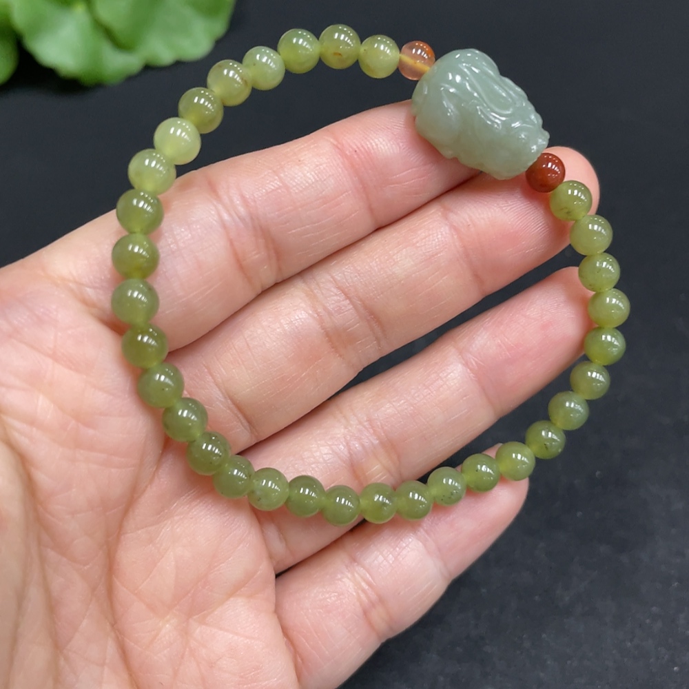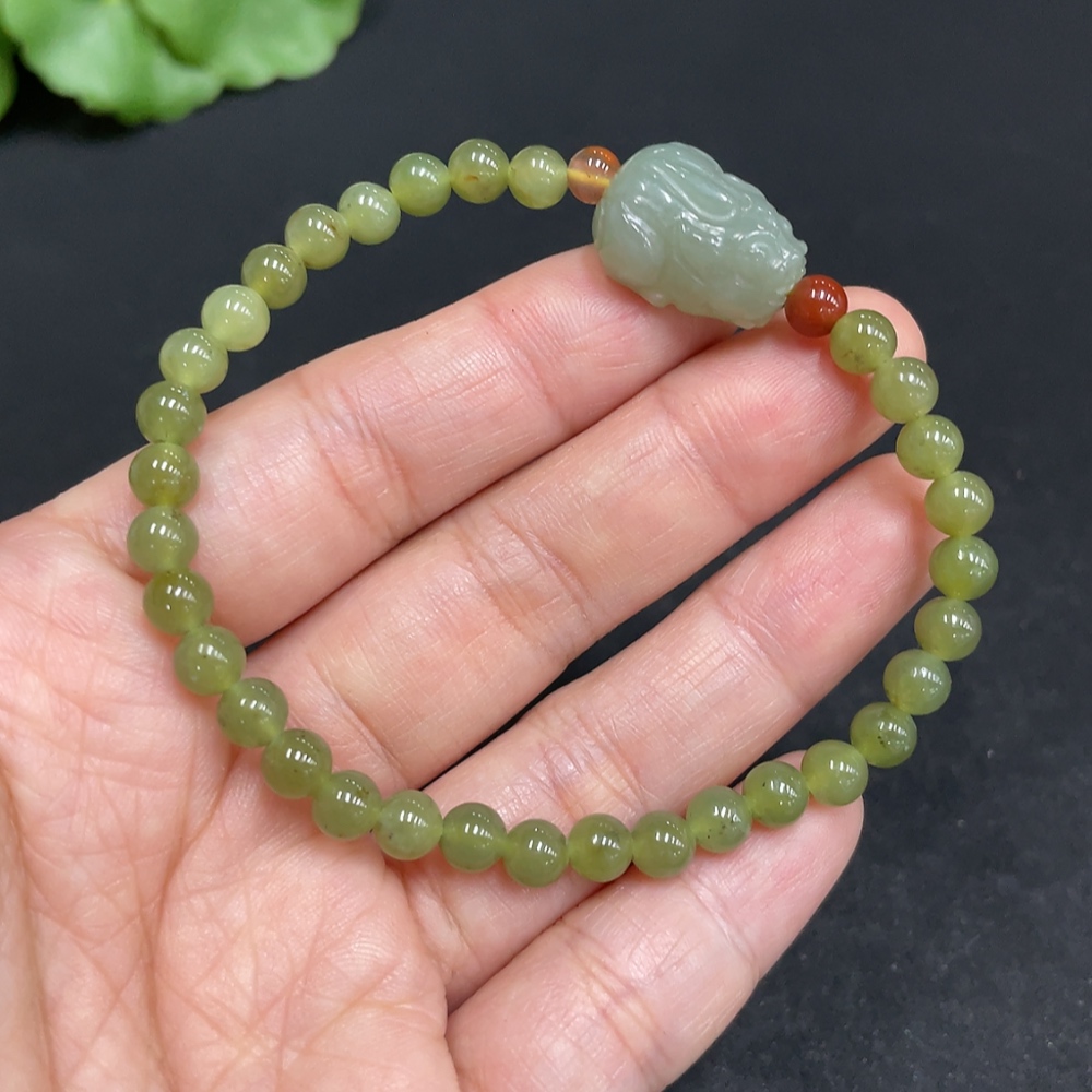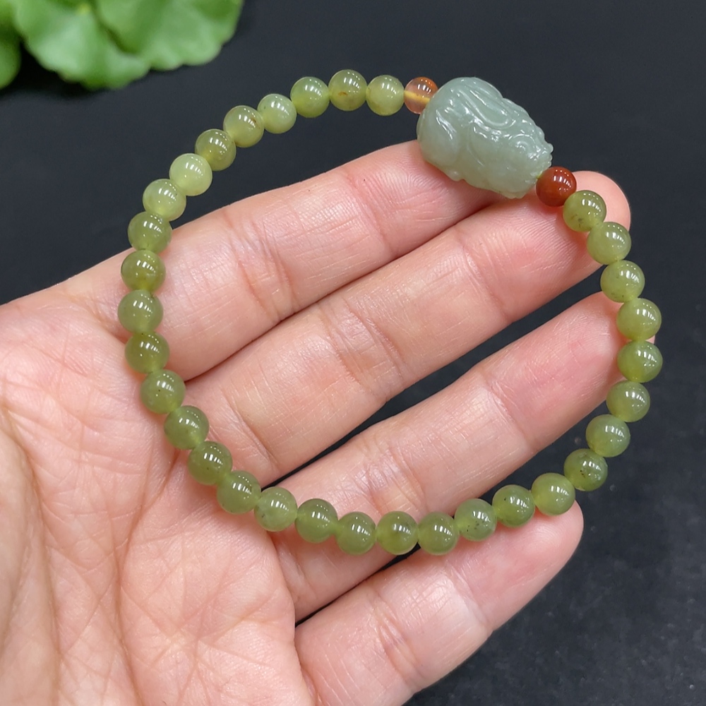 Hetian Jade Bracelet, approx. 5mm beads, total weight approx. 9.7g, non-Hetian Jade accessory beads
