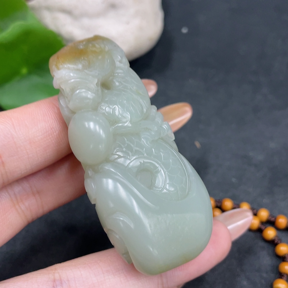 Trezaar - Hetian Jade Seed Material Pendant Dragon