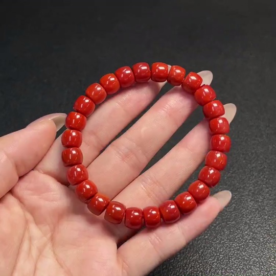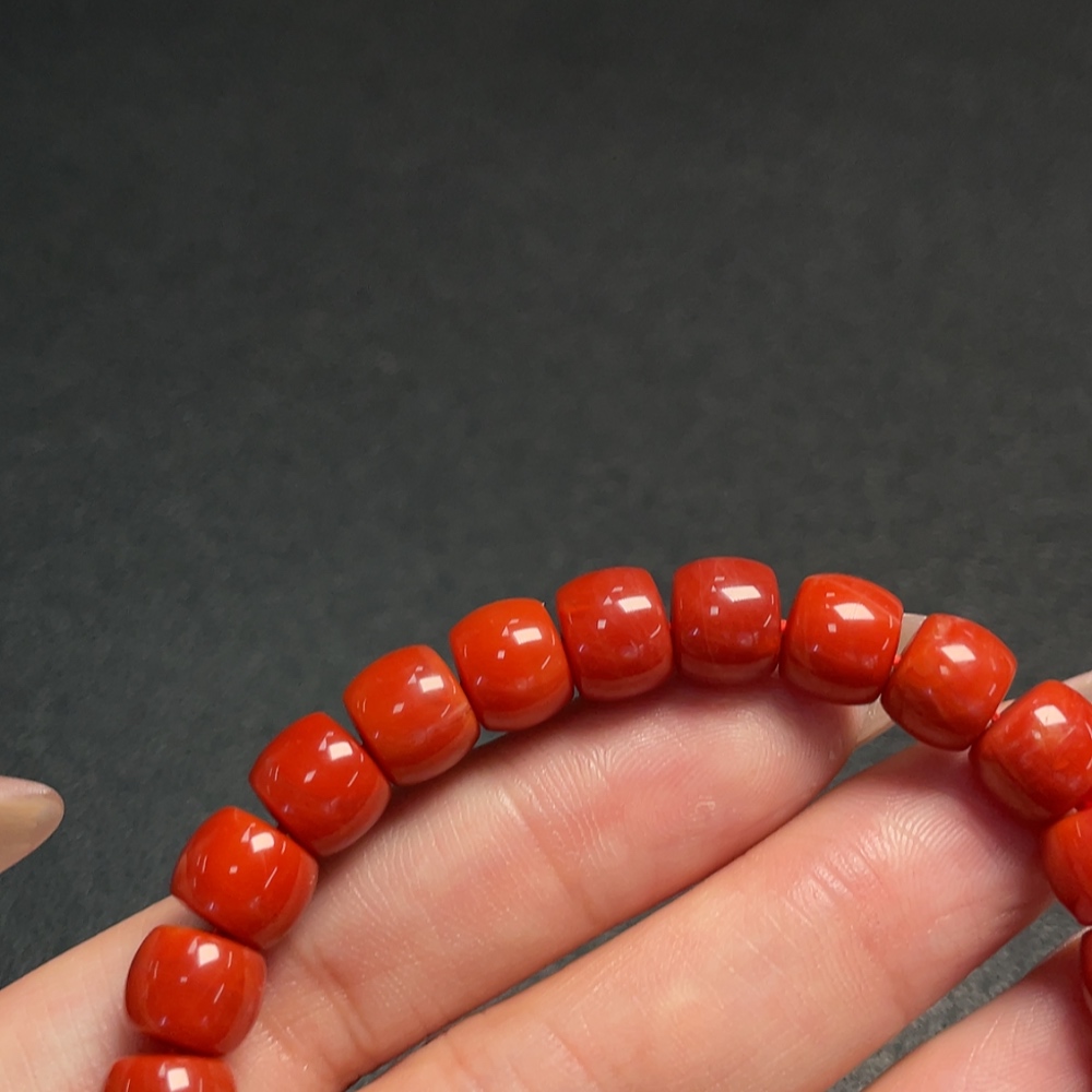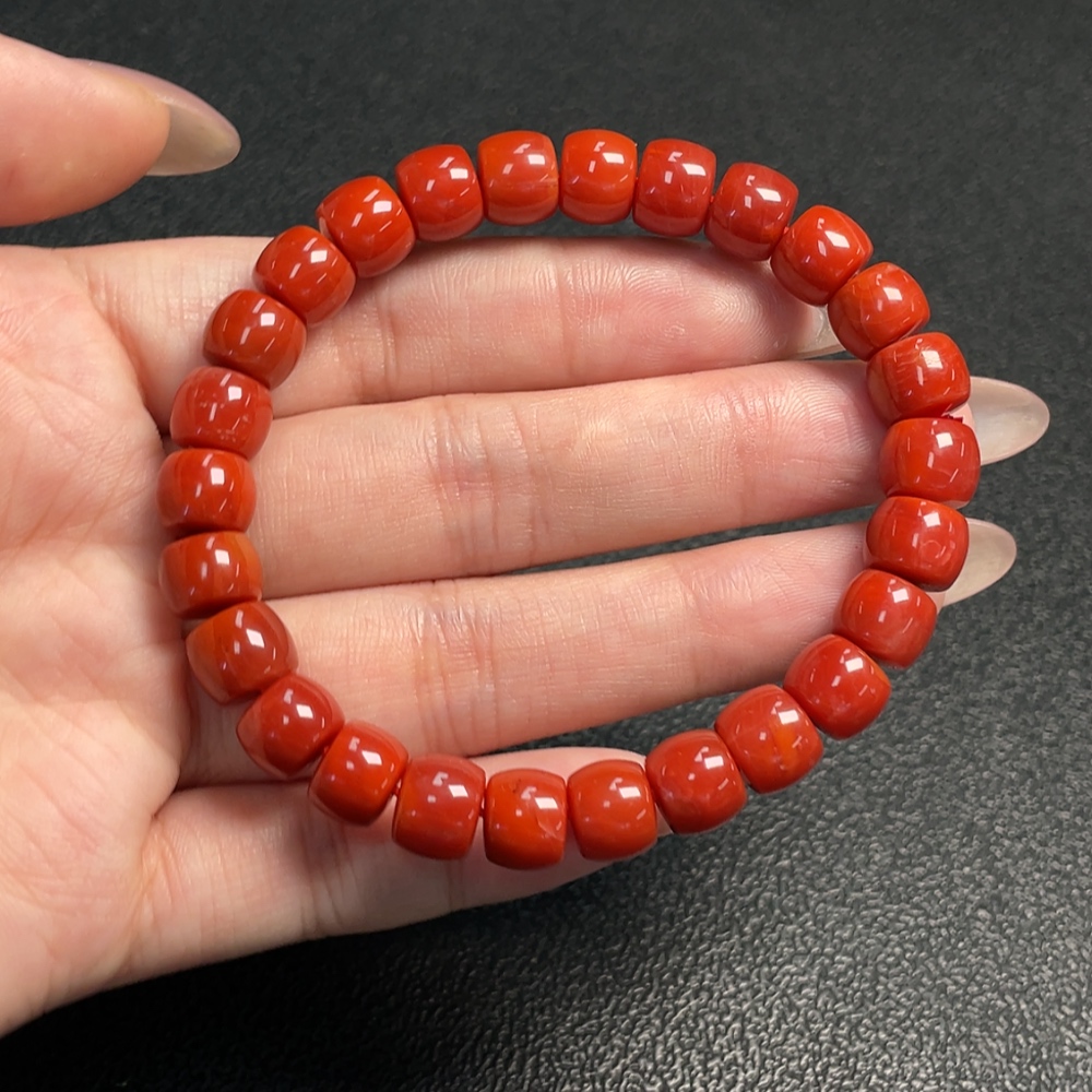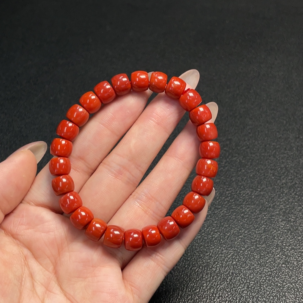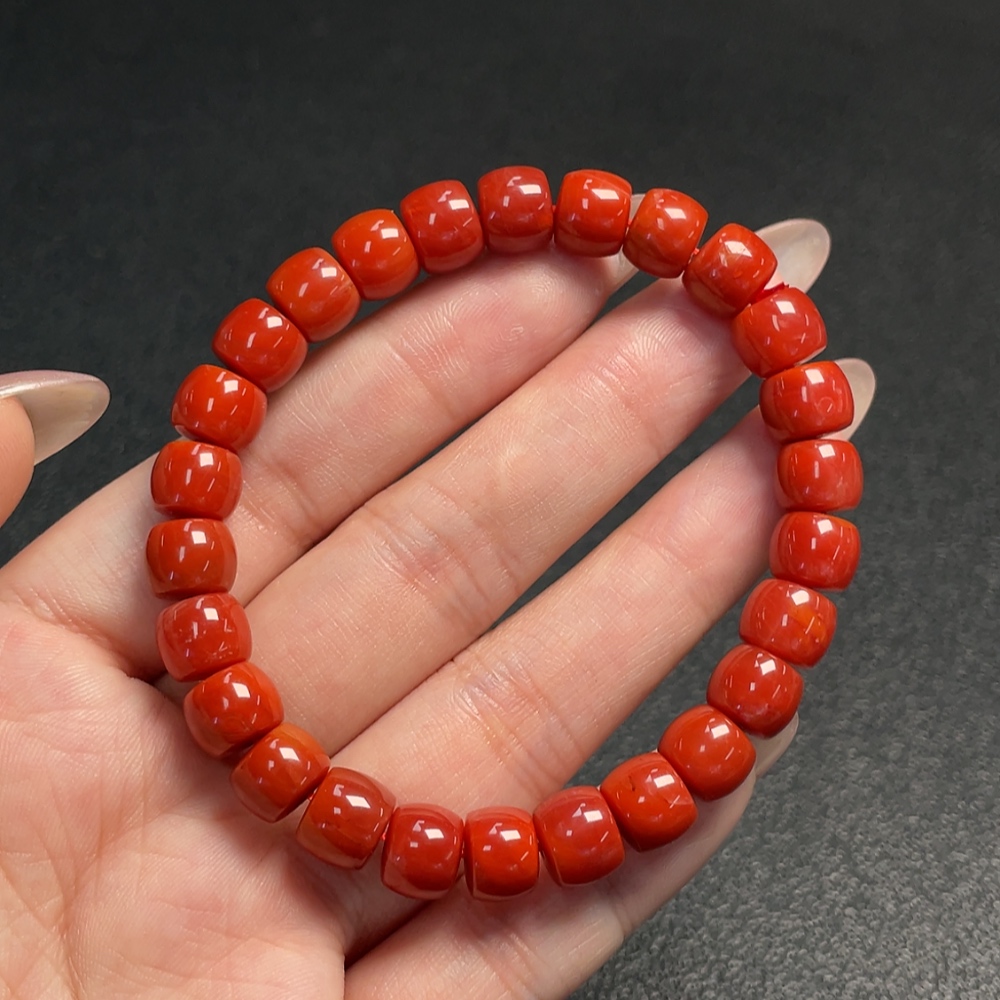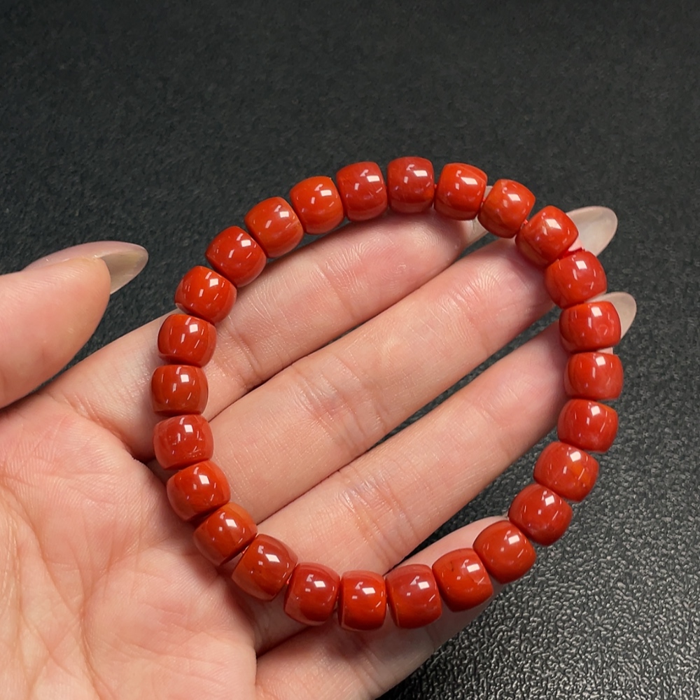 Red Agate Bracelet with Visible Organic Matter, Total Weight Approximately 23.68g, Bead Size About 8.6mm