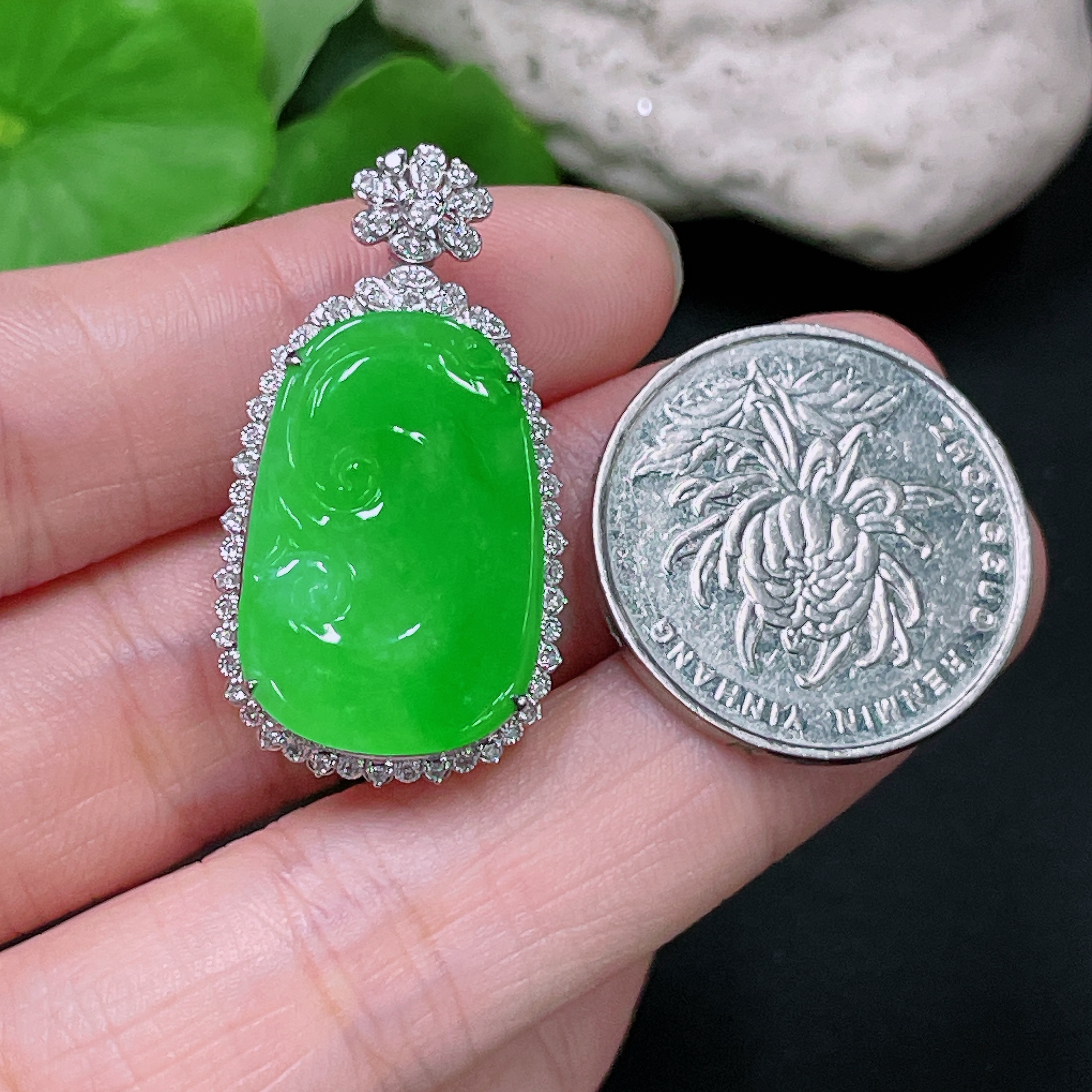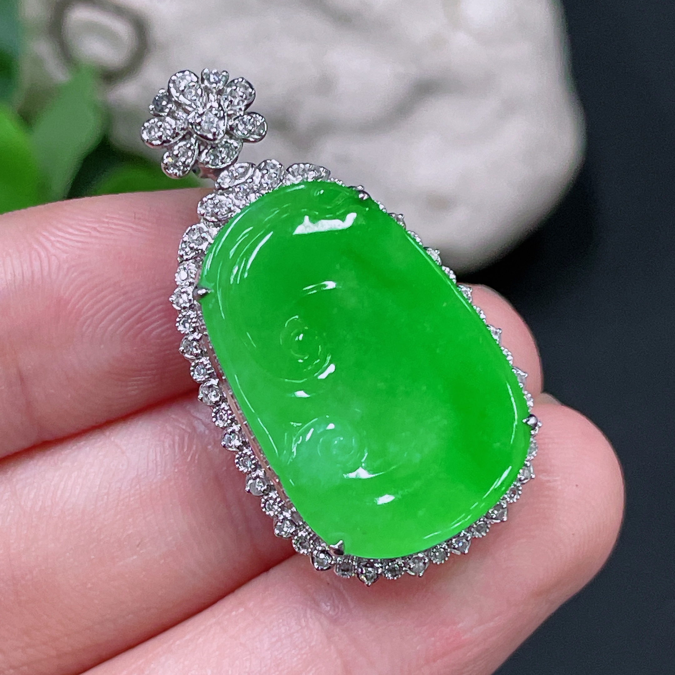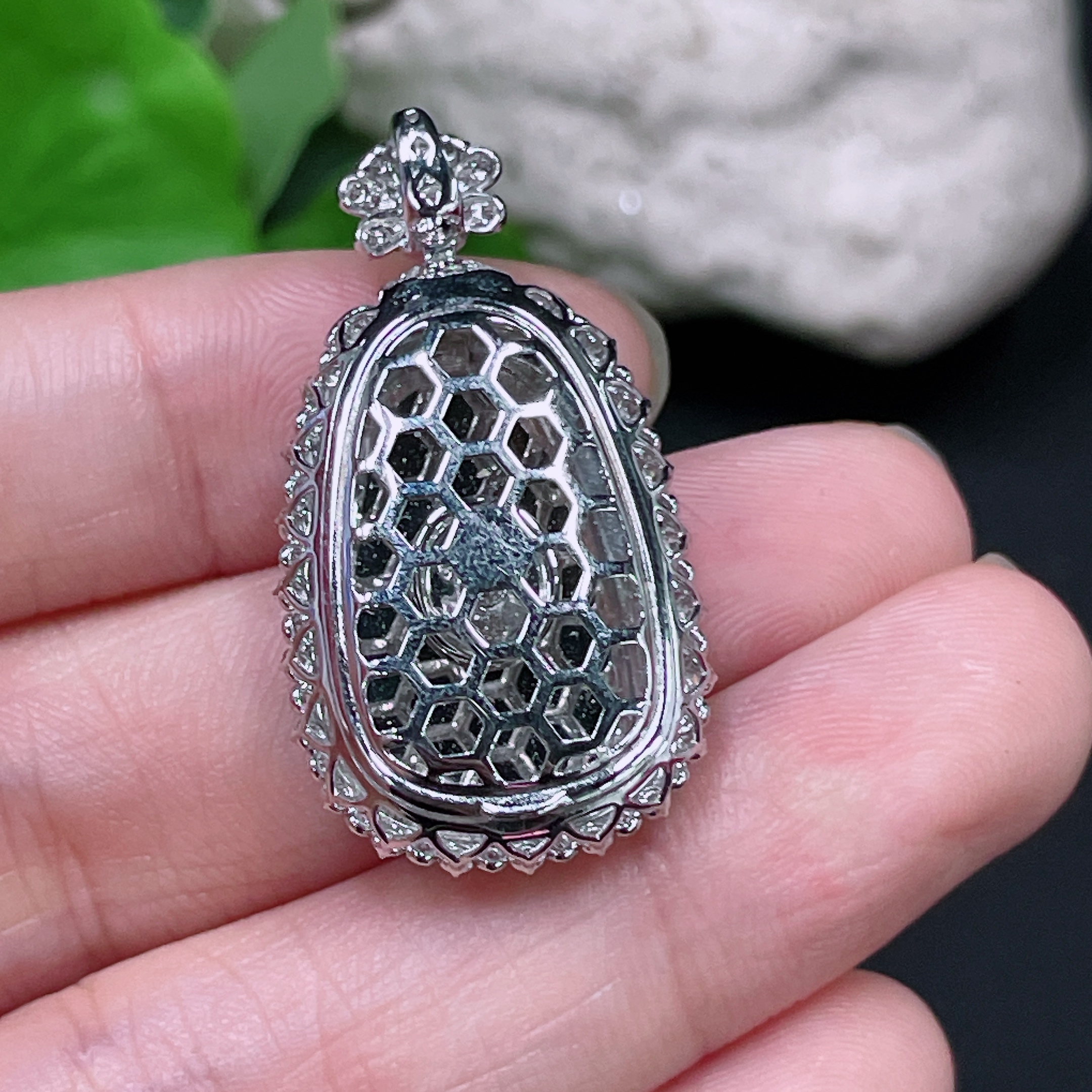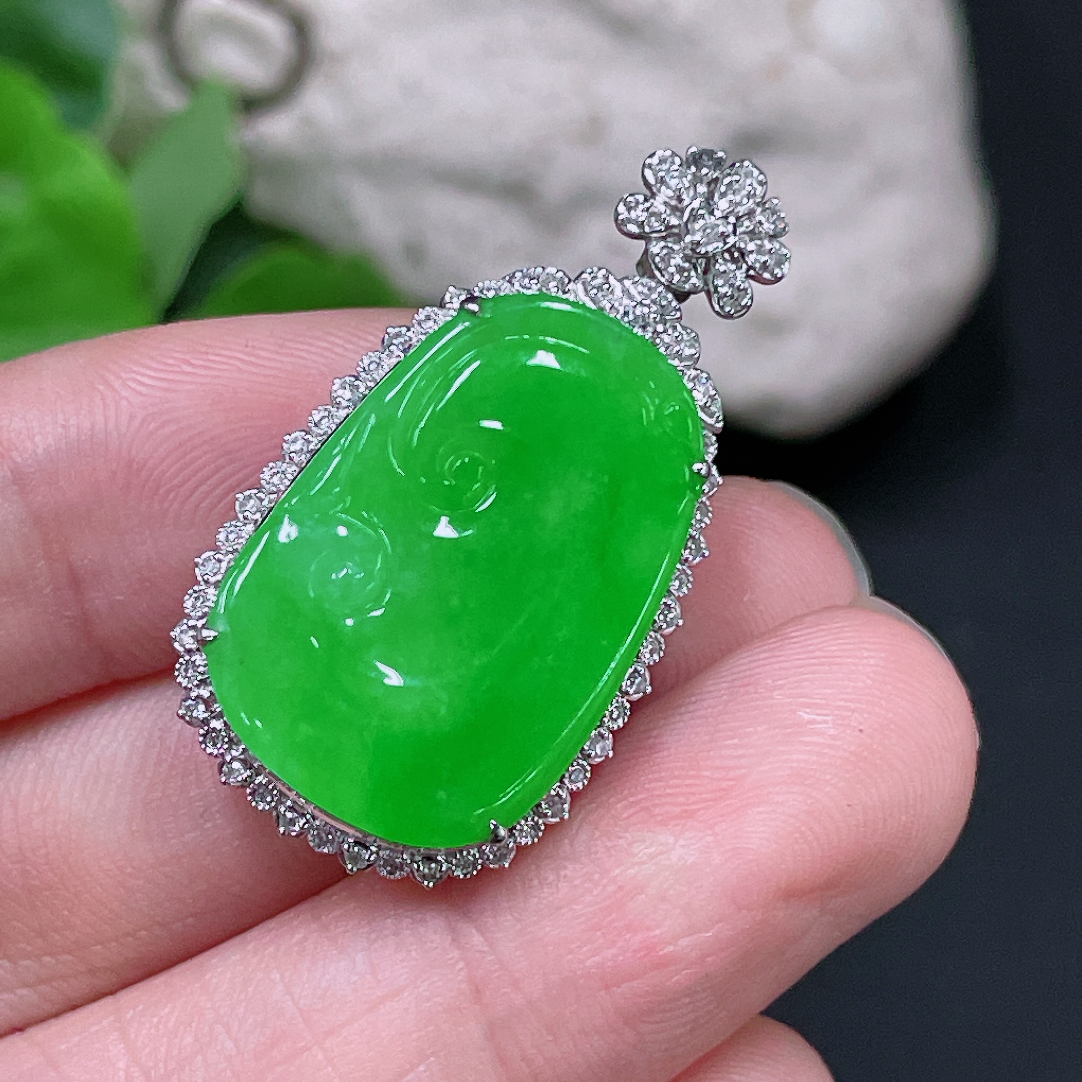 Jadeite Ruyi Inlaid Pendant, 18K Gold with Diamond Accents, Total Weight Approx. 5.95g