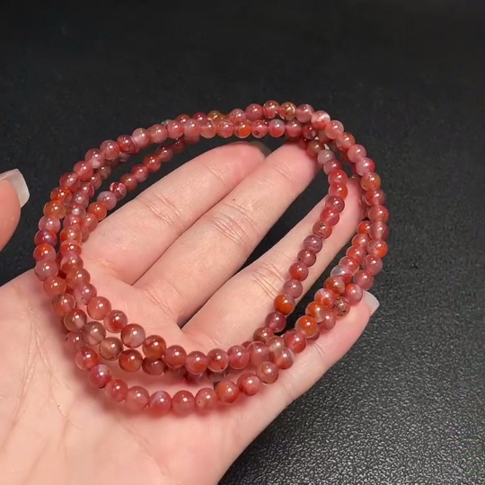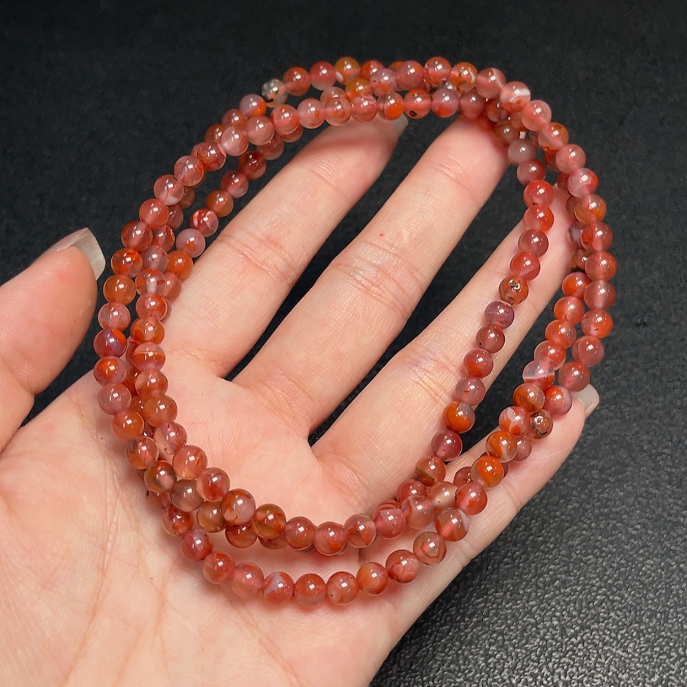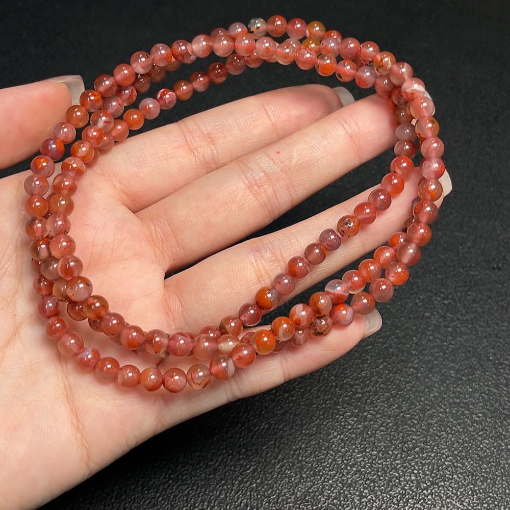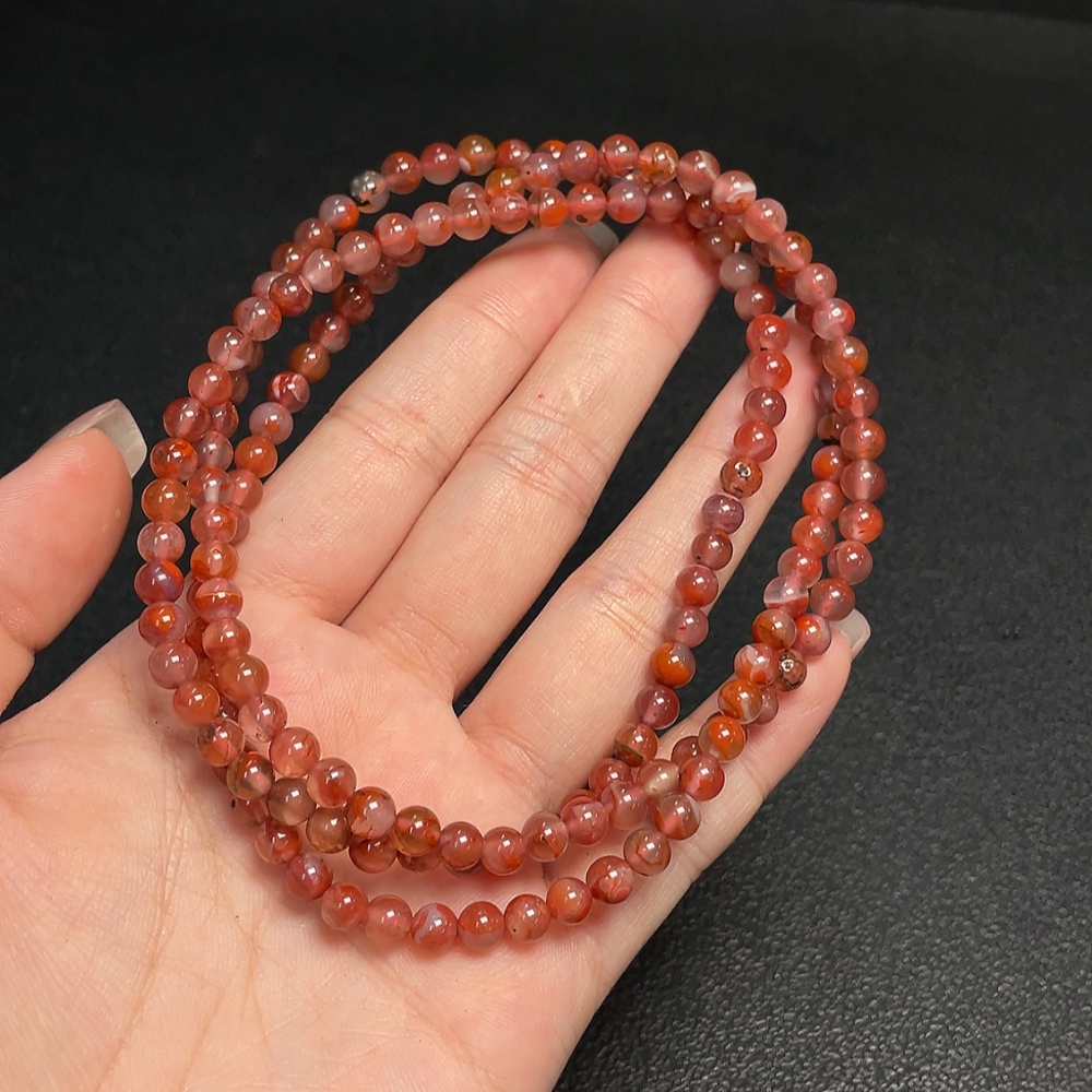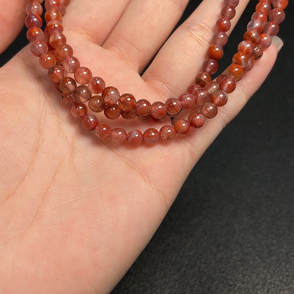 South Red Agate Bead Strand with Visible Organic Matter, Total Weight Approx. 29.44g, Size About 5.3mm