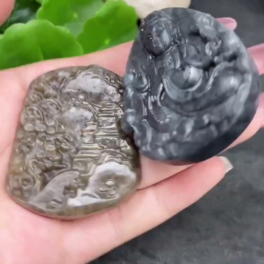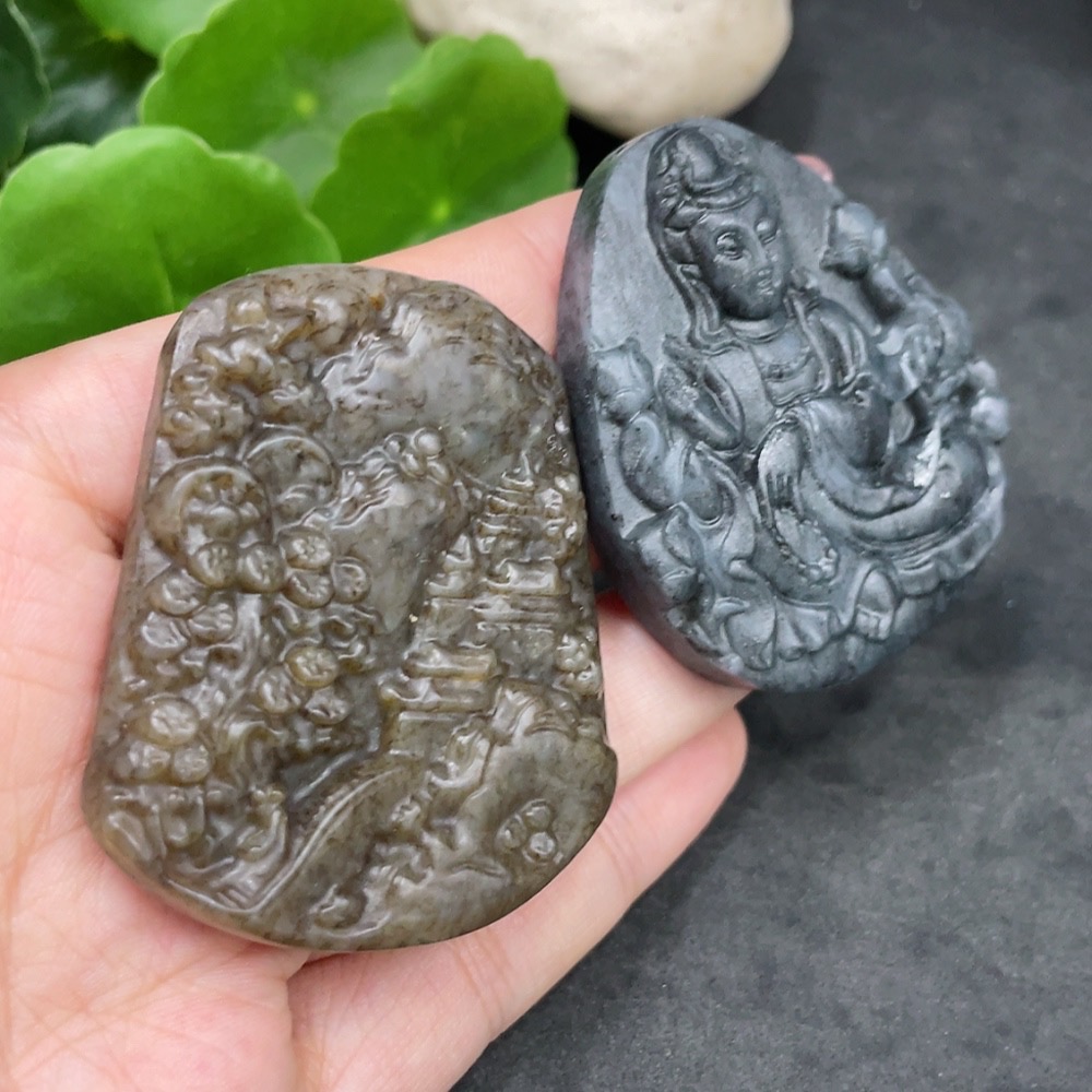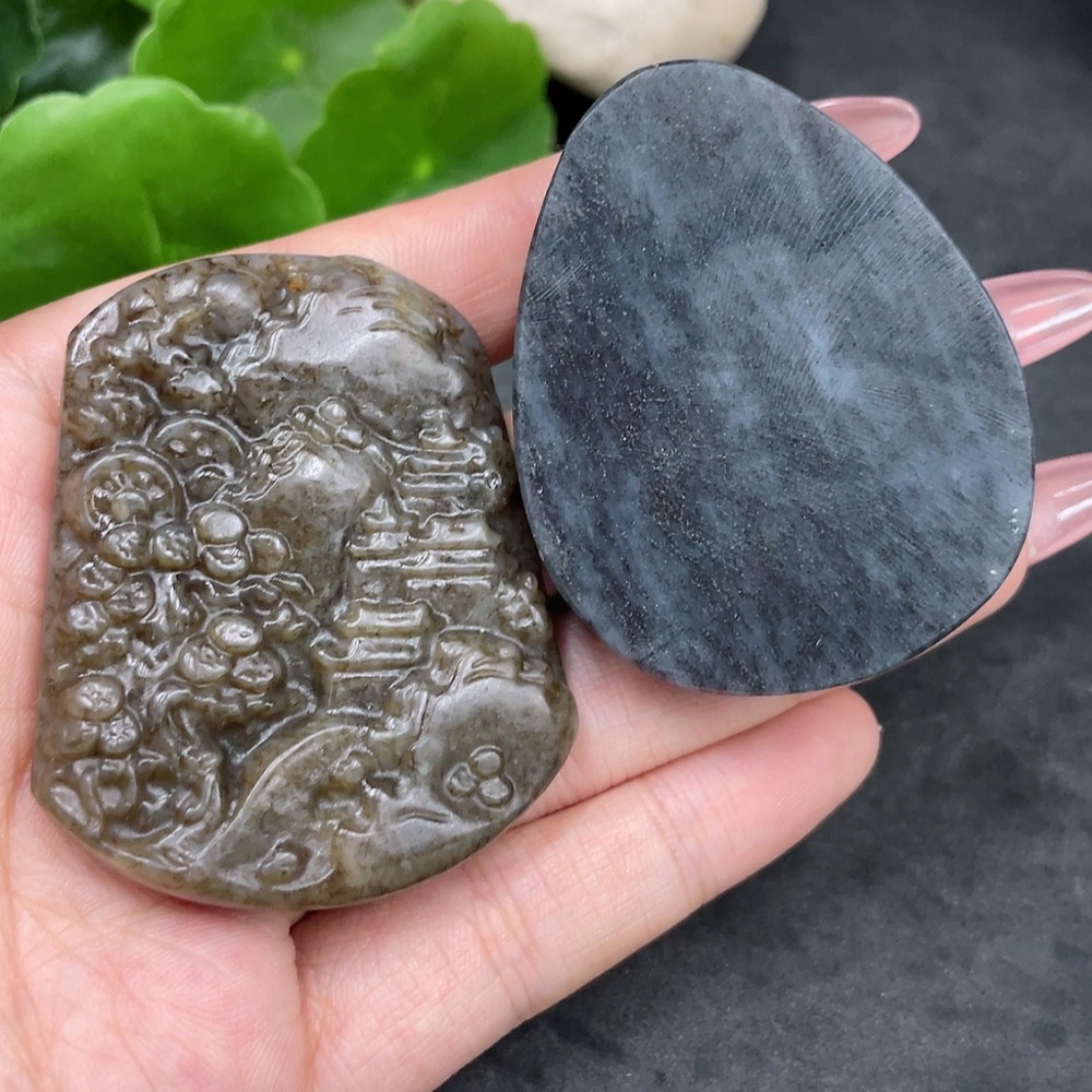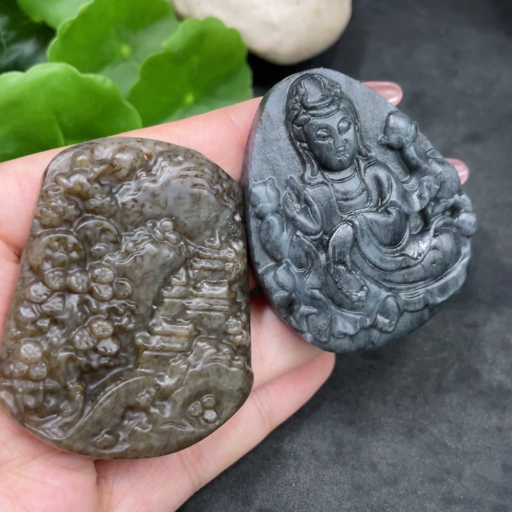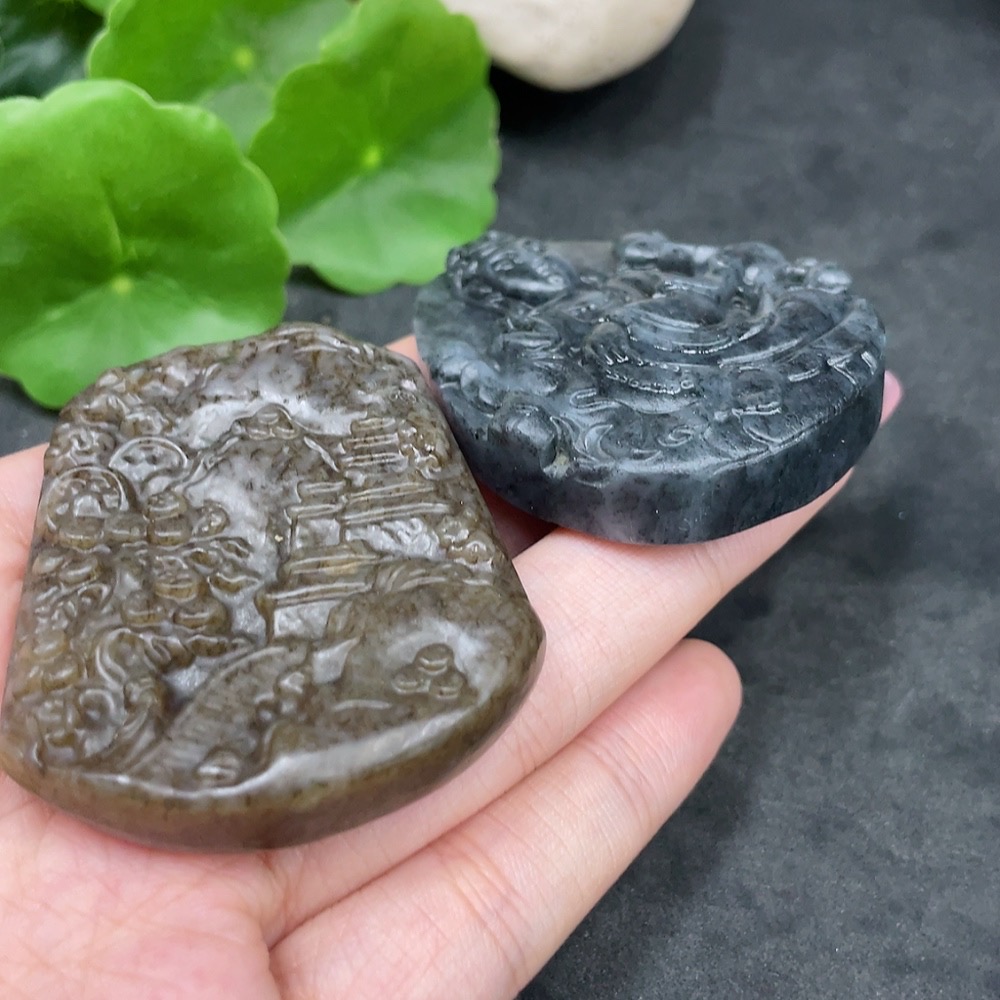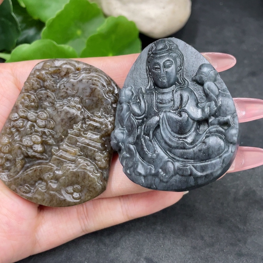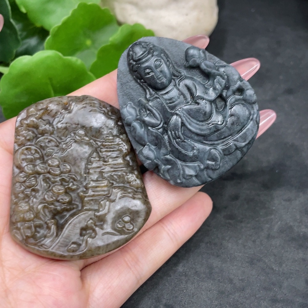 Hetian Jade Pendant Landscape Plaque + Guanyin Total Weight Approx. 85.4g