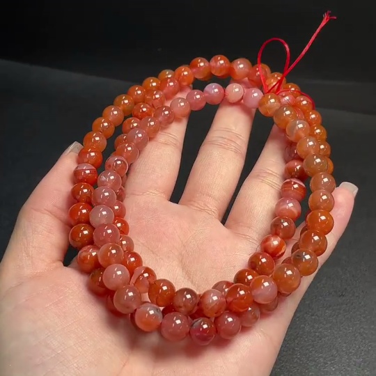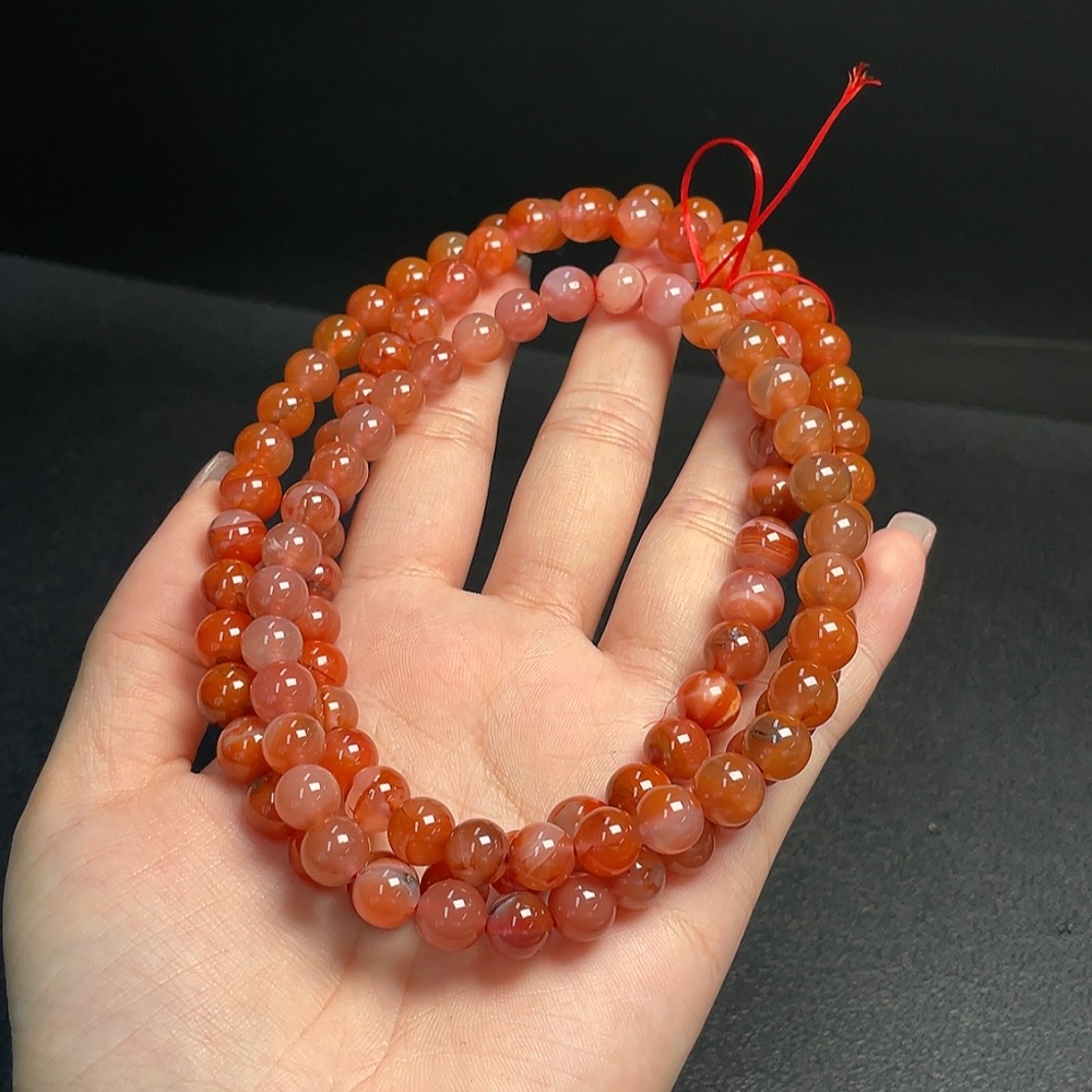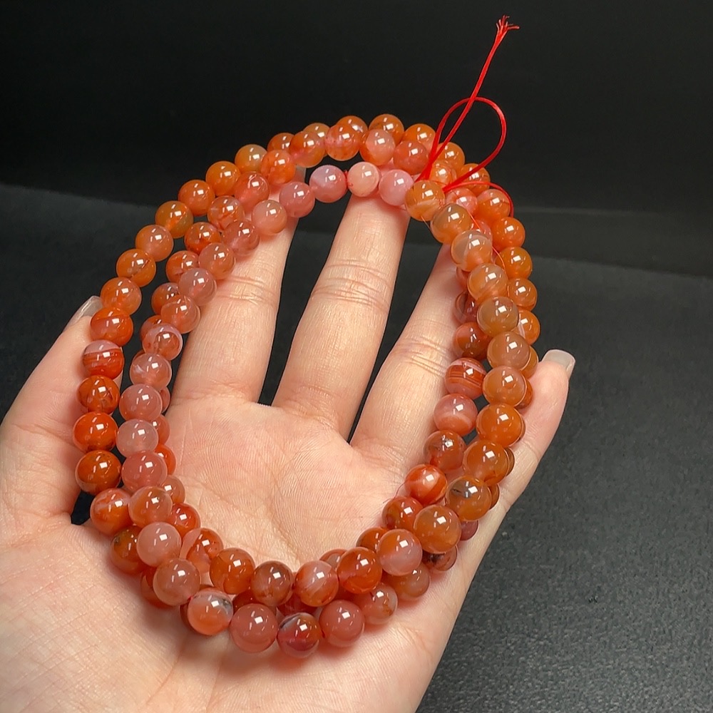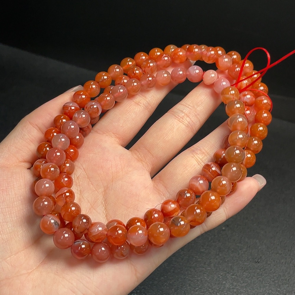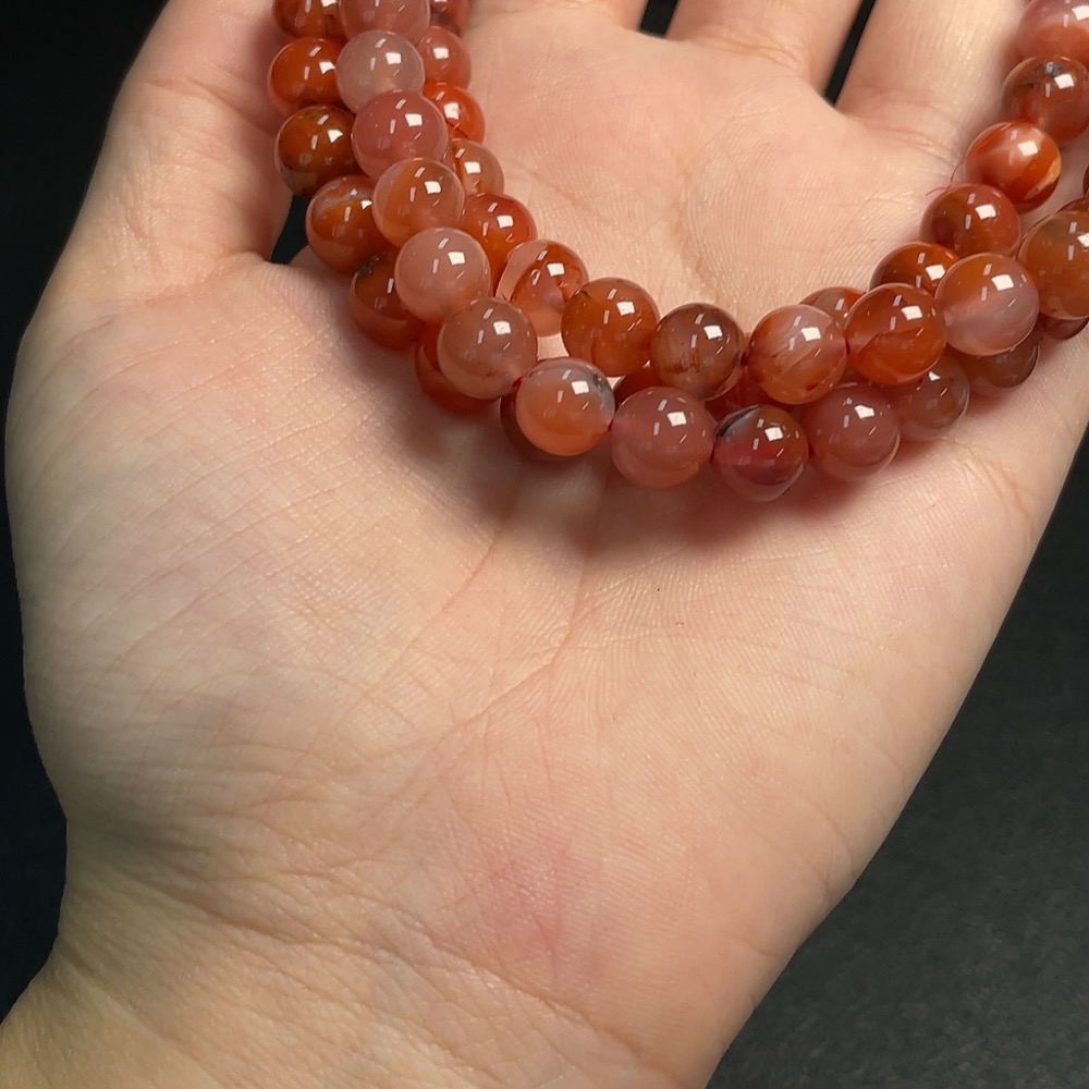 Red Agate Bead Necklace with Visible Organic Inclusions, Total Weight Approx. 85.1g, 8mm Bead Size