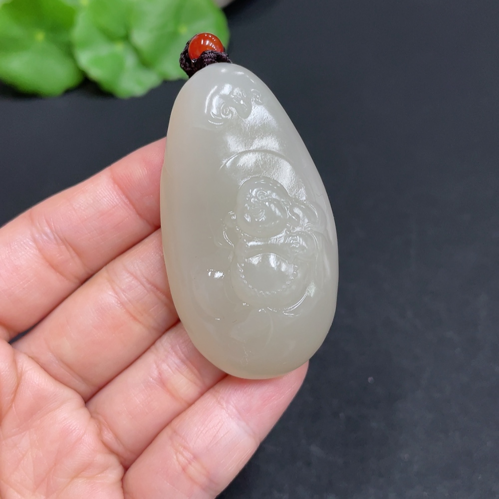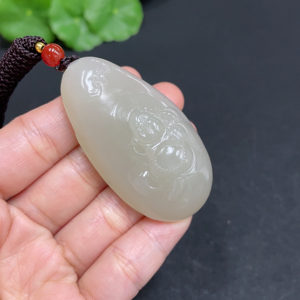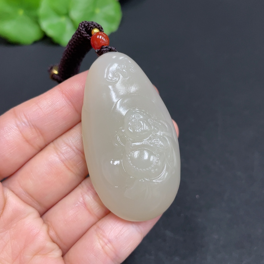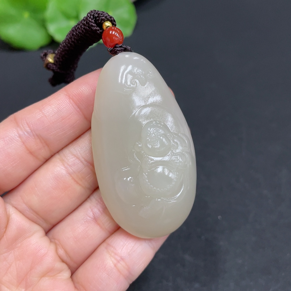Hetian Jade Pendant Buddha Total weight approx. (including rope) 39.4g