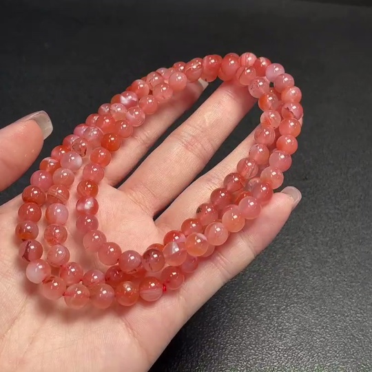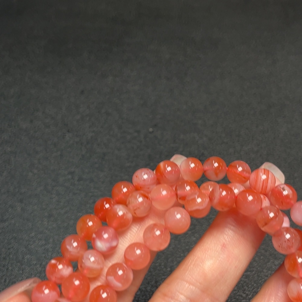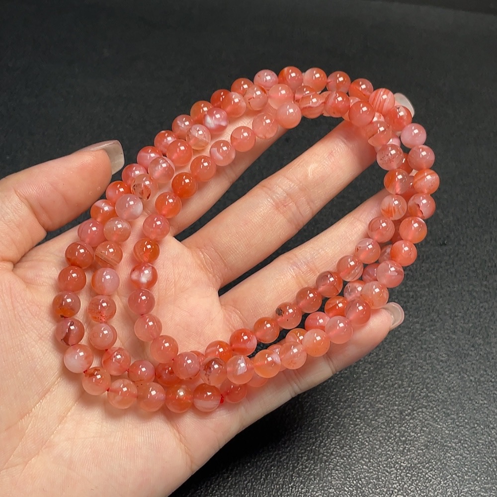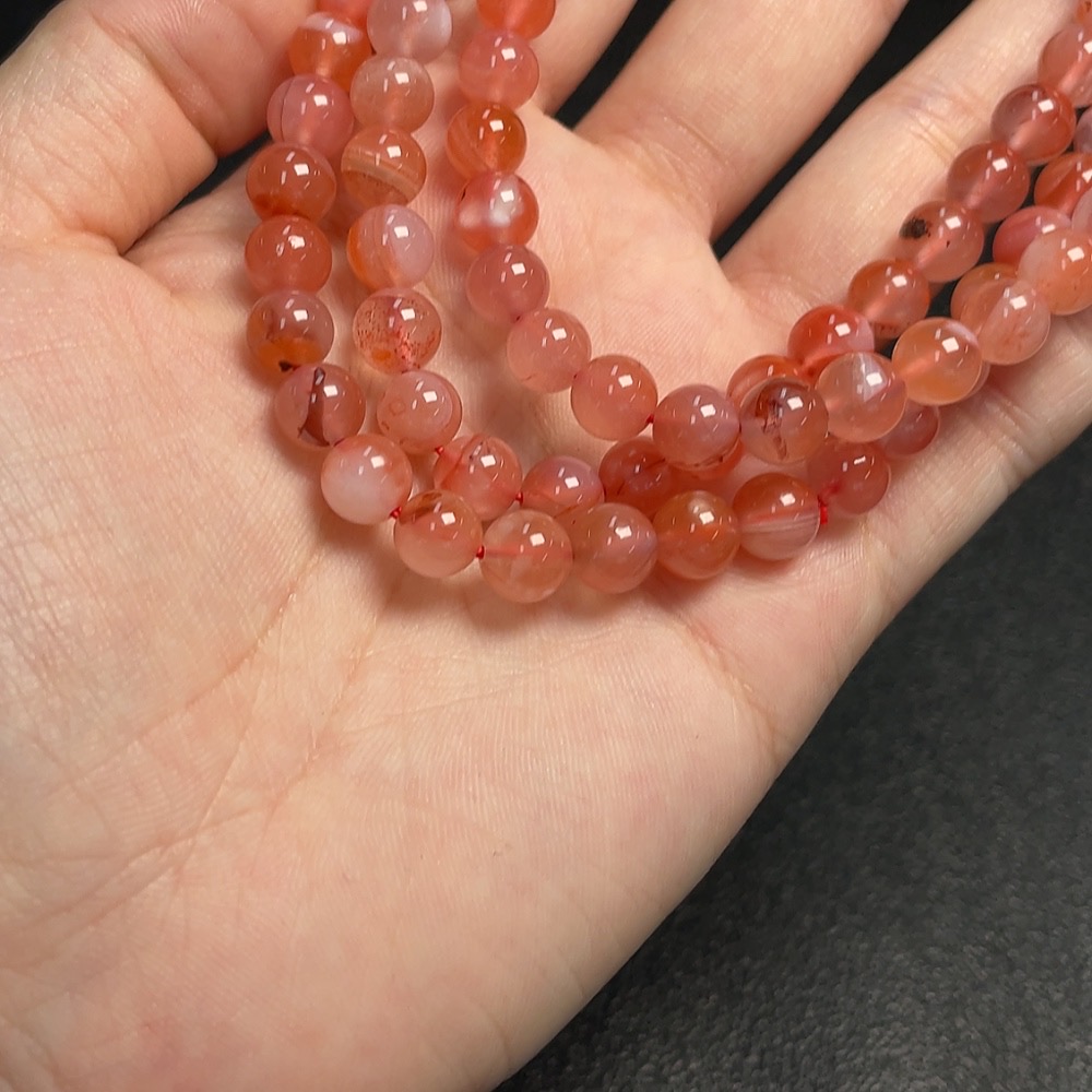 South Red Agate Bead Necklace with Visible Organic Matter, Total Weight Approx. 55.2g, Size About 7.2mm