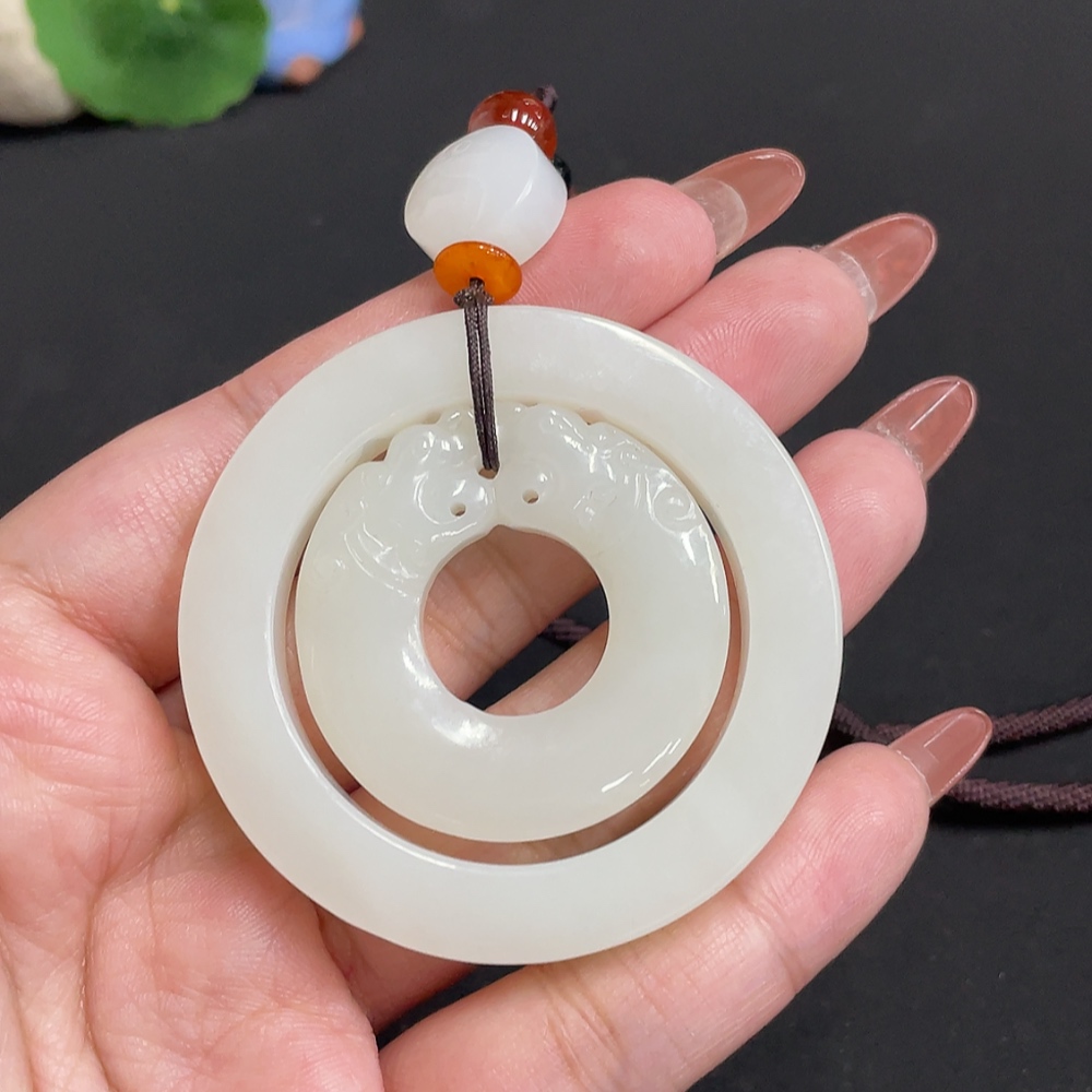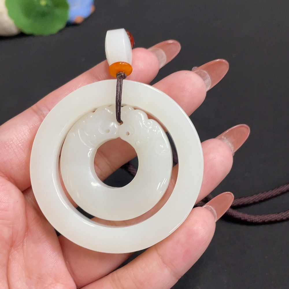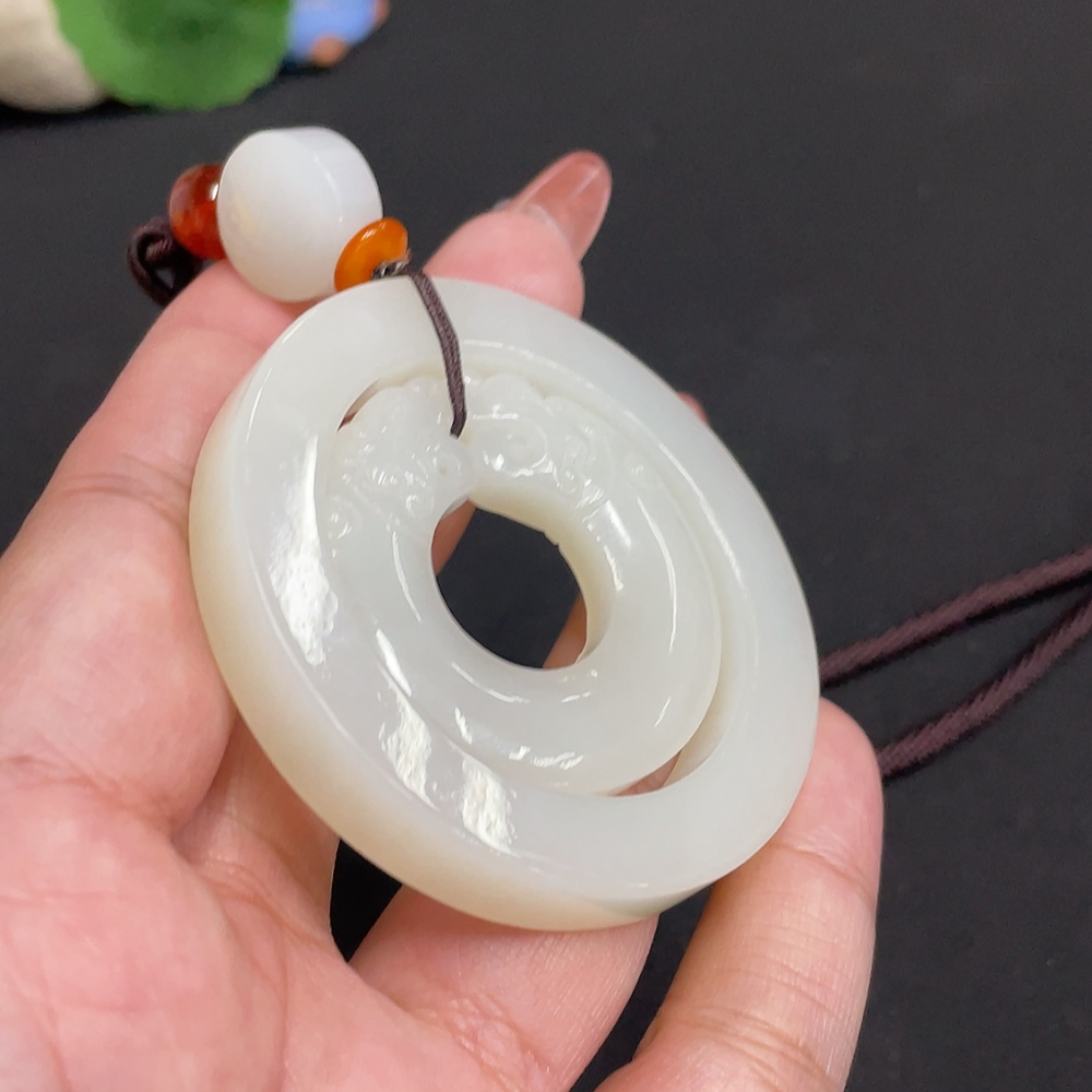 Hetian Jade Pendant Antique Style Total Weight Approx. [Including Rope] 55.4g Beads Not Hetian Jade